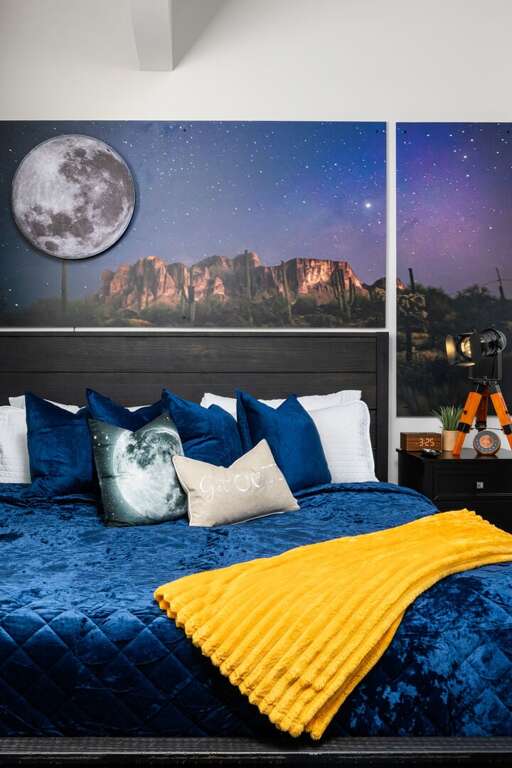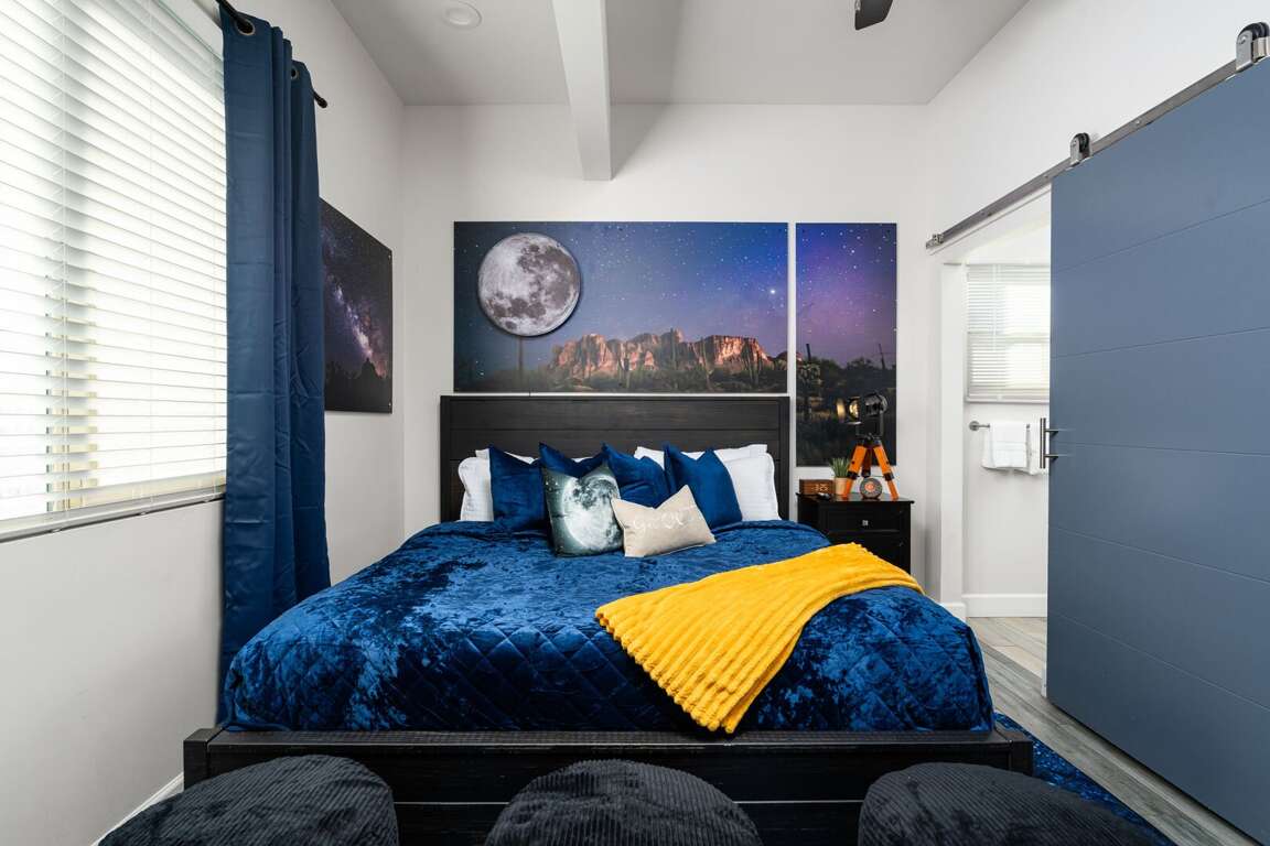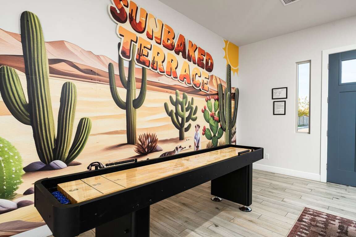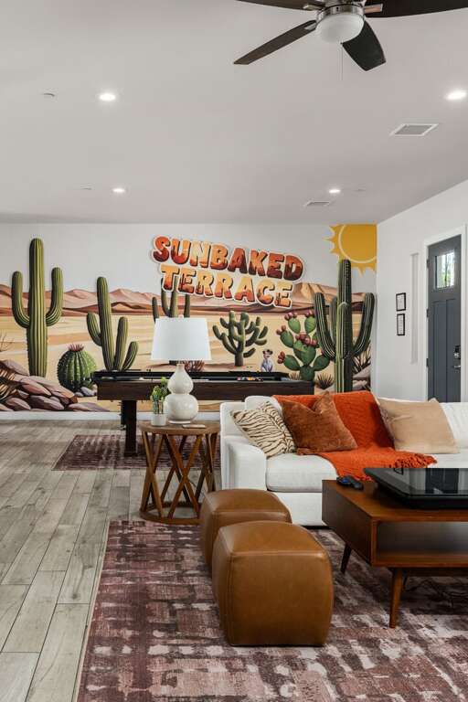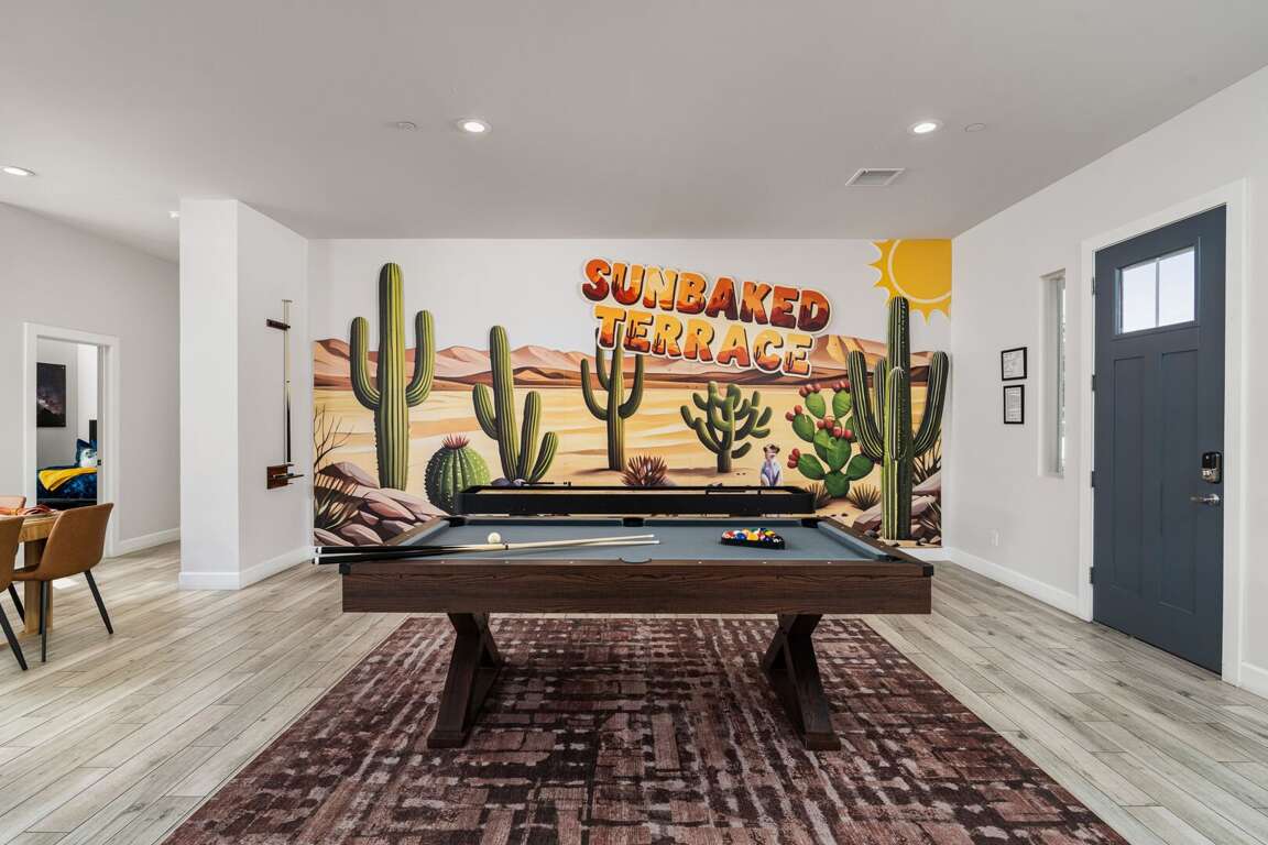 Throughout the house, playful murals and desert-inspired décor create a unique, memorable atmosphere you won’t find in a standard rental.