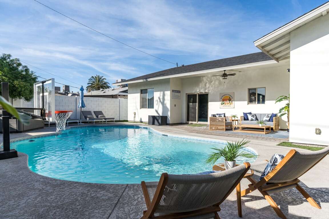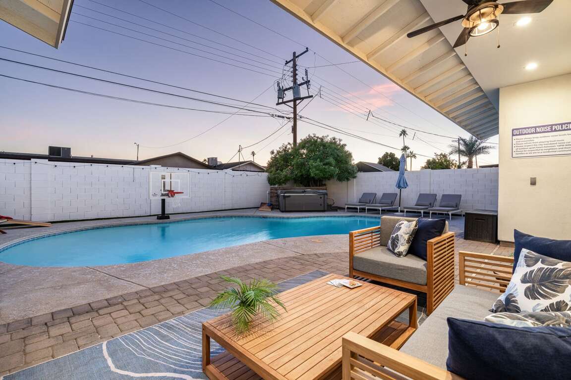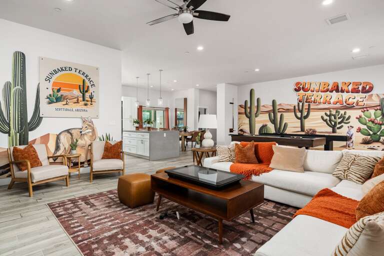 Welcome to Sunbaked Terrace, a vibrant Scottsdale retreat where desert charm meets resort-style living. Designed for groups, families, and friends traveling together, this home invites you to slow down, spread out, and fully enjoy every moment, whether that’s floating in the pool under the Arizona sun, gathering around the fire pit at night, or laughing through a friendly game indoors. Every space in this home was thoughtfully curated to create an experience.