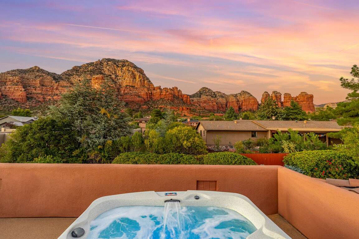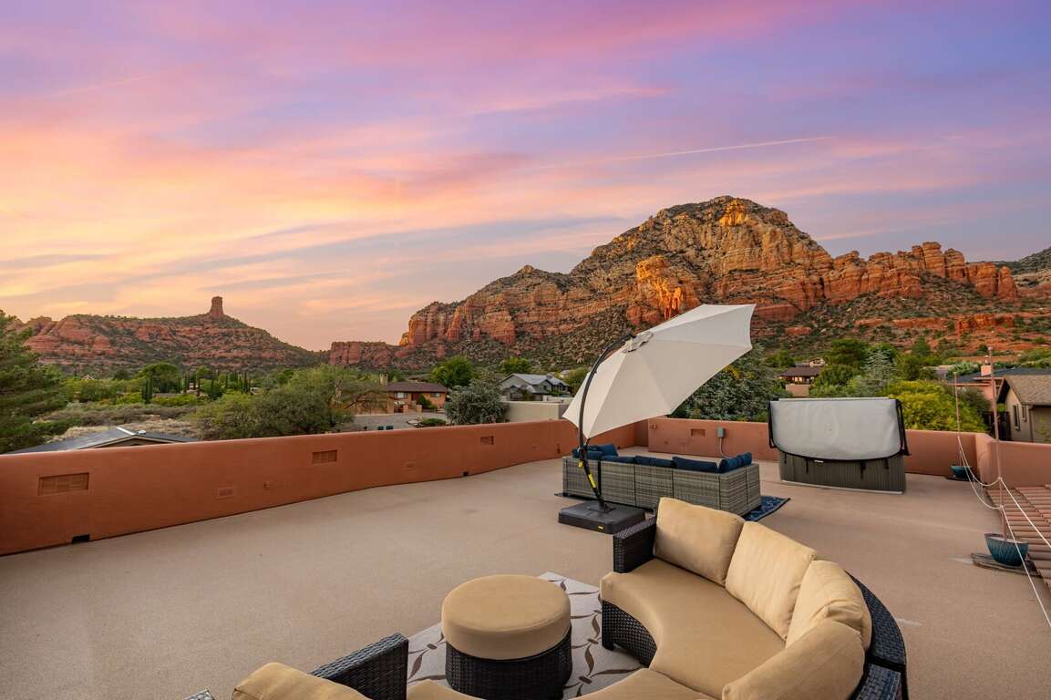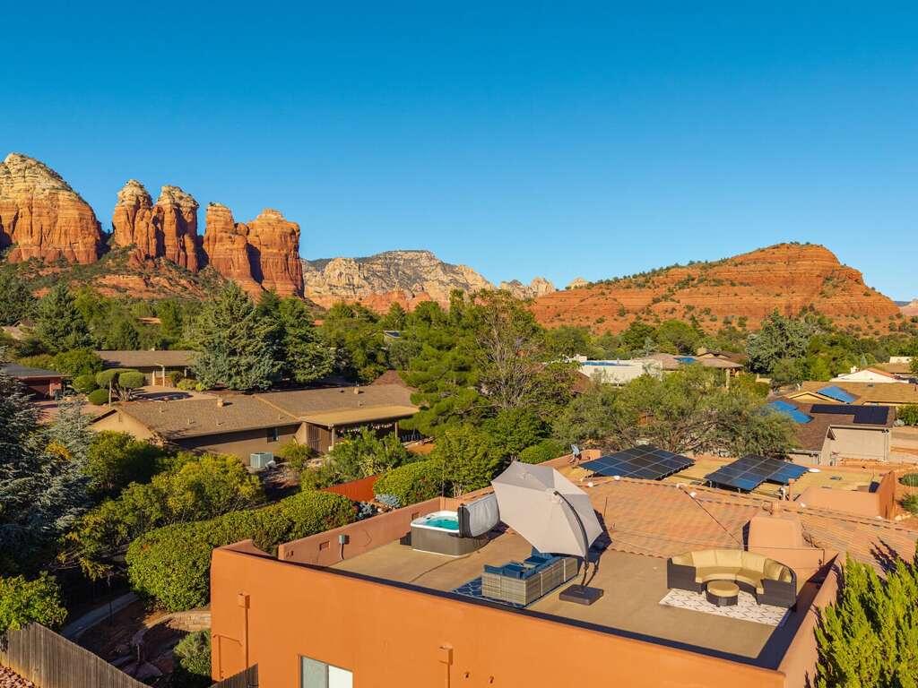 Welcome to your Sedona sanctuary, where desert beauty meets modern comfort. This stunning home offers panoramic views of Sedona’s world-famous red rocks, visible from nearly every angle, including the private rooftop hot tub, perfect for unwinding under a canopy of brilliant night stars.