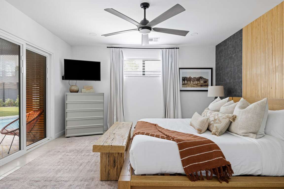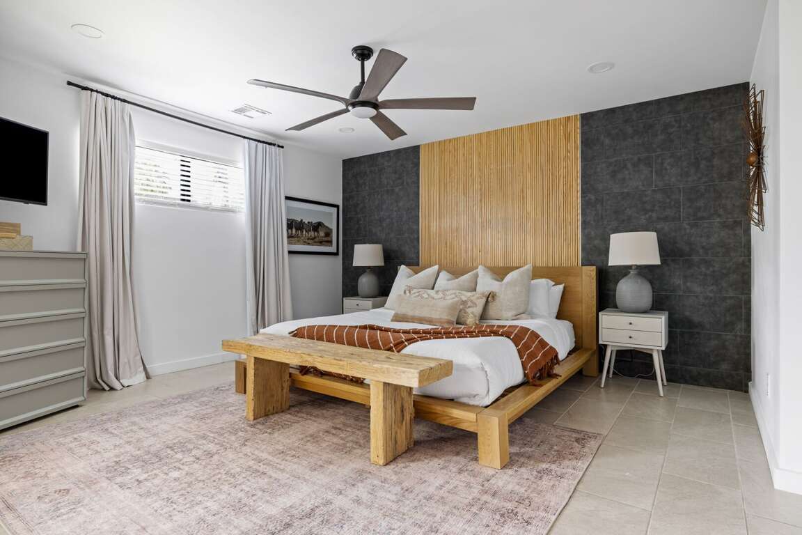 Inside, enjoy modern design touches, high-end furnishings, and thoughtful amenities throughout. The open-concept living area offers comfortable seating, a large smart TV, and an Xbox for gaming or movie nights. Every room has been curated for comfort and style, blending warm textures with a modern desert aesthetic.