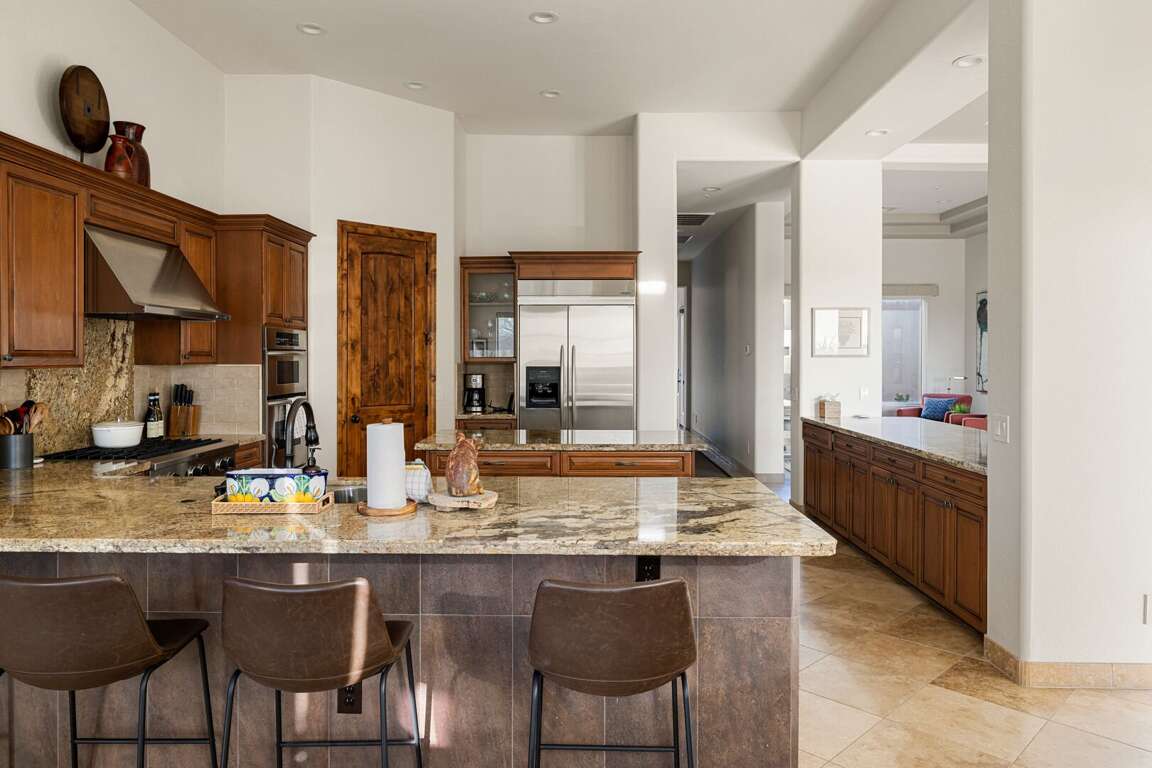 The fully equipped kitchen has everything you need to prepare meals or snacks before tee time, and the open layout makes entertaining a breeze. Enjoy indoor dining or head outside to the covered patio for al fresco meals with a view.