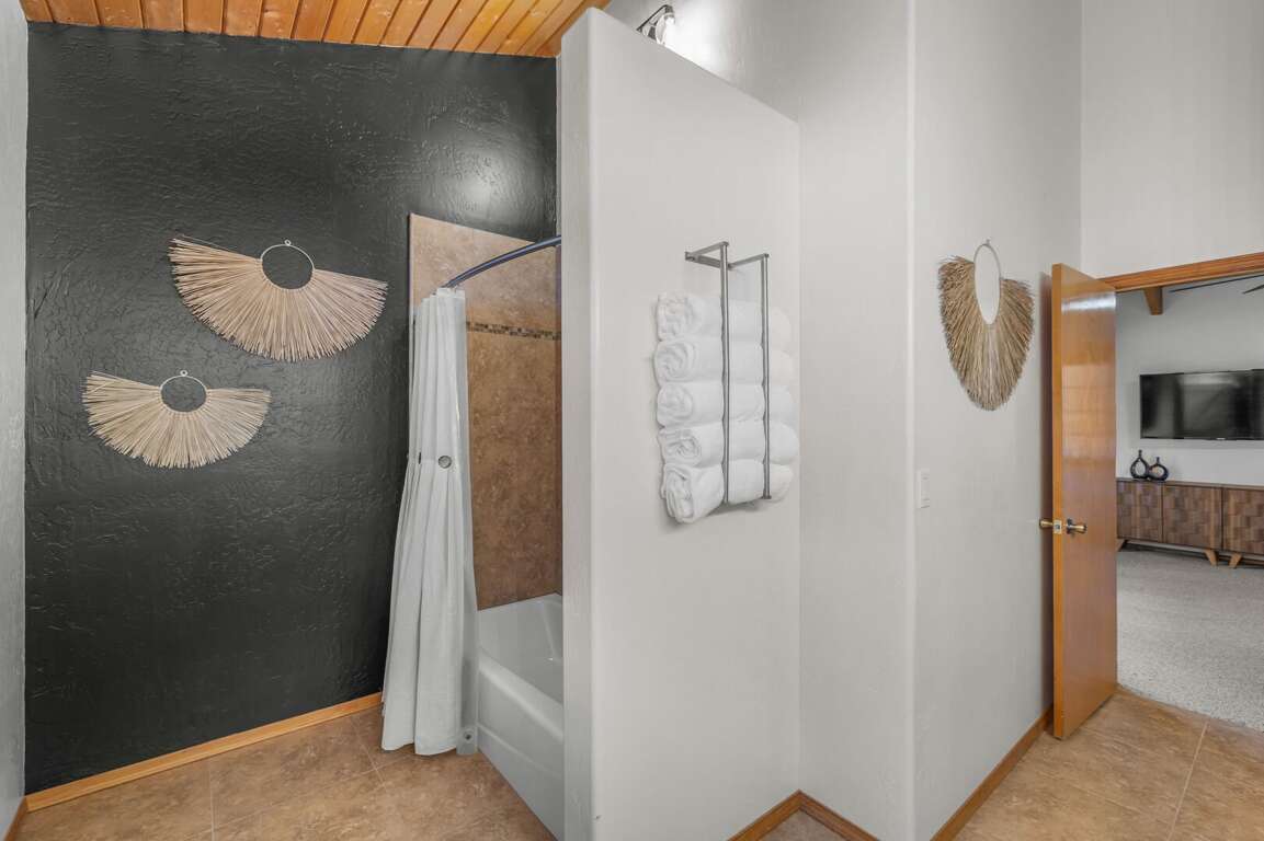 The casita is located on the bottom floor underneath the main home — great for grandparents, couples, or anyone who wants a quiet nook away from the main house.