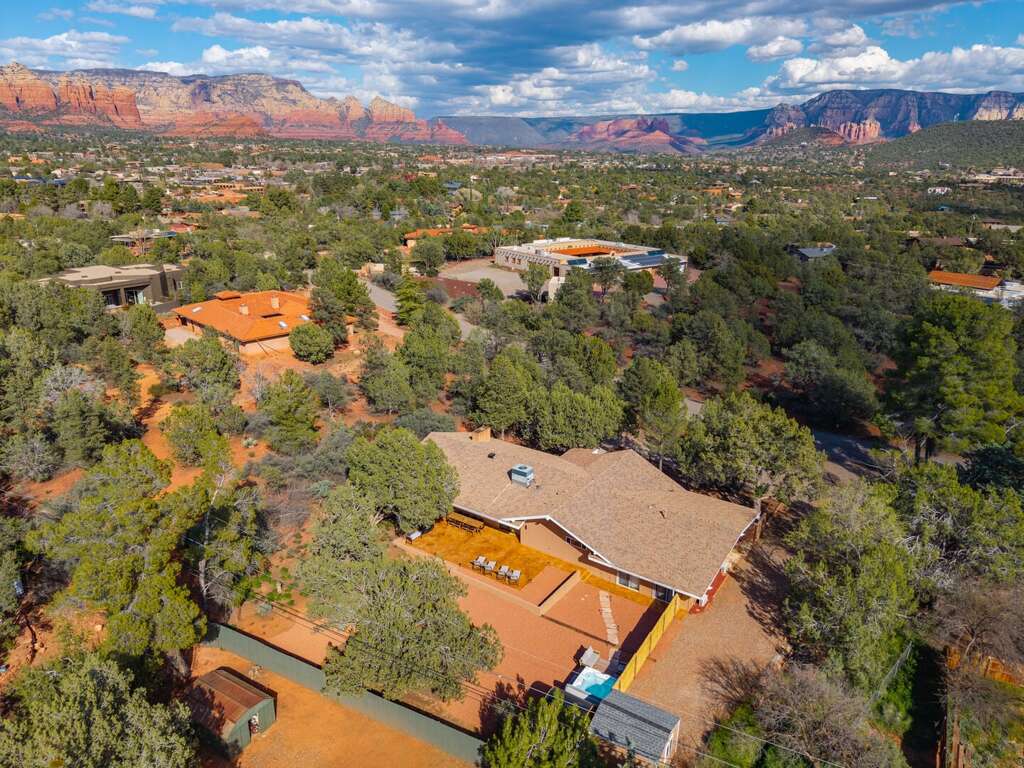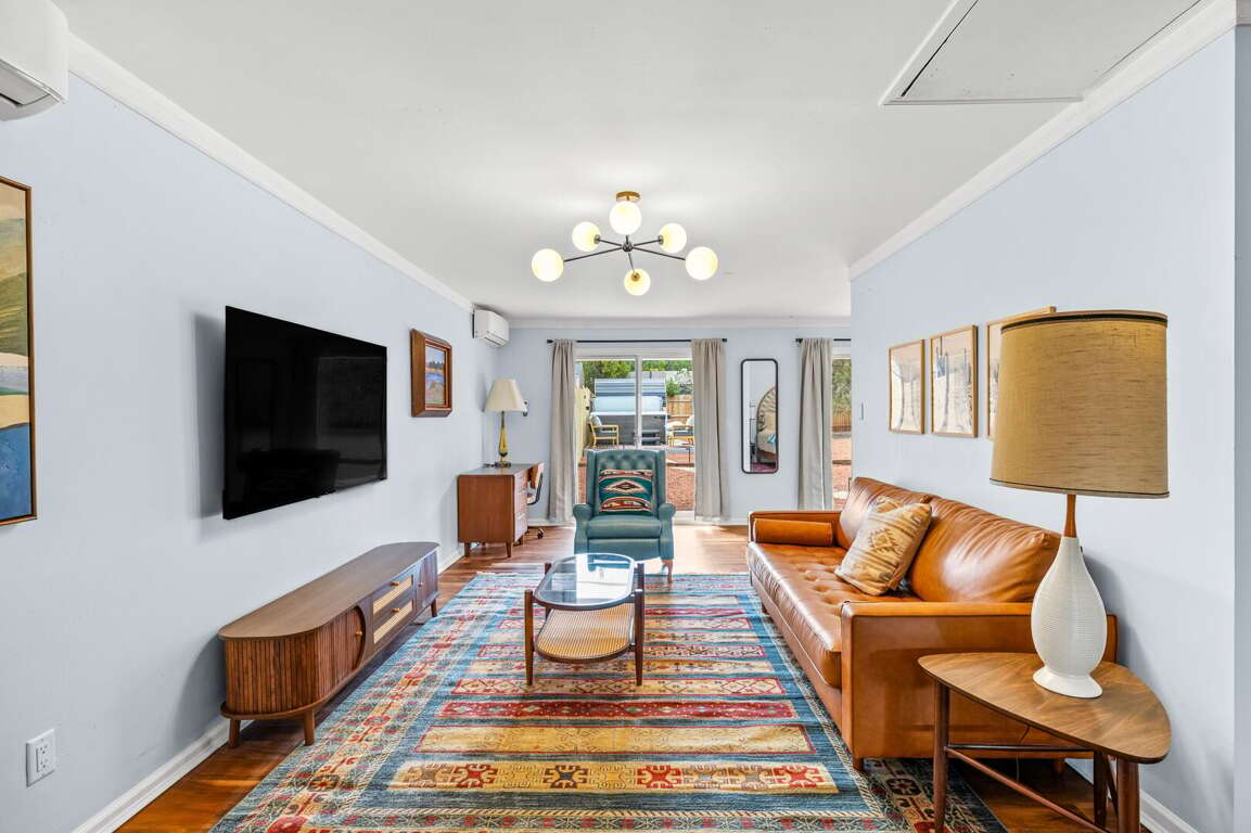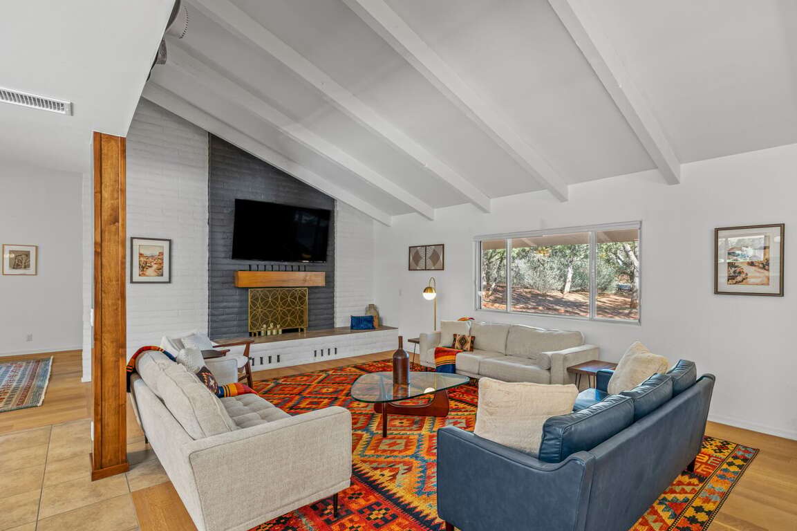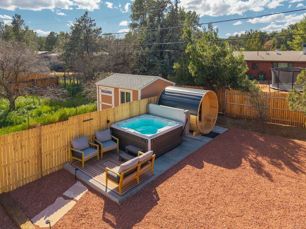 This newly refurbished, pet-friendly mid-century modern home blends style, comfort, and unbeatable location. Tucked into a peaceful neighborhood, yet just steps from restaurants, trailheads, and the free Verde Shuttle, you’ll experience the best of Sedona without ever worrying about parking. Designed to comfortably host up to 12 guests, the home offers flexible sleeping arrangements and a separate attached casita, perfect for multi-generational families, couples traveling together, retreats, or friends seeking a little extra privacy. The fenced backyard features a sauna, hot tub with mountain views, and more!