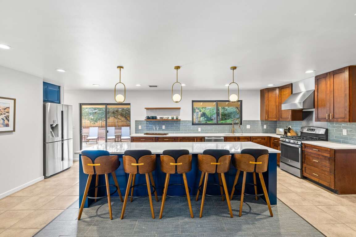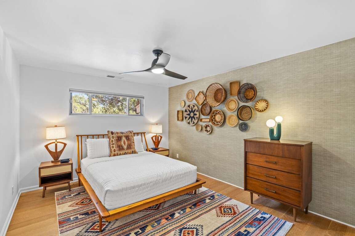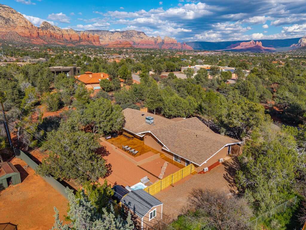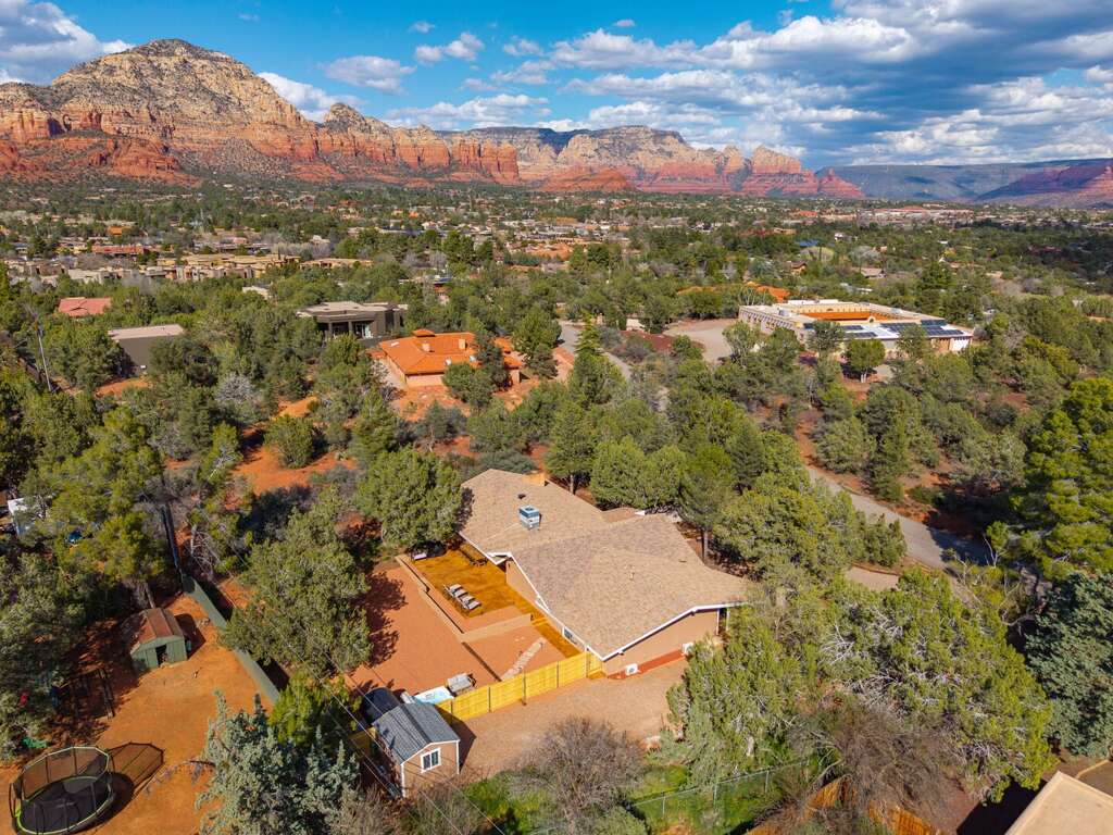 This newly refurbished, pet-friendly mid-century modern home blends style, comfort, and unbeatable location. Tucked into a peaceful neighborhood, yet just steps from restaurants, trailheads, and the free Verde Shuttle, you’ll experience the best of Sedona without ever worrying about parking. Designed to comfortably host up to 12 guests, the home offers flexible sleeping arrangements and a separate attached casita, perfect for multi-generational families, couples traveling together, retreats, or friends seeking a little extra privacy. The fenced backyard features a sauna, hot tub with mountain views, and more!