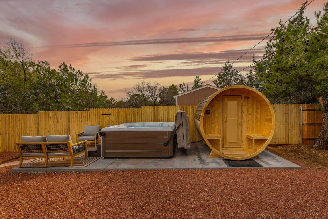 “Camino” means path, journey, or pilgrimage, and Casa Del Camino is truly your path to relaxation and rejuvenation. Spend your mornings hiking nearby red rock trails, your afternoons exploring town, and your evenings soaking in the hot tub under Sedona’s legendary star-filled skies. Sedona is a Certified Dark Sky Community, making stargazing from the backyard an unforgettable experience. After a day of adventure, unwind in the sauna, fire up dinner, and enjoy the peaceful desert surroundings.