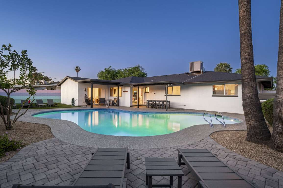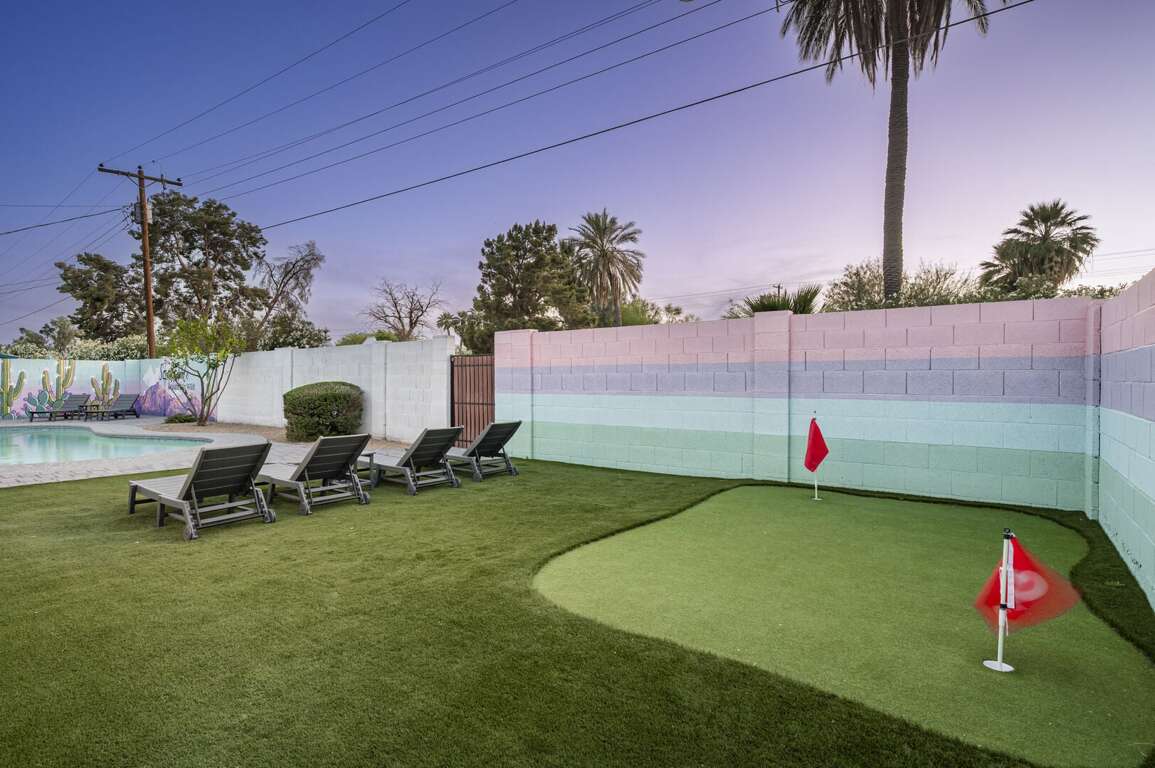 Remodeled 5-bedroom house in Scottsdale with a pool, putting green, and arcade, located about 2 miles from Old Town for an easy vacation rental base.