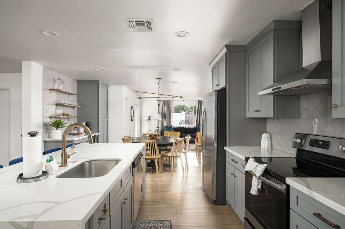Inside, the home is spacious, stylish, and thoughtfully updated. The kitchen is a chef’s dream, perfect for everything from pancake breakfasts to big group dinners. With five bedrooms, three bathrooms, and dual living areas, there’s room for everyone to spread out and feel at home. Up to 15 guests can stay comfortably across 5 bedrooms, making it ideal for larger groups.