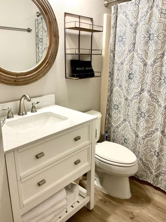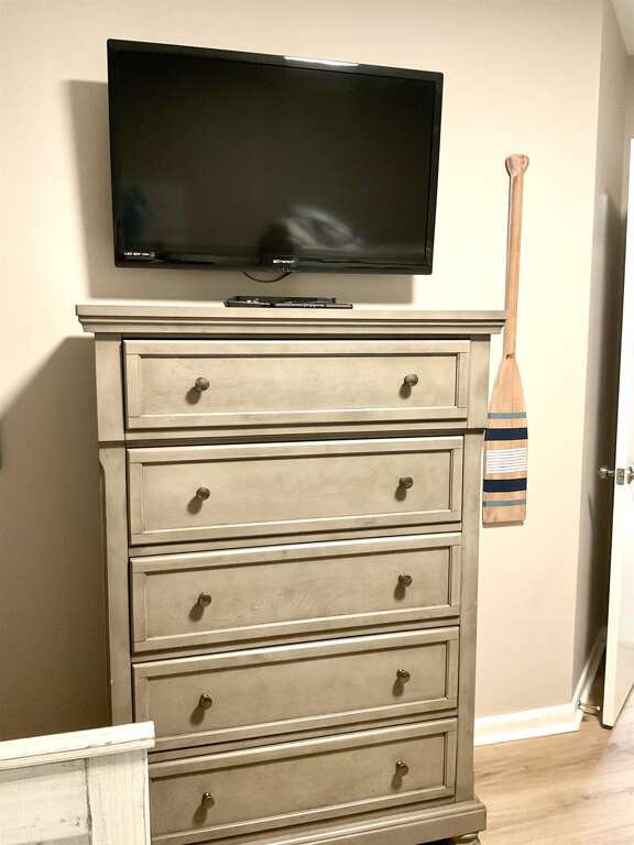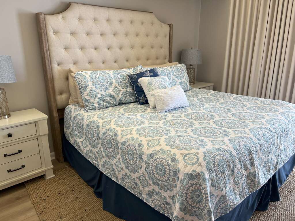 The master bedroom has a comfortable king bed for your retreat after a day of sun and sand and has a private master bathroom with tub/shower combo.