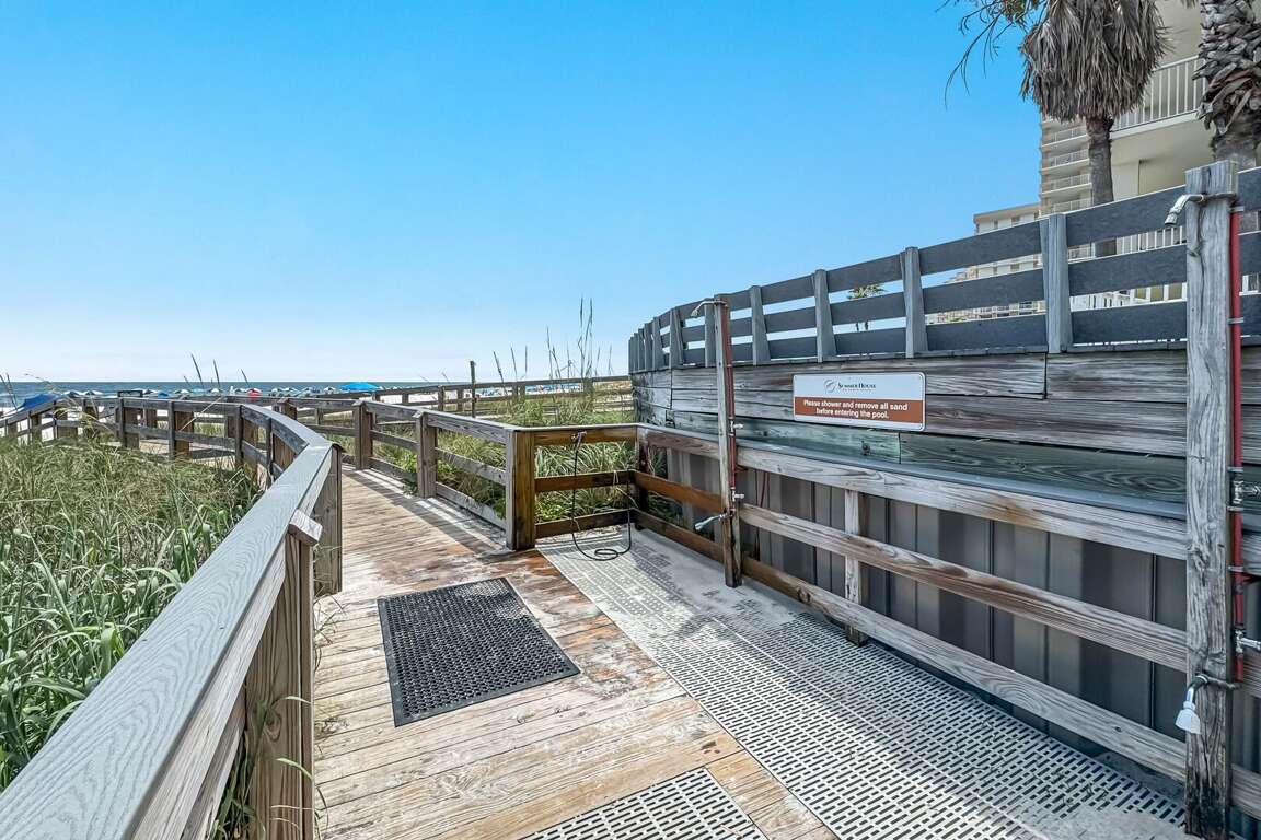 The Summer House complex has a variety of amenities to enjoy during your stay including indoor and outdoor pools, an indoor hot tub, and sauna room. When you're ready to head to the beach, head down the private boardwalk and on your way back in stop by the outdoor shower area to rinse the sand off. There's also a charcoal BBQ area, tennis courts, basketball goal and outdoor racquetball court.