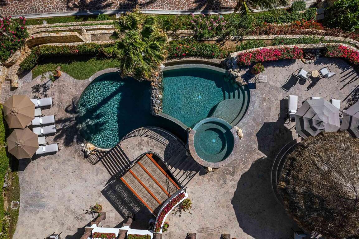 Casa Alegria is located in the ultra-exclusive Caleta, Palmilla, and therefore, it is a representation of glamour and the sophistication of one of the most iconic enclaves in Los Cabos. Just moments from the renowned One&Only Palmilla resort, this villa combines Spanish Colonial charm and elevated design with refined Tuscan influences - elevated by modern design and luxury amenities. The natural light flooding through overly large windows and vaulted ceilings flood the interior with an elegant stonework and wood decals. Plush furnishings, colorful textiles and soft linens create a warm and elegant atmosphere. Each of Casa Alegria's five bedrooms is a private sanctuary with its own Ensuite bathroom, safe, and stereo. Two suites facing out to terraces with sweeping views of the Sea of Cortez. The newly remodeled Italian Scavolini kitchen is a chef's dream - with a large center island, high-end appliances with a Viking refrigerator, dual sinks, wine fridge, and custom cabinetry. A sliding door opens the space to the outdoors with a fully equipped kitchen complete with built-in grill for easy indoor-outdoor entertaining. Life in the open air at Alegria is grandiose. The huge Cantera tiled terrace offers al fresco dining for eight under a grand palapa with hammocks in the breeze. Plush sunbeds encircle a beautiful two-level pool with a cascading waterfall, plus a high-up Jacuzzi with ocean views. Additional amenities include 2 pools, 80 inch flatscreen tv with surround sound, and high speed cable internet. The outdoors gym provides a shady, tranquil workout atmosphere with a rustic atmosphere. It is equipped with a treadmill, exercise bike, yoga mat, exercise ball, cushioned seating and privacy curtains making it the right place to relax and still appreciate the tropical environment. We also give you membership to the Palmilla Golf and Tennis Club (Surcharge). The world-famous 27-hole Jack Nicklaus Signature course, the Palmilla Tennis Center and the new Palmilla Social Club, with its cafe, bar and comfortable indoor/outdoor spaces, are all a short distance away. Reservations for One&Only Palmilla restaurants can also be requested at the discretion of the hotel. Casa Alegria is a few minutes walk from one of Cabo's most gorgeous swimmable beaches - Palmilla Beach - famous for its calm turquoise waters, soft sand and idyllic cove for swimming, snorkelling and paddleboarding. Guests can also enjoy the exceptional walkable amenities of Palmilla including: The home has two ESPNs with NFL and college football through Dish Network. Casa Alegria also has a private three hole pitch and putt golf green for fun practice sessions right at home. Casa Alegria provides the ideal combination of privacy, high-end and walkability to everything that makes Palmilla one of the most prestigious addresses in Los Cabos.