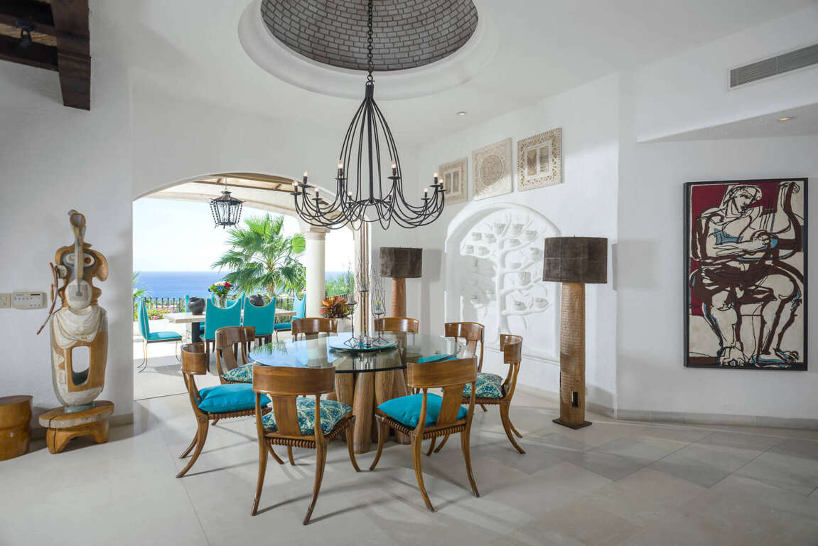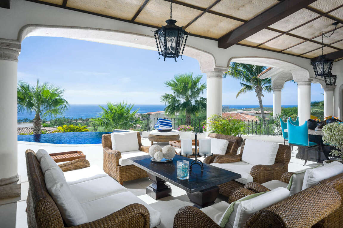 With ocean views from nearly every room of this sprawling home, Villa Buena Vida delights with luxury features and resort-style amenities. Designed to accommodate large and extended families and friends, the home includes an excess of admirable outdoor space, complete with a cascading swimming pool. Complimented by a thatched palapa and surrounded by plenty of entertaining space, this luxury villa also includes an outdoor fireplace, a fire pit, and plenty of room to relax alongside the ocean breeze. With an abundance of outdoor and indoor dining space, the home includes the addition of a breakfast bar within the gourmet kitchen, which has been outfitted with dual ovens and matching stainless steel appliances. The comfortable main living area of the home is open and decorated with subtle sophistication, seamlessly blending the indoor and outdoor spaces as one with walls of windows and glass doors. This spacious home includes enough room to sleep 14, with six bedrooms, all of which include an ensuite bath. In addition, most of the rooms include King-sized beds, complete with a private terrace and ocean view, while one bedroom is perfect for the younger crowd, as it is outfitted with three matching bunk-beds. Situated within one of the most desirable golf communities in the region, Villa Buena Vida offers you a vacation home surrounded by premiere outdoor recreation. Designed by Jack Nicklaus, the nearby Desert Course provides a world-class golf course setting. At Villa Buena Vida you'll find the perfect oceanside setting and fantastic water views, all while being one kilometer away from a protected swimming beach. Villa Buena Vida is about a 15-minute walk from the beach.