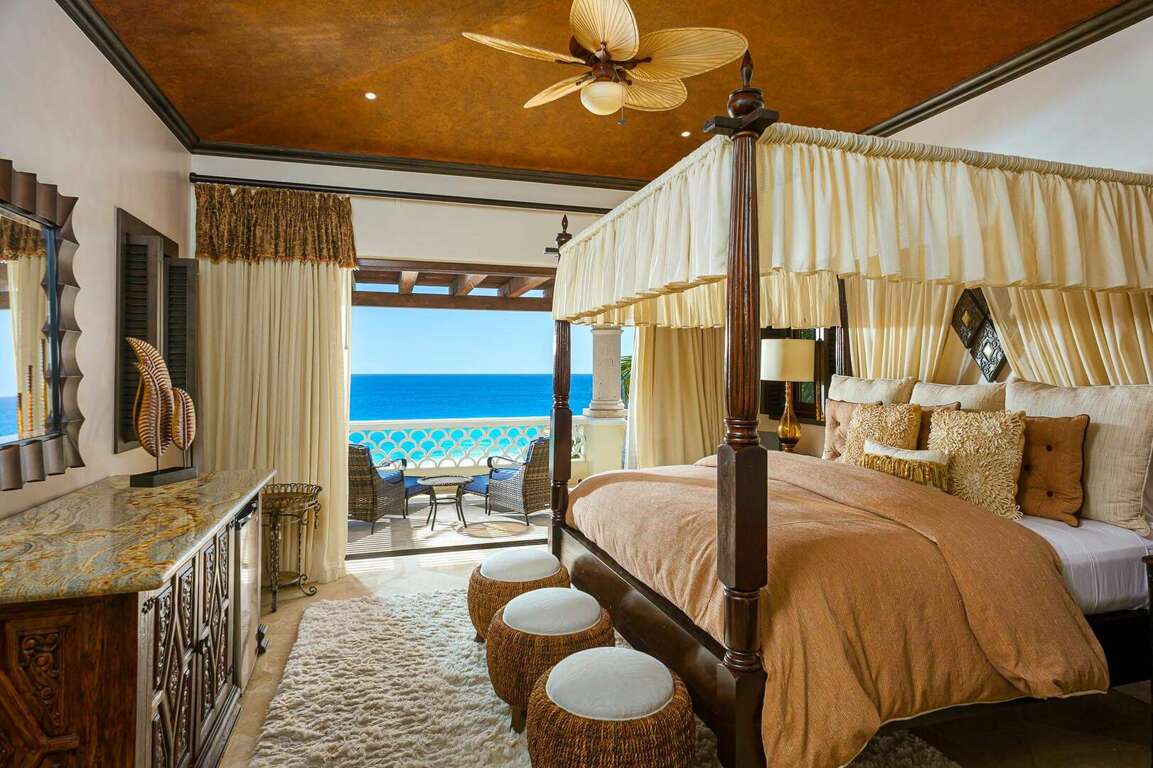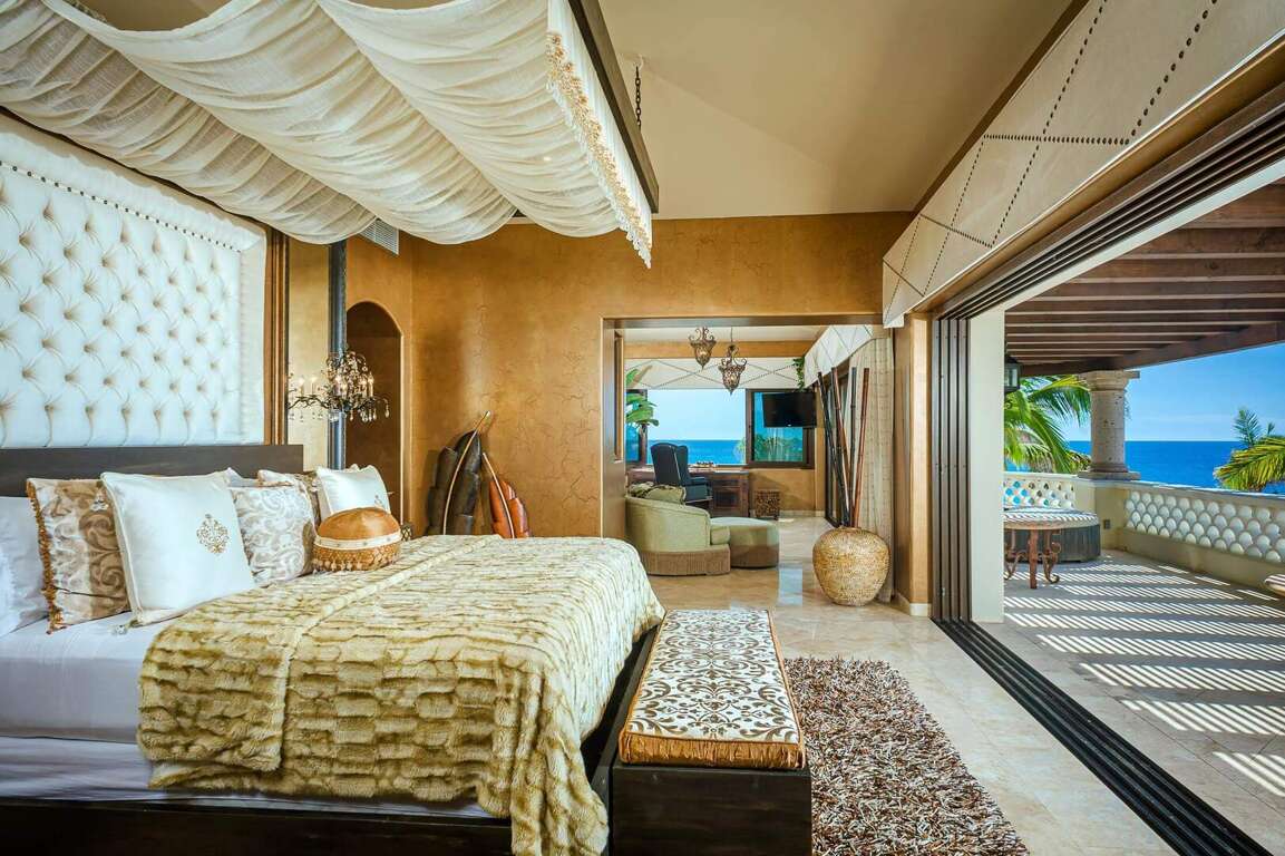 For a truly sophisticated vacation experience, Villa Sandcastle El Encanto delivers a fantastic setting and the appeal of upscale, yet family-friendly delights. Part of the exclusive gated community of El Encanto, this five-bedroom, 5.5-bath home sleeps up to 10 comfortably and serves up sweeping views of the Sea of Cortez, with some admirable added amenities, both inside and outside the home. Sit back and relax in the sunken fire pit, right in the middle of the home's sparkling swimming pool with ocean views. The pool area has recently been upgraded with glass partitions making the pool area ultra safe for the little ones. The outdoor space also adds in a Jacuzzi, a shaded palapa with room for grilling, and some elegant outdoor dining and lounge space, including your own private waterfall. Private terraces with ocean views accent many of the home's five ensuite bedrooms, providing the perfect, secluded spot to take in the beauty of the surrounding area as the sun comes up or sets for the day. Back inside, the property treats up to 10 guests a vacation in true luxury, with an eat-in, gourmet kitchen, your own sauna/steam room, a personal home theater with an oversized screen, and a comfortable living room. As an added bonus, the family-friendly home entertains guests with air hockey and foosball tables, a bar, and even a disco ball in its game room. Merely a three-minute walk from the sand and water, spend your afternoons at the nearby swimmable beach. Close to surfing, fishing, golf, and nightlife, the home also adds in the advantage of concierge and maid service, with plenty to do and experience both on and off the property. An electric golf cart is included, which makes your access to the community amenities just that much easier! Pullout Sofa Bed in the Games Room will sleep 2 children comfortably