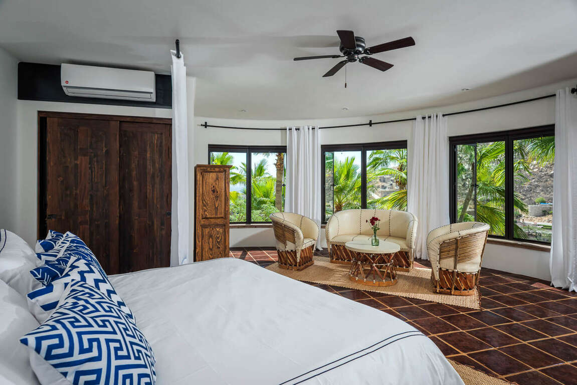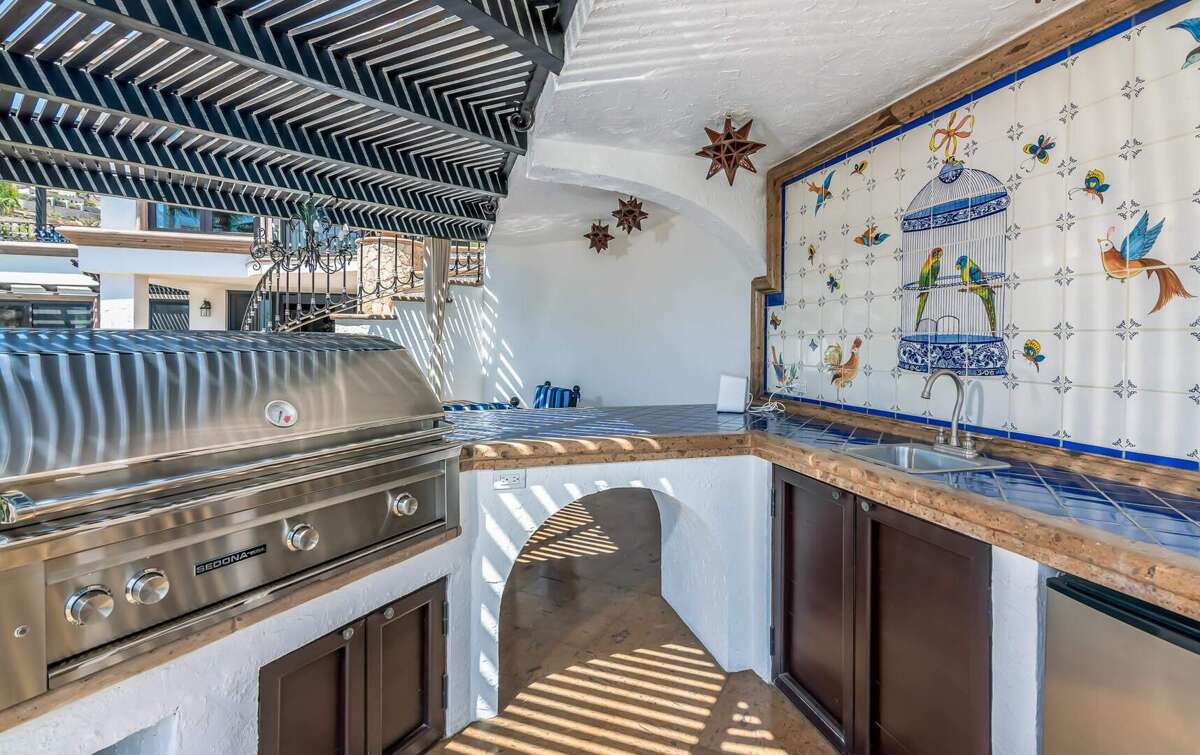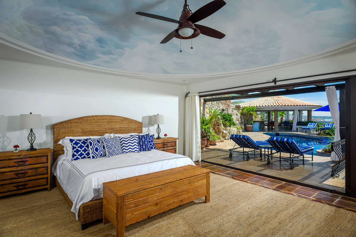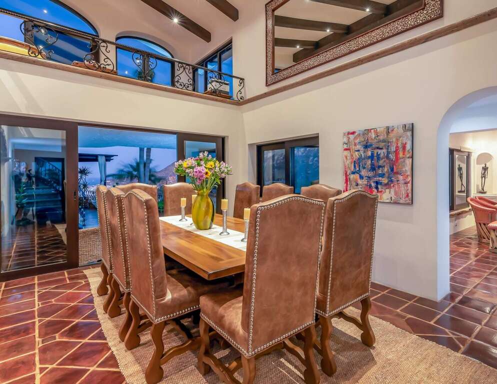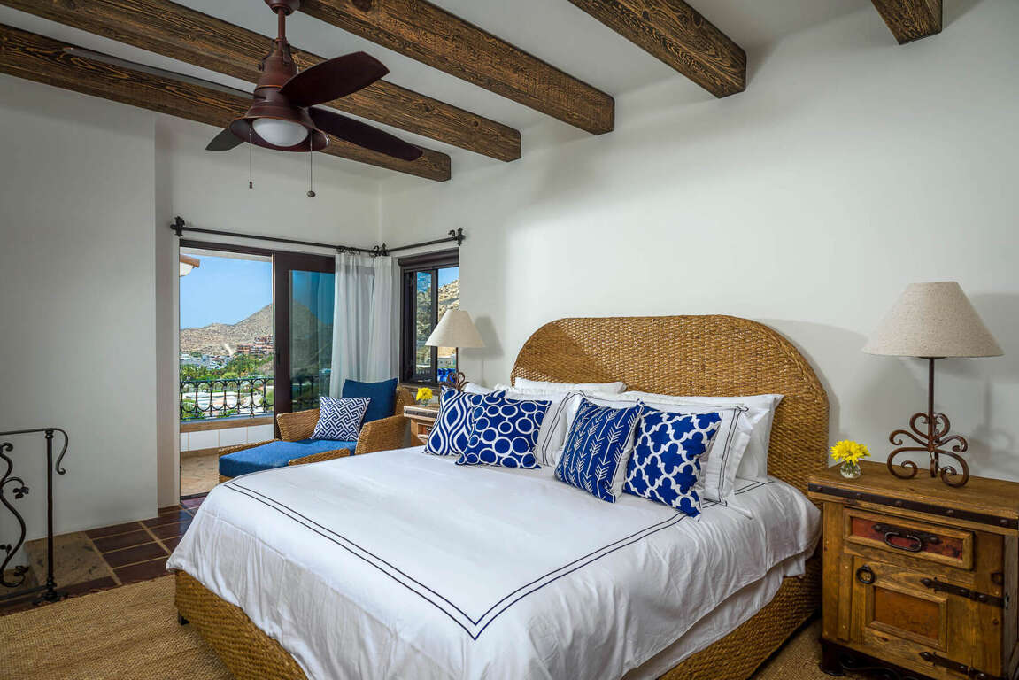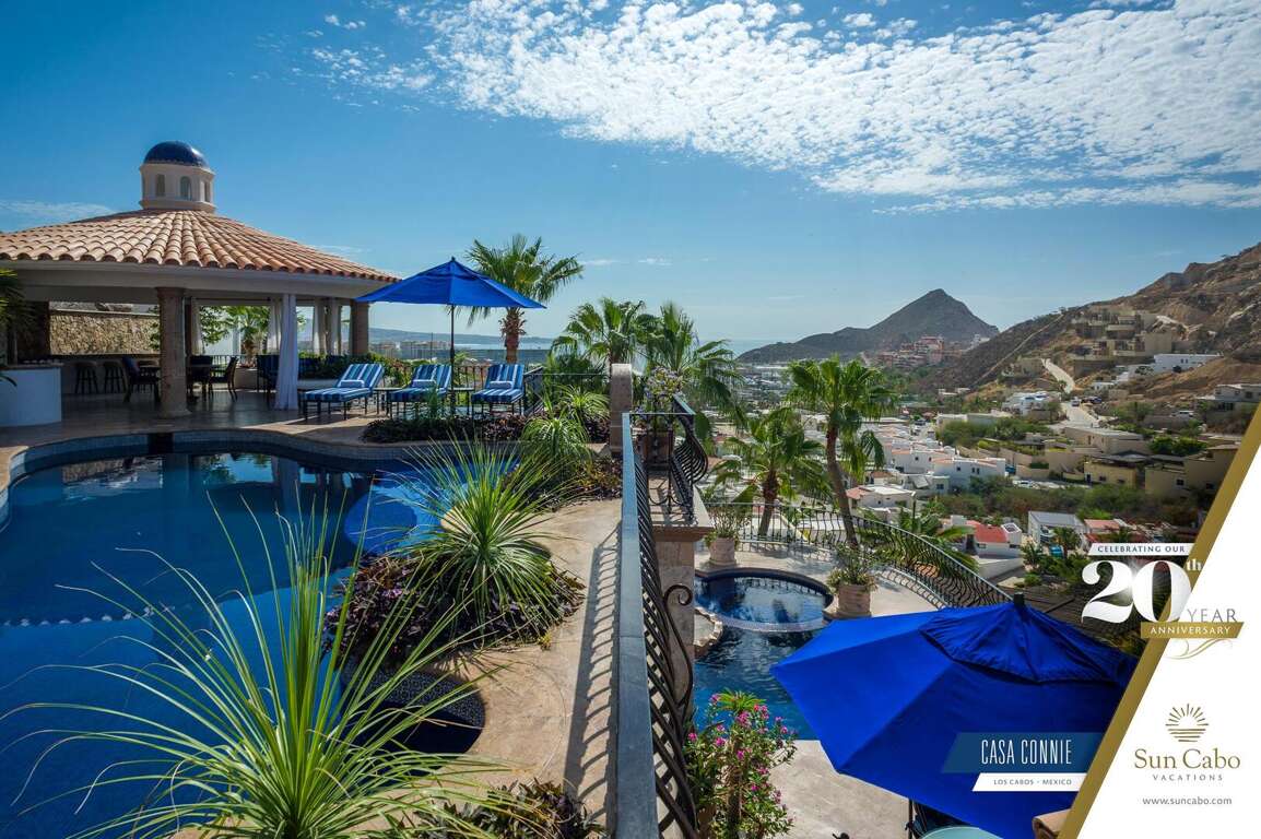 Featuring sweeping views of the gated Cabo community of Pedregal and the harbor of San Lucas Bay, Casa Connie is a uniquely designed villa that redefines a luxury vacation. At nearly 6,000 square feet Casa Connie includes six spacious bedrooms and the best modern amenities for you and your family, or friends. Enjoy everything this lavish property has to offer, from the inside-out. An expansive King size bed can be found in each of the bedrooms at Casa Connie. Spend your nights lounging or snoozing on the beds that have been outfitted with plush pillows and crisp white sheets. Feel as if you are laying outdoors in the Master Bedroom with a ceiling that has been painted to resemble a cloud-filled sky. Large sliding glass doors against one wall of the Master bedroom lead out onto a terrace where you will find a private, more secluded pool. Ensuite bathrooms, TV's, private terraces, and lovely views can be found in all the bedrooms of Casa Connie. Rustic and rich wood cabinets line the walls of Casa Connie's kitchen. Featuring plenty of counter space and modern, stainless steel appliances you can effortlessly create gourmet meals to wow your friends and family. Move into the dining room for a more formal, sit-down meal at the grand table with seating for up to eight guests. The living area of Casa Connie includes an array of plush sofas, so you can relax while still taking in the views from the terrace through the large windows. From the living area, a spiral staircase will take you to the upper level of Casa Connie. Take a moment to appreciate all the unique paintings and works of art that are found throughout the home. There are many more amenities to revel in out on the terrace. Soak up the Baja sun on one of the many lounge chairs or escape the heat by taking a dip into the pool. Much larger than the pool adjacent to the Master Bedroom, the central pool can also be heated. Unwind in the Jacuzzi after a long day of exploring Cabo or feel as if you have entered a secluded oasis in the garden of Casa Connie, which has been filled with vibrant flowers and greenery. Go ahead and take your meals to the outdoor dining area or take advantage of the gas barbecue and grill for a savory surf and turf. Everything you need for the perfect Cabo vacation is found at Casa Connie. Includes a Mexican Cook and Butler for breakfast service, available between 7am and 10am. Service is for new 2025 reservations only and must be used in one continuous 3-hour block. Groceries are not included. Lunch and dinner can be arranged for an additional fee. Not available during Thanksgiving, Christmas, or New Year’s rentals, and does not apply to 2026 bookings. Please contact your concierge for additional details.