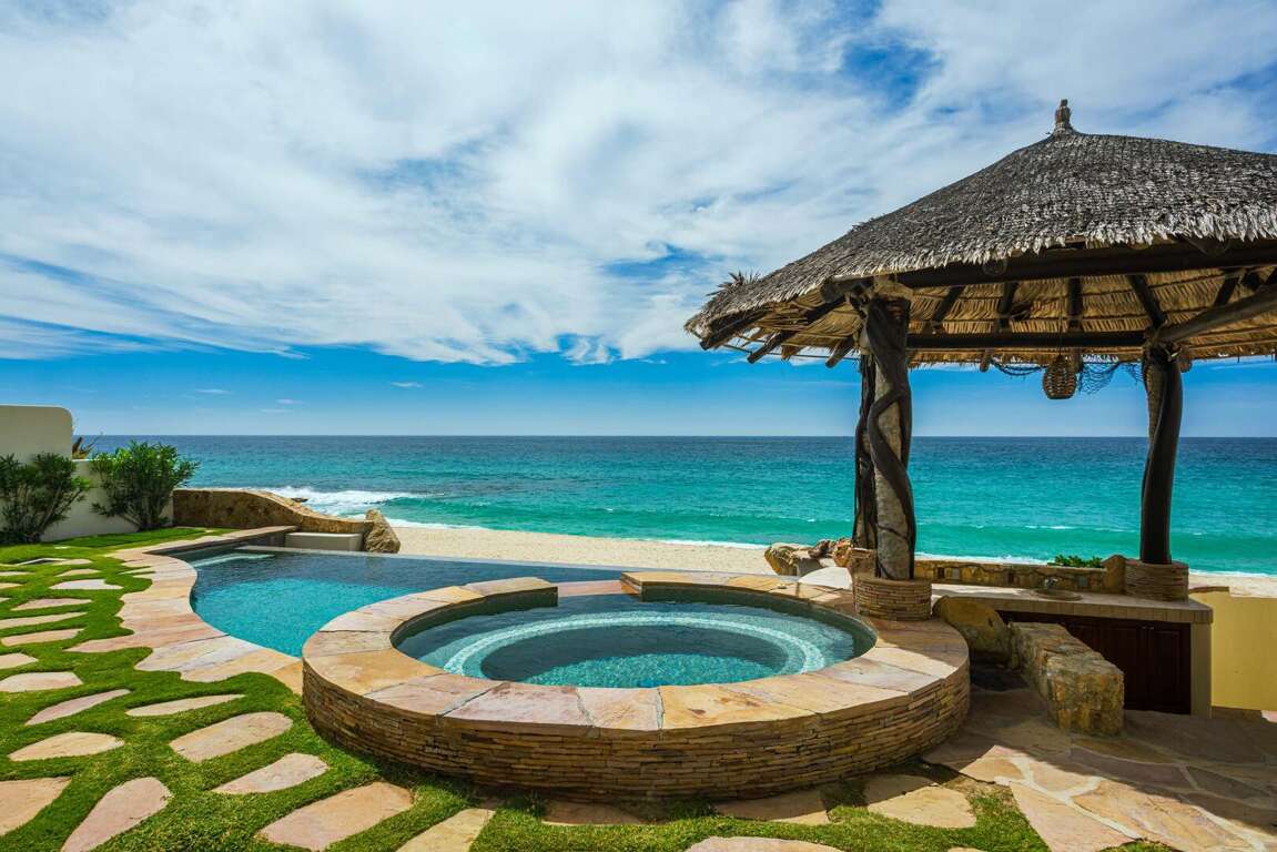 With miles of pristine white sand right at your doorstep, Casa Maya is the ultimate beachfront getaway. Situated on the beautiful East Cape of Los Cabos and hidden away in the exclusive El Encanto community, this palatial home offers its guests supreme luxury and privacy. Inspired by the haciendas of Old Mexico, Mayas architecture features high ceilings, rustic wood beams and arched walkways with grand stone columns. Inside the home, colonial-style furnishings complement the ambiance and add to the classic elegance of the interior design. Decor is fresh and vibrant with splashes of blue to mirror the unlimited vistas of sea and sky pouring through the windows. An air of serenity and romance flows through each of Mayas charming bedroom suites. There are two ocean view master suites, a third bedroom with Queen Bed and ensuite, and a cosy casita with a private entrance and its own ocean view balcony. The home also has a large gourmet kitchen, a formal dining room and a spacious living area where guests can entertain or unwind. Bordering the crystal blue Sea of Cortez, Mayas outdoor terrace is the gem of this magnificent home. Expertly manicured green grass surrounds each Cantera tile on the pool terrace, providing a cool path to the infinity pool. Adjacent to the pool is a large Palapa, offering a shaded spot to enjoy an afternoon cocktail at the swim-up bar or grill up the catch of the day on the deluxe gas BBQ. Guests can also observe the majestic sight of Grey Whales swimming offshore while soaking in Mayas elevated Jacuzzi. With its gorgeous setting right on the warm white sands and azure surf of. El Encanto de la Laguna, Casa Maya is the ideal escape for those seeking a secluded, luxurious beachfront home amidst the natural beauty of Los Cabos East Cape. As part of a gated community, the property also offers complimentary access to the Vera Neo gym and beach club, with a grand swimming pool and more space for lounging and dining while enjoying unmatched ocean views.