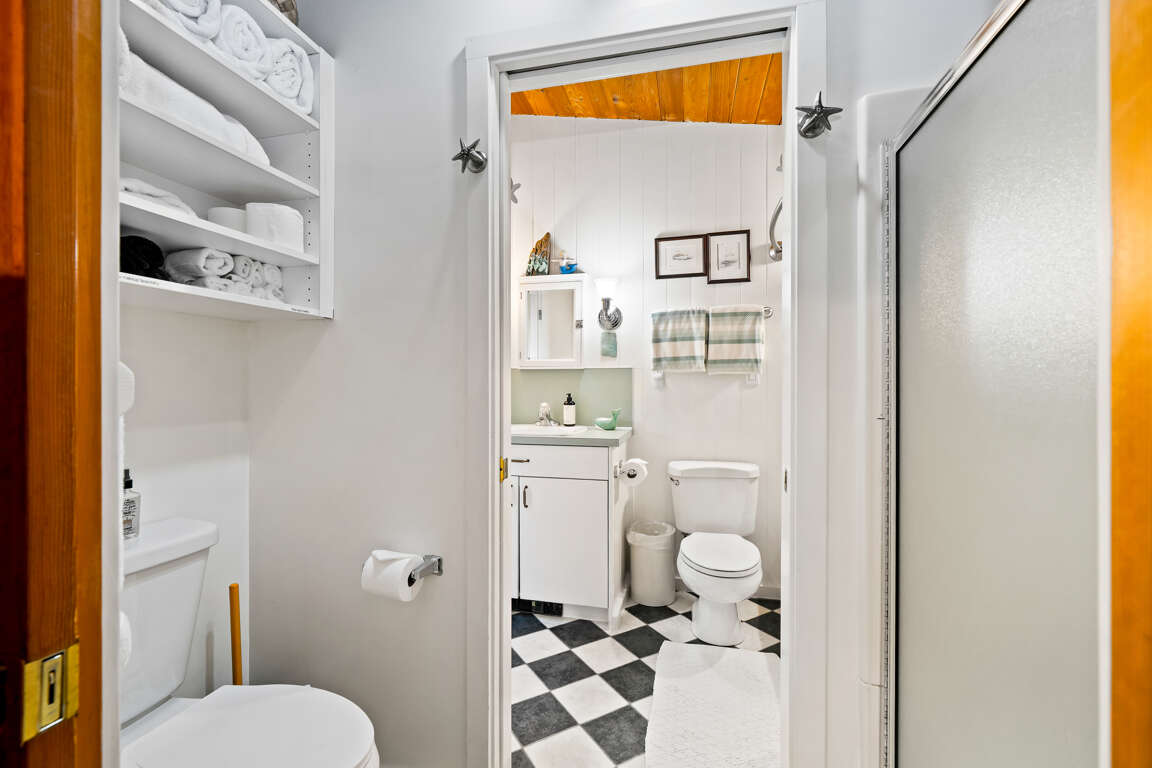 Inside this delightful 3-bedroom, 1 1/2 bath home, you'll find a unique setup that caters to your comfort. The Master bedroom features a luxurious King bed and a flat screen streaming TV, while the second bedroom boasts a double-size bunk bed set, perfect for the kids. For those seeking privacy, the third bedroom is an unattached bungalow, accommodating 2 adults and 2 kids with a Queen bed and a twin bed featuring a twin trundle. The bathrooms are unique in that one side has the tub, shower, toilet, and sink then through the pocket door is the shower and another toilet (no sink).