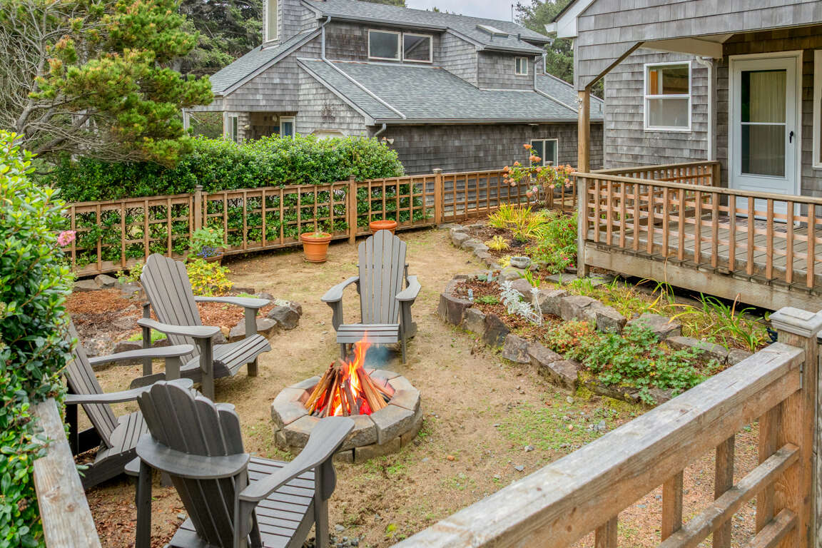 Start or end your day in the fresh ocean air. The fenced front yard features a cozy outdoor firepit, perfect for s’mores and stargazing. Rinse off the sand in the outdoor shower, store your gear with ease, and take advantage of the EV charger in the garage. The private upstairs deck also boasts a brand-new hot tub, offering a peaceful soak under the coastal sky.