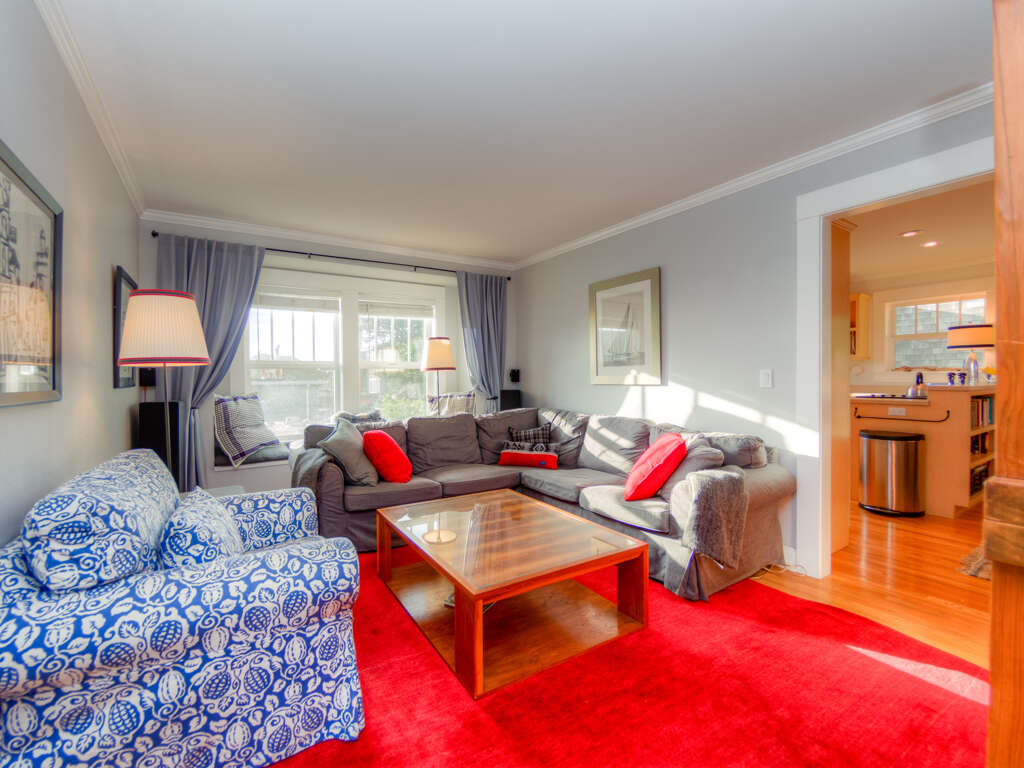 Step outside to enjoy ocean views from the deck and front yard, lounge around the firepit, or host a meal at the outdoor picnic table with a gas BBQ. A fenced backyard offers safe space for kids and dogs to play.