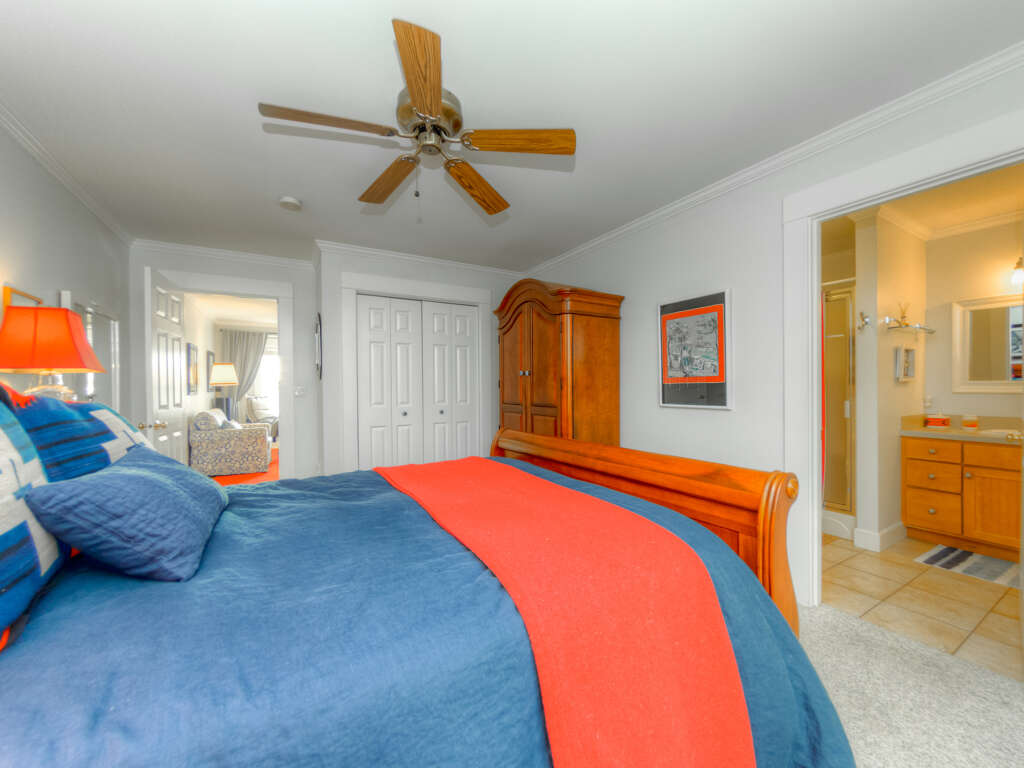 • Main level master suite with queen bed, private bath, and cozy sitting room with fireplace