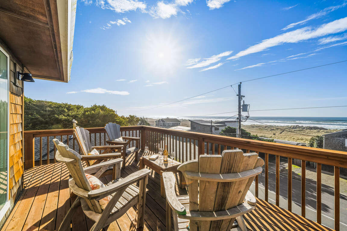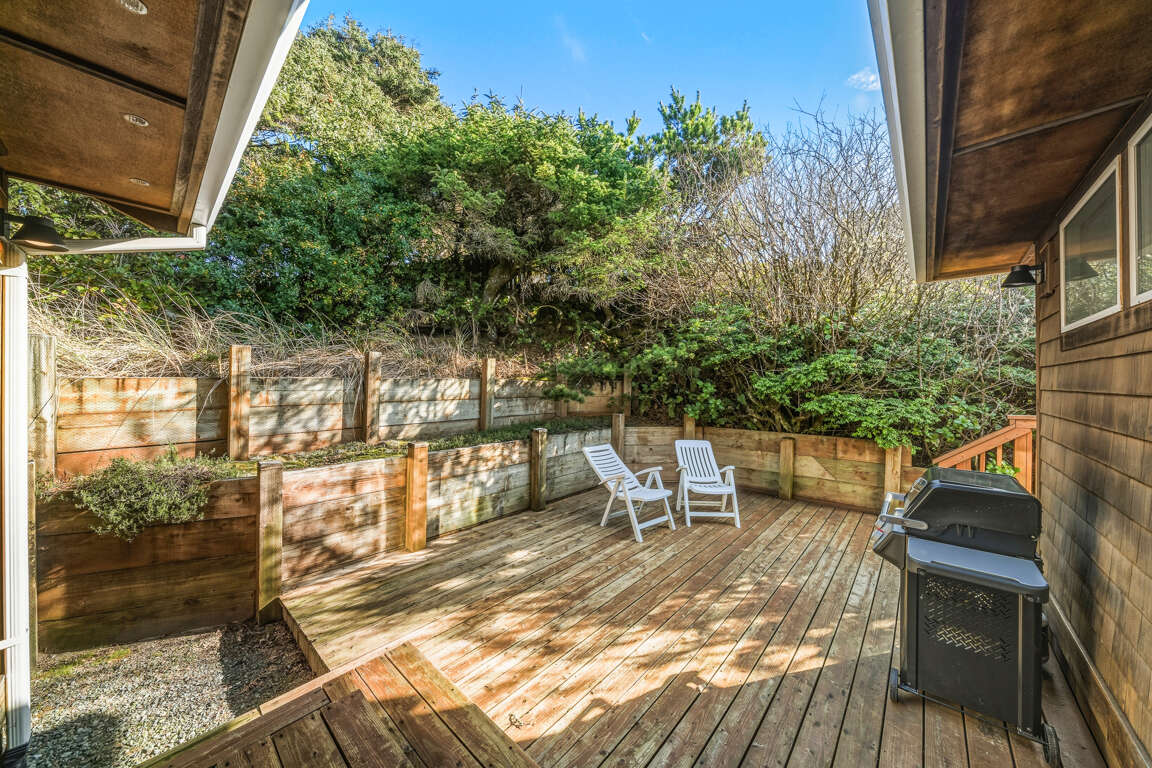 Step outside and experience one of Manzanita Magic’s most memorable features — the spacious wrap-around deck. Enjoy your morning coffee in the front seating area while watching the waves roll in, or gather for evening barbecues on the wind-protected back deck with the gas grill. The home’s fantastic location allows guests to easily walk to downtown Manzanita’s charming shops, restaurants, the city park for children, and the nearby golf course.