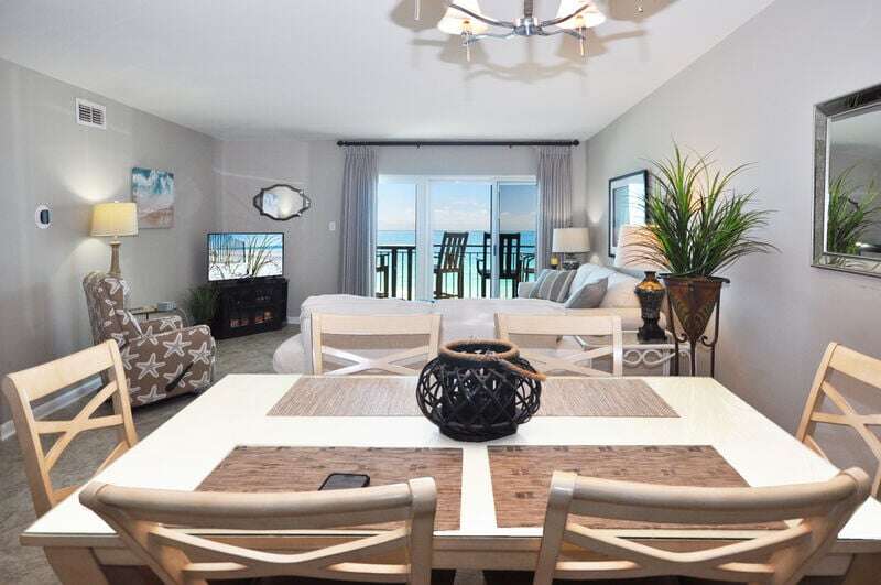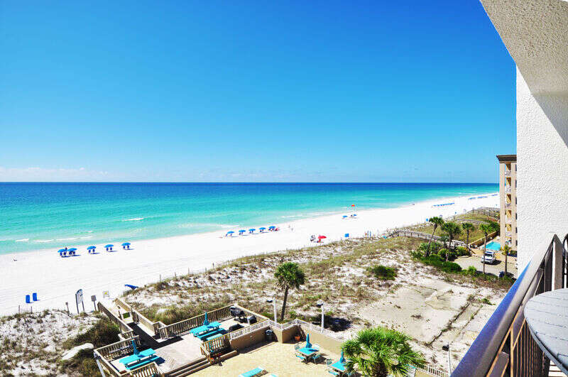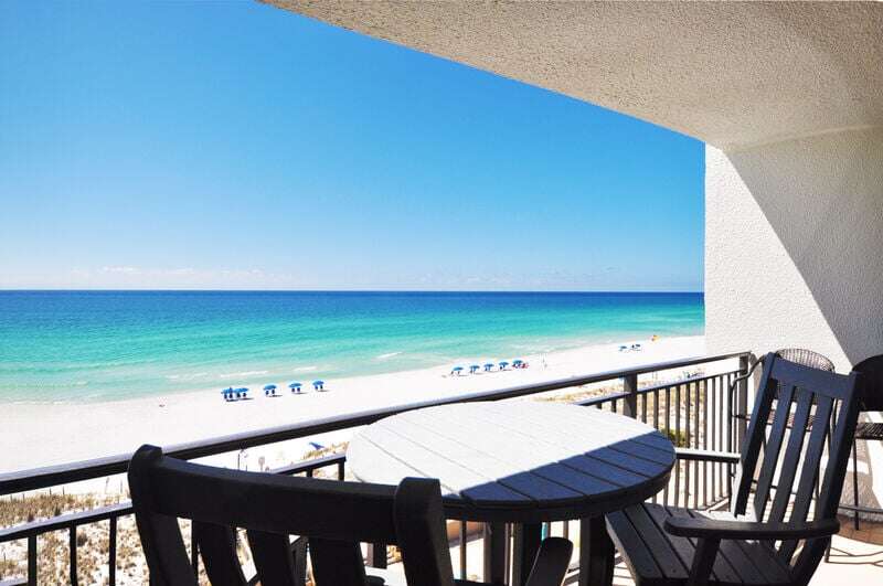 Beachfront condo vacation rental in Fort Walton Beach with 2 bedrooms, 2 baths, and sleeps 6, plus a private balcony, pool, tennis, and beach service.