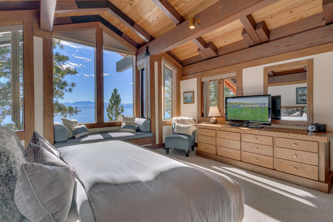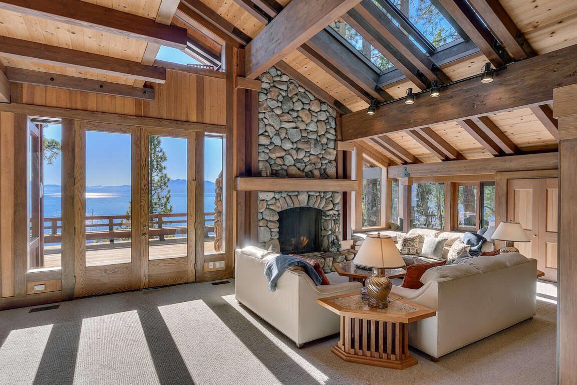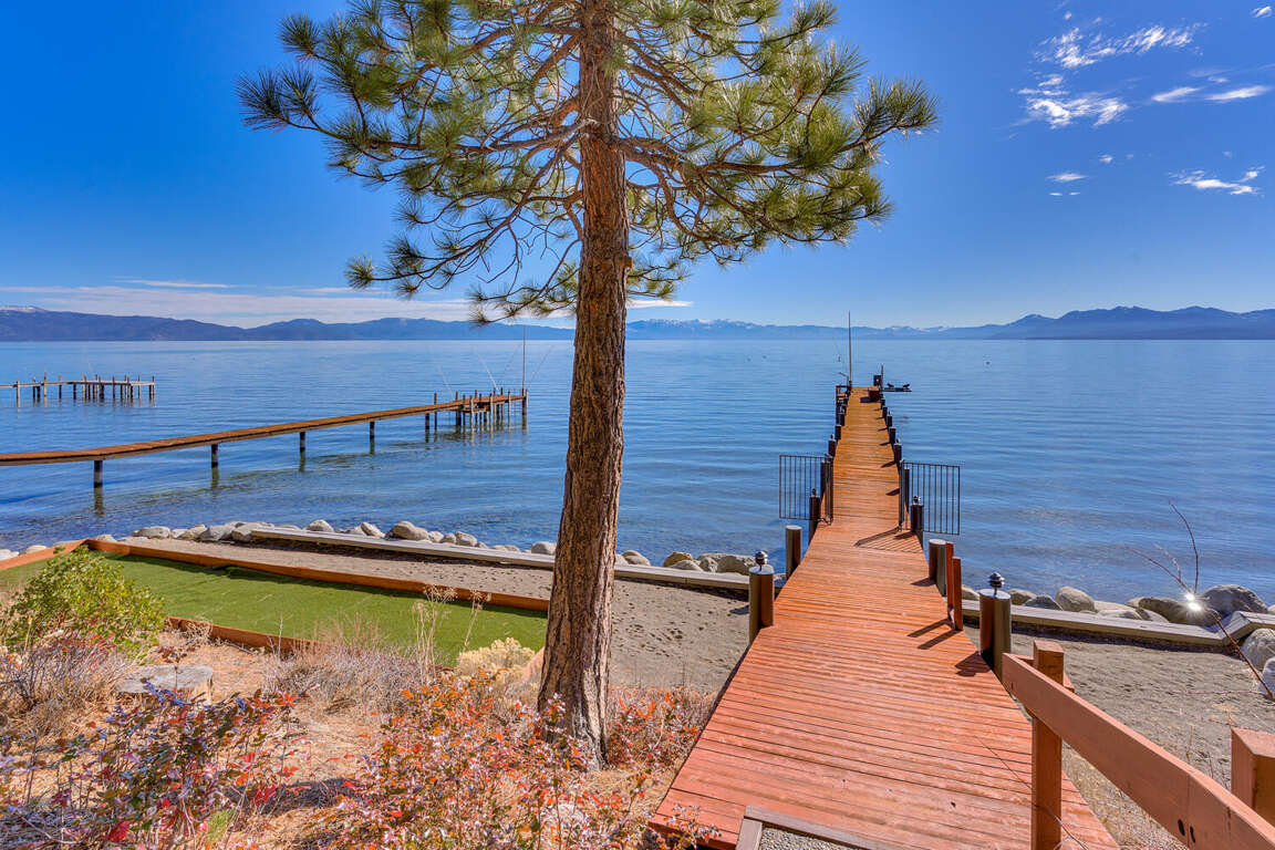 Situated in Tahoe City, CA, the luxurious Palatial Pines - Lakefront house grants breathtaking views & features like a hot tub and an inviting fireplace.