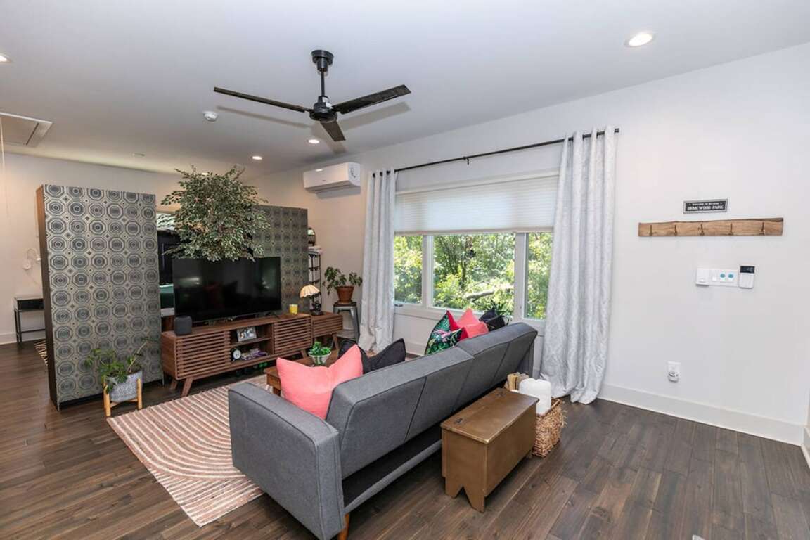 Nestled in the trees, this is the perfect place to enjoy a short/long term stay. This custom-built getaway was designed for relaxation, w/ treetop views in summer & city views in the winter. It boasts a large open space with a bedroom partition for privacy. Enjoy the spa-like bathroom after a long day of work or play. Quiet, yet walking distance to the Beltline & East Atlanta Village and much more. We are also short drive from the airport, Decatur & Buckhead.