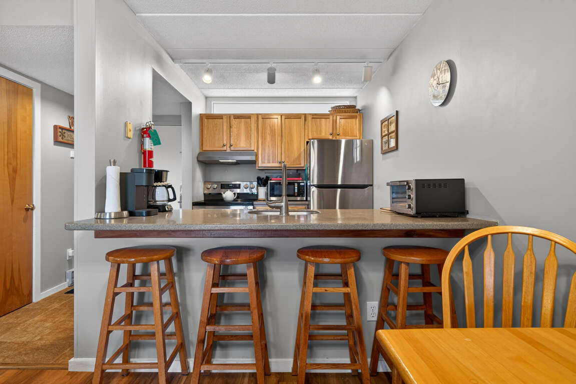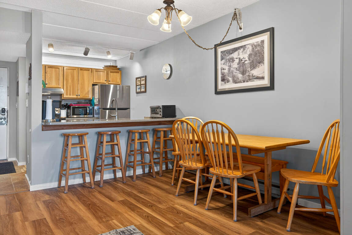 Pinnacle E8 is a charming 2 bedroom condo situated at 257 Old Mill Road in Killington, Vermont, featuring a newly upgraded kitchen and bathrooms, as well as a cozy gas fireplace in the living room. The unit can accommodate up to 6 people, with one room offering a king bed and the other two twins. The property also offers outdoor amenities such as a pool, hot tub, and tennis courts during the summer, providing ample opportunities for relaxation and recreation. It's important to note that this unit does not have air conditioning, however, the serene surroundings and access to outdoor activities make it an ideal choice for those seeking freedom from the hustle and bustle of city life. Whether it's a peaceful retreat or an adventure-filled vacation, Pinnacle E8 offers a cozy haven for all.