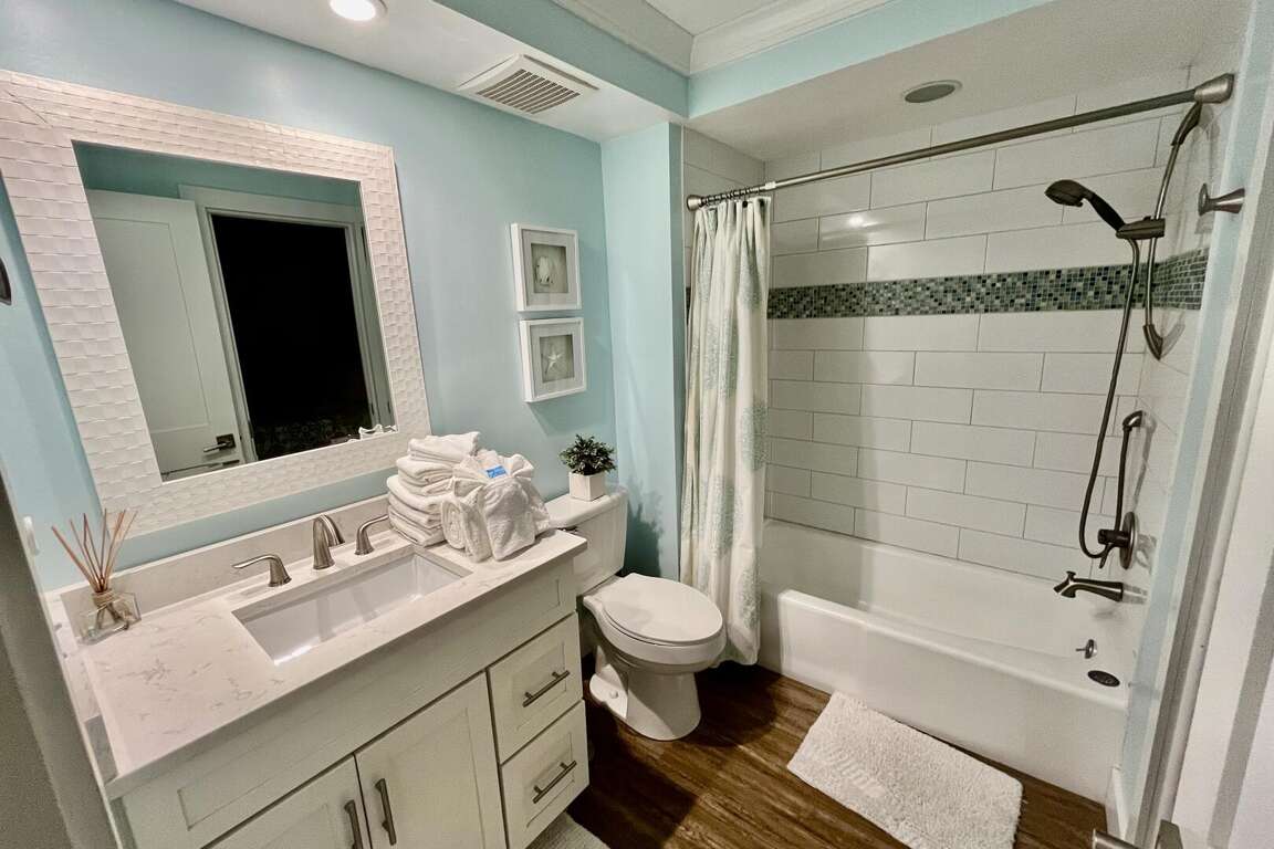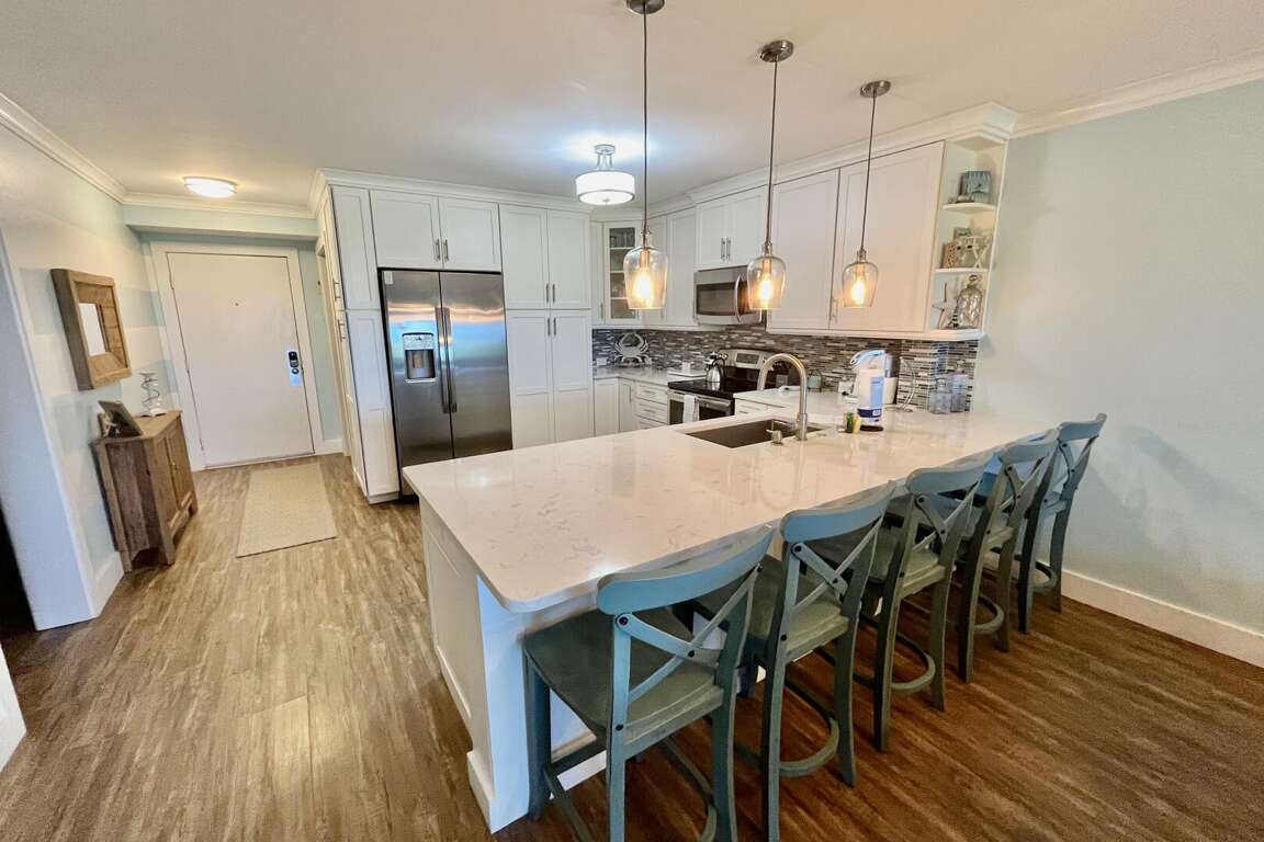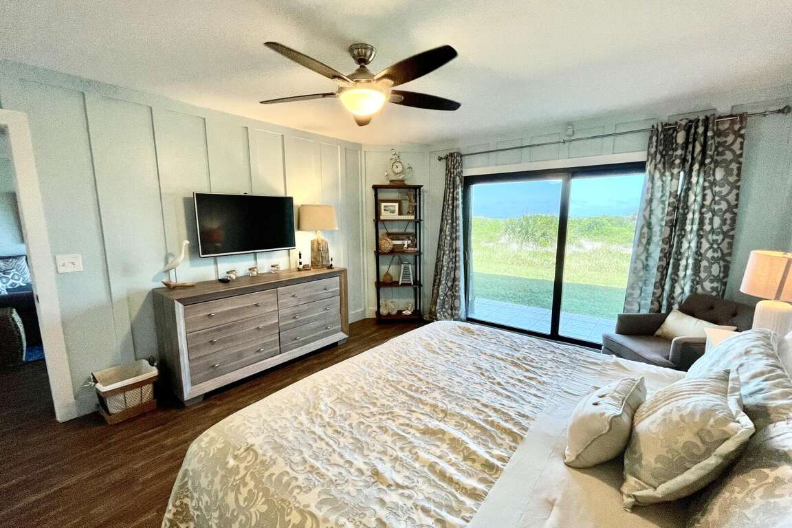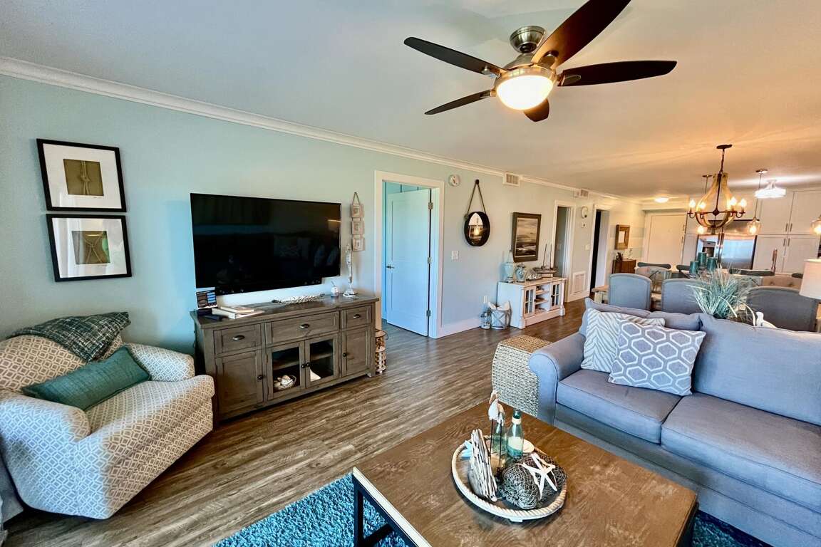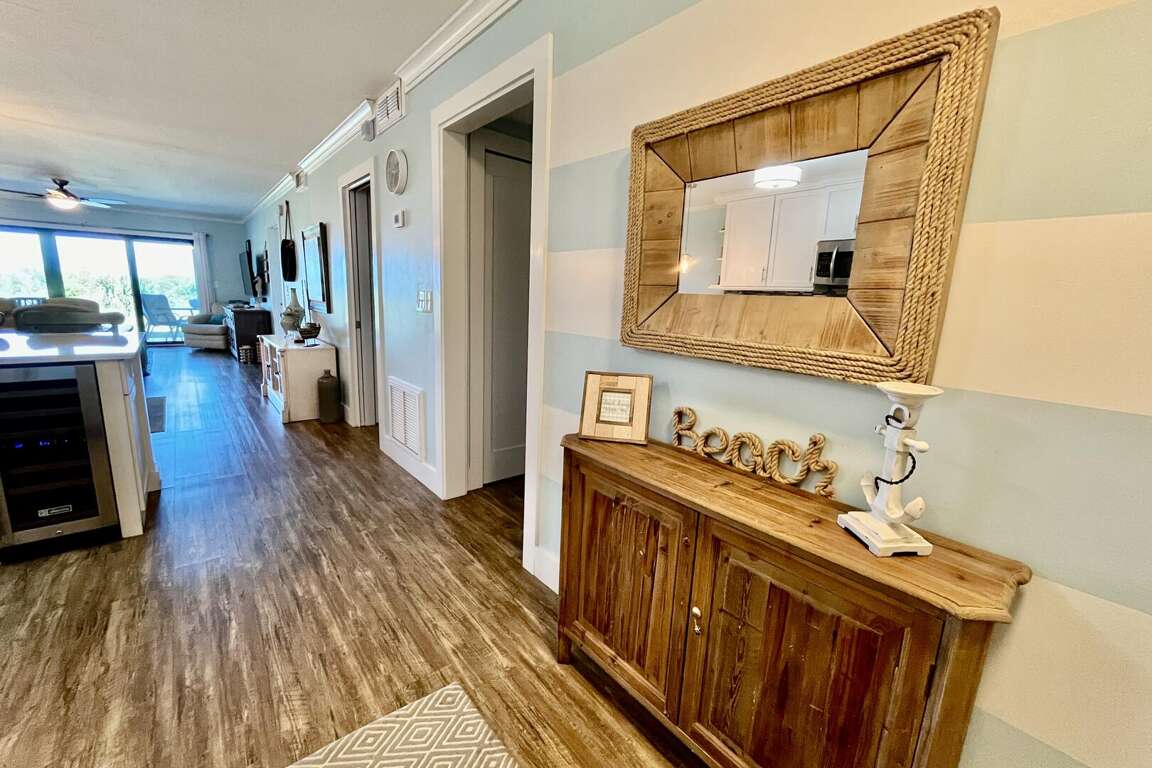 Featuring a modern and recently remodeled design, the stunning 2-bedroom condo at 109 Aegean Vista Way G offers a luxurious beach retreat with a range of upscale amenities. The interior design boasts a fully equipped kitchen with new appliances and a breakfast bar, perfect for enjoying beach lifestyle living. The master bedroom includes a king bed, walk-in closet, and Smart TV, while the guest bedroom features a queen bed and Smart TV. Additionally, there is an extra 3rd bedroom with bunk beds and a trundle, ideal for accommodating guests. The vinyl hardwood flooring throughout guarantees easy maintenance and complements the condo's beach-inspired aesthetic, providing a comfortable and stylish space for those seeking a relaxing coastal getaway.
