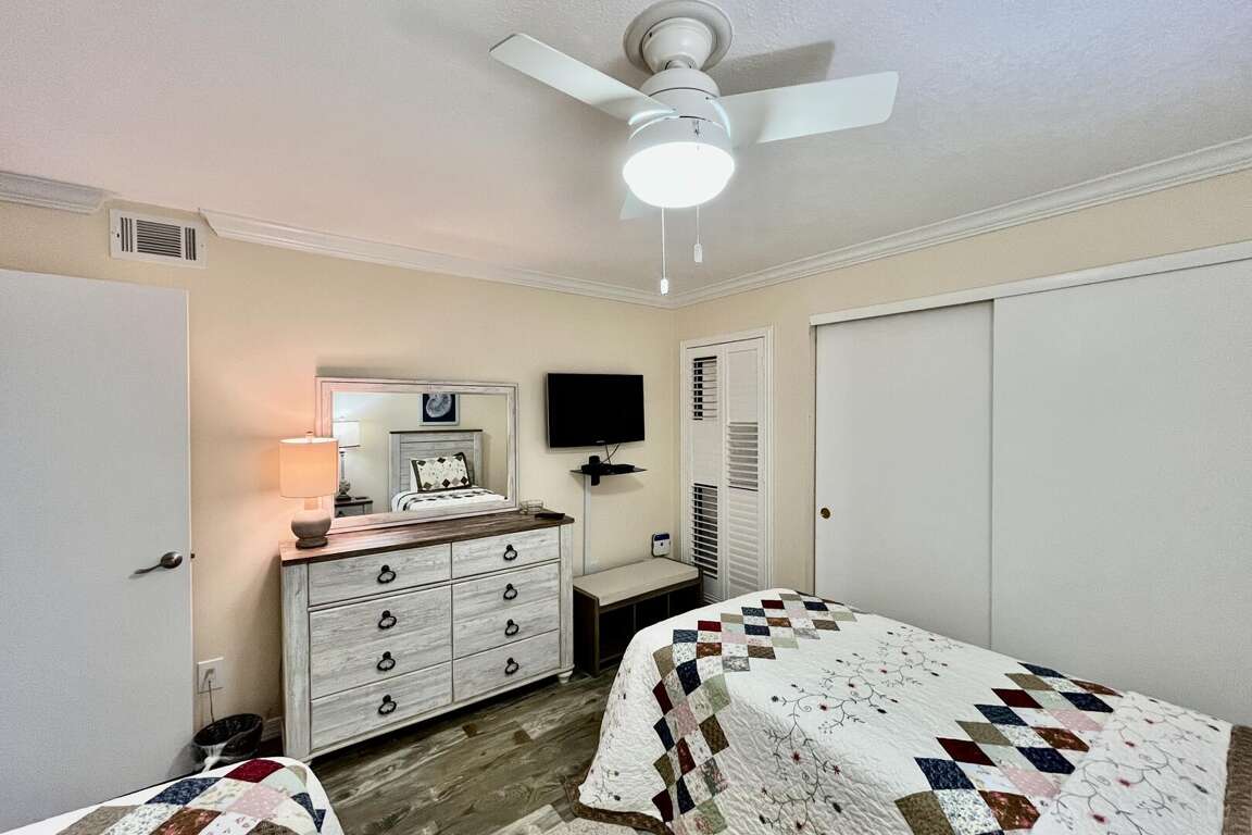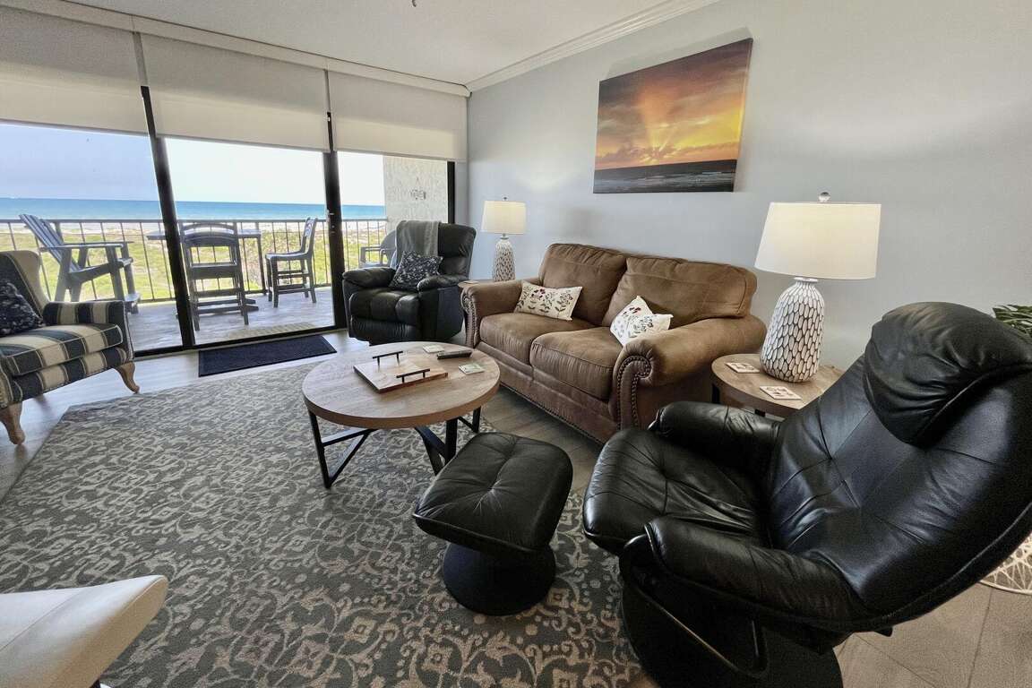 Located on the third floor of 307 Premiere Vista Way, the Gold-rated oceanfront condo at Beachfront Paradise offers a serene retreat with modern comforts and breathtaking views of the ocean. This property embodies oceanfront relaxation and beachfront bliss, providing an ideal escape for those seeking tranquility and luxury. With 2 bedrooms accommodating up to 4 guests, 2 full bathrooms, and a fully equipped kitchen with recent updates, guests can enjoy a comfortable stay. The master bedroom features a king bed and TV, while the guest bedroom offers 2 twin beds and a TV as well. Updated bathrooms with a walk-in shower and tub/shower, a living room with a flat-screen TV, and a dining area for 4 complete the perfect seaside getaway.