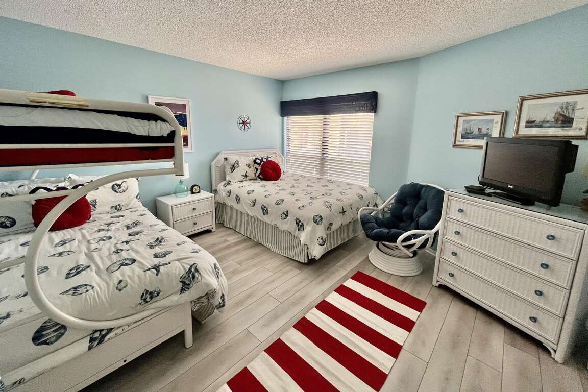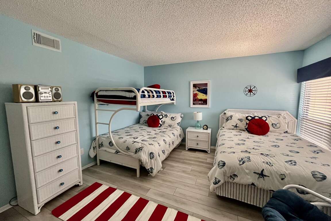 Enhance your vacation experience with an array of exclusive amenities available at the property and within the luxurious 2 bedroom condo in St. Augustine Beach, Florida. Enjoy oceanfront relaxation with stunning views and the calming sounds of the waves. The condo boasts updated kitchen amenities, including new cabinets and granite countertops, perfect for preparing meals during your stay. You'll find a master bedroom with a king bed and patio access, along with a guest bedroom featuring a full-size bed and bunk bed. Additionally, the property offers a gold-rated 2 bedroom/2 bathroom unit with a balcony overlooking the ocean. These amenities combine to provide a comfortable and luxurious setting for your vacation.