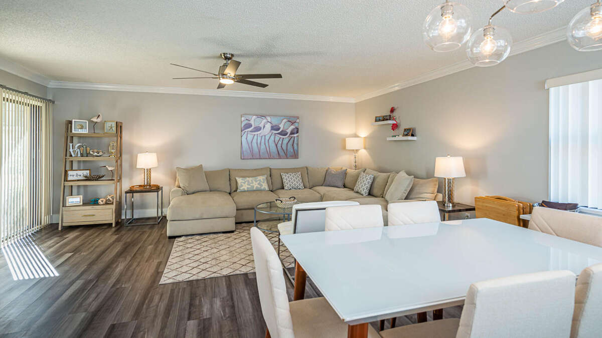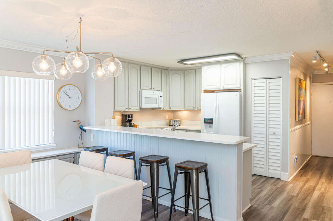 Boasting a blend of modern elegance and coastal charm, the luxury getaway at 115 Caribe Vista Way G features a meticulously remodeled 2-bedroom vacation condo designed to provide a serene retreat for up to 6 guests. The kitchen is updated with sleek granite countertops, adding a touch of sophistication to the space. Throughout the condo, guests will find high-end furnishings, including a trendy dining room set for 6 and a living room adorned with a plush, high-end fabric sectional sofa. The master suite offers a luxurious escape with a king bed, walk-in shower, and double vanity. These carefully selected features enhance the overall ambiance, ensuring a comfortable and stylish stay for guests seeking relaxation and freedom.