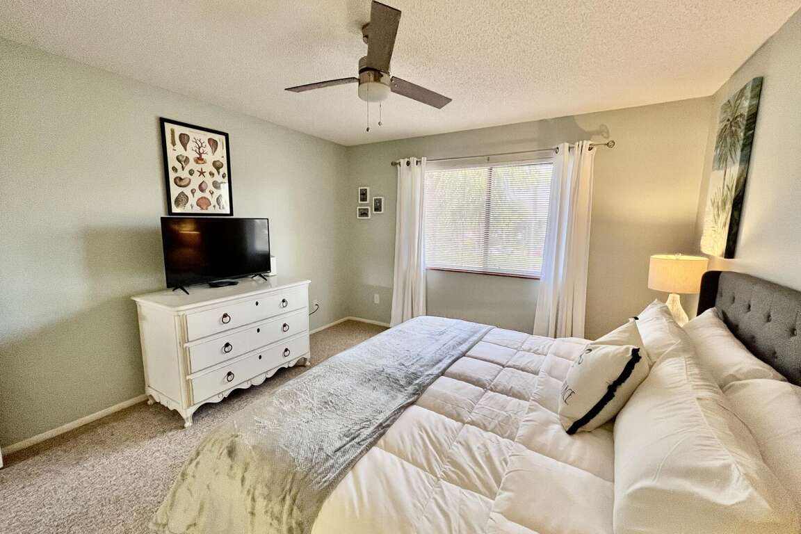 Located within the luxurious vacation rental at Village Las Palmas Circle B are well-appointed sleeping arrangements that cater to comfort and convenience for up to seven guests. Guests can enjoy the flexibility of two master bedrooms, each equipped with en-suite bathrooms for added privacy and luxury. The downstairs bedroom boasts a spacious king bed, while the upstairs bedroom offers a cozy queen bed. Additionally, a bedroom loft provides two twin beds, perfect for accommodating additional guests or children. All bedrooms feature new and comfortable bedding options, ensuring a restful night's sleep after a day of exploring the nearby beach and attractions. These room configurations provide a welcoming retreat for families or groups seeking relaxation and tranquility during their stay.