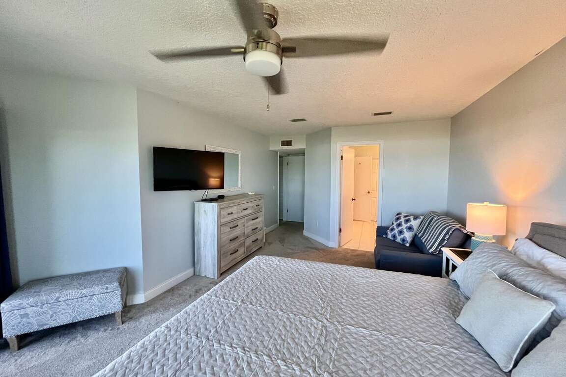 With a sophisticated blend of modern comforts and coastal charm, the condo at 310 Caribe Vista Way G in St. Augustine Beach, Florida, offers a luxurious retreat overlooking the pristine Atlantic Ocean. The condo features stunning beachfront views perfect for relaxation and rejuvenation. Renovation details include a modern kitchen equipped with stainless steel appliances, a spacious living room with seating for 6-8 guests, and a master bedroom boasting a king-size bed and a flat-screen TV. Additional guest bedrooms offer a queen-size bed, twin beds, and a trundle, ensuring ample sleeping arrangements for up to 8 guests. Experience the epitome of seaside living with these exquisite features and amenities at your disposal.