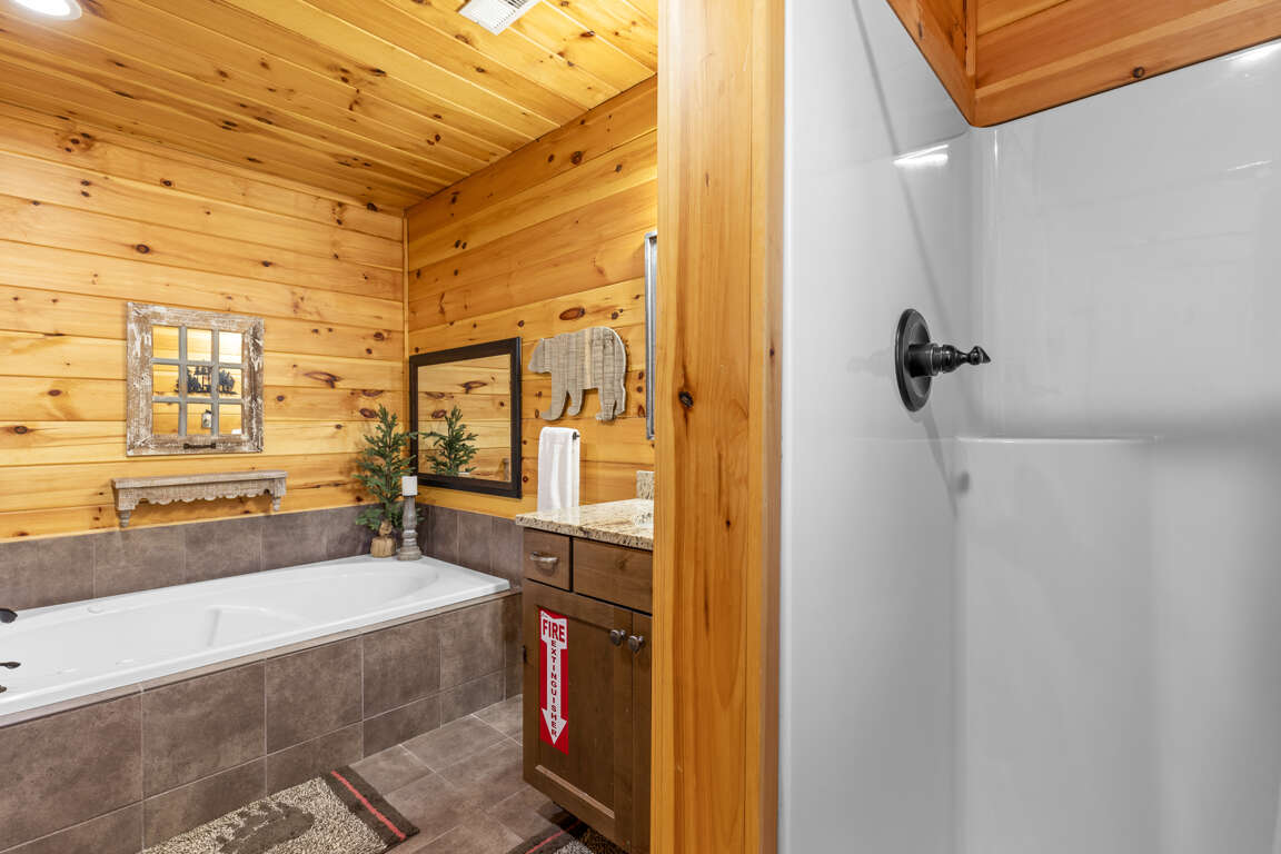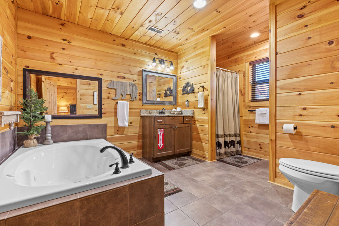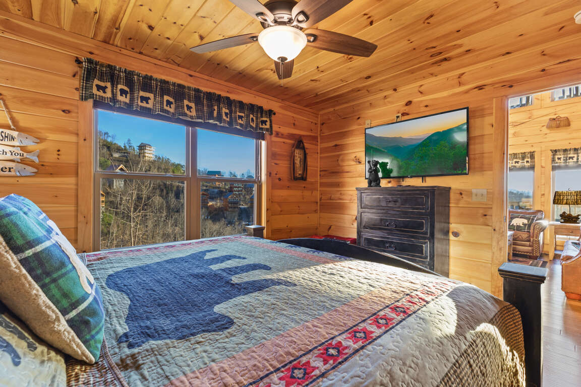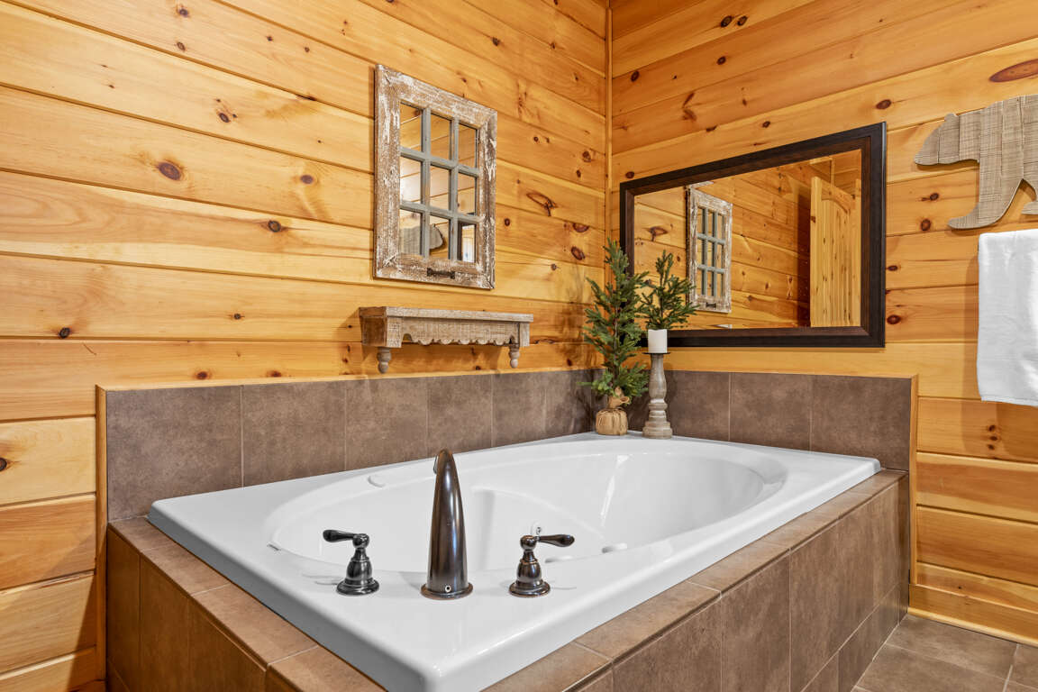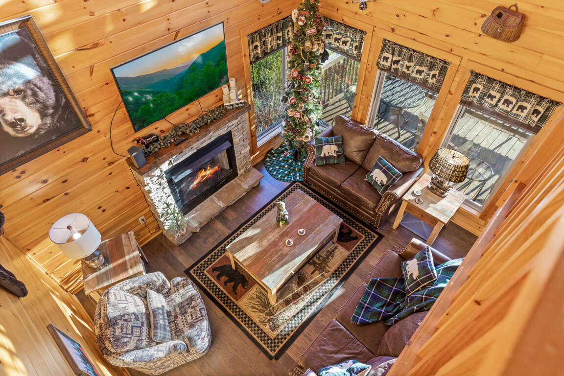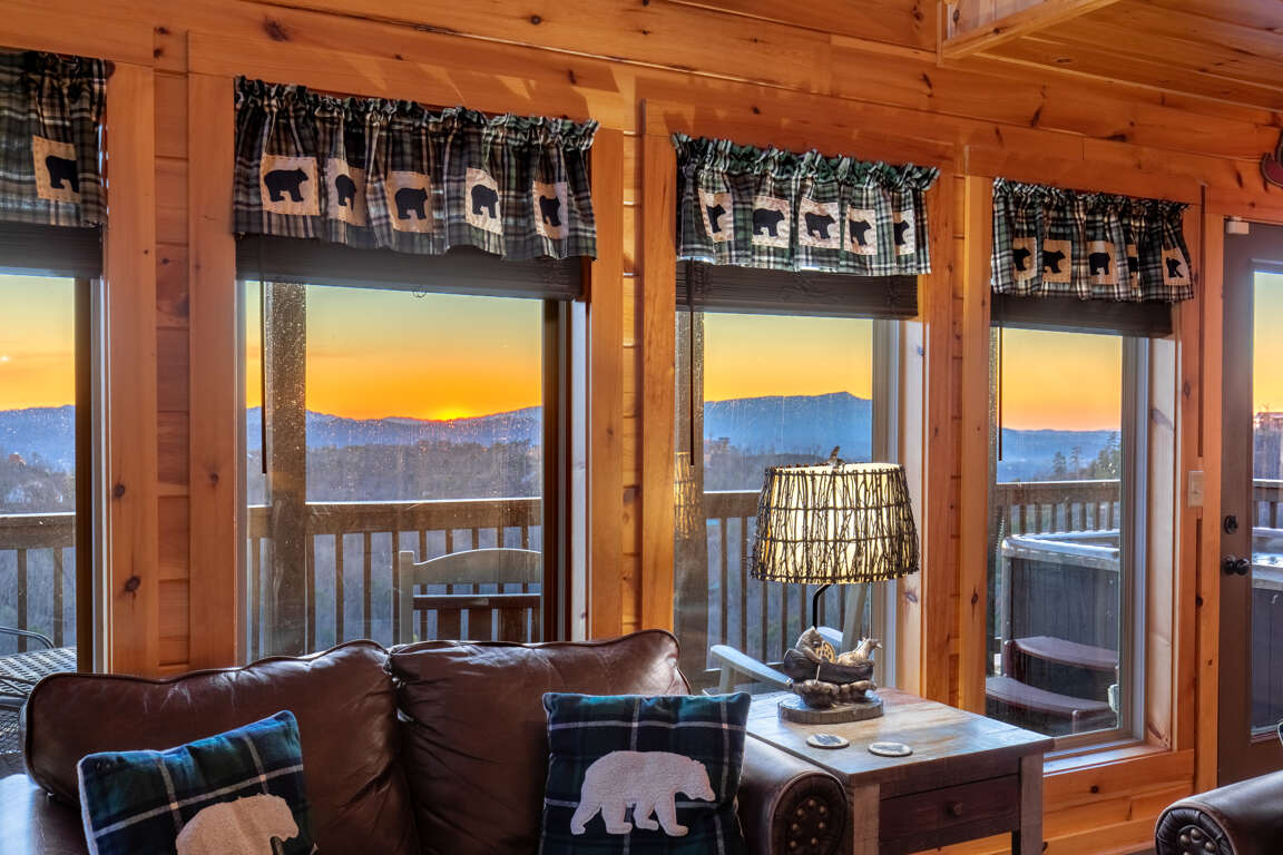 Spectacular Mountain View, Honeymoon, Games, Hot Tub, Wifi, Resort Pool, near Dollywood and other Attractions! Welcome to Above The Smokies! This 2-story, 1,200 square feet, beautiful log cabin with 2 bedrooms and 2 bathrooms sleeps 8 guests and offers every luxury and caters to the discerning traveler seeking a unique and luxurious vacation experience in The Great Smoky Mountains. The cabin offers spectacular mountain views, a game room, hot tub, wifi throughout the cabin and is perfect for a small family or a couples retreat. There is parking for 3 vehicles and easy access into the cabin. Guests have access to the seasonal resort pool. Main Level: The main level features the living room, kitchen, dining, 1 bedroom with full bath, laundry and access to the spacious deck with hot tub. The living room offers comfortable seating (including a sofa sleeper), a stacked-stone gas fireplace, a large HDTV and access to the deck. The kitchen is fully equipped and the dining table seats 4 to 6 people. The bedroom on this level features a king bed, large HDTV and a full bathroom with tub/shower. Step out onto the covered deck and enjoy the sounds of nature from the rocking chairs or relax in the soothing hot tub after a long day out. The charcoal grill is located just off the front porch. Upper Level: Travel upstairs to find the loft area with game room/lounge, 1 bedroom, full bath and access to the covered deck with beautiful mountain views. The game room/lounge area offers an arcade game and a sitting area with sleeper sofa. The enclosed bedroom offers a king bed, HDTV and an adjoining full bath with jetted tub and walk-in shower. Step out onto the deck and relax in one of the rockers while enjoying the expansive view over the mountains. During the Summer Months, take a stroll down to the nearby resort pool. Relax in the sun, or enjoy a picnic and cook-out under the trees. There is also parking available at the pool. Guests are provided with a complimentary Luxury Pass, offering a free ticket daily to several of the area’s most popular attractions. See under AREA INFO for more details, rules, & restrictions. Be sure to explore other nearby attractions including Ober Gatlinburg, The Arts & Crafts Community in Gatlinburg, Anakeesta Gatlinburg, Dollywood, Splash Country, and The Island! Above The Smokies is perfect for guests who appreciate the finer tastes in life. This is where you are going to make memories that will last you a life-time.