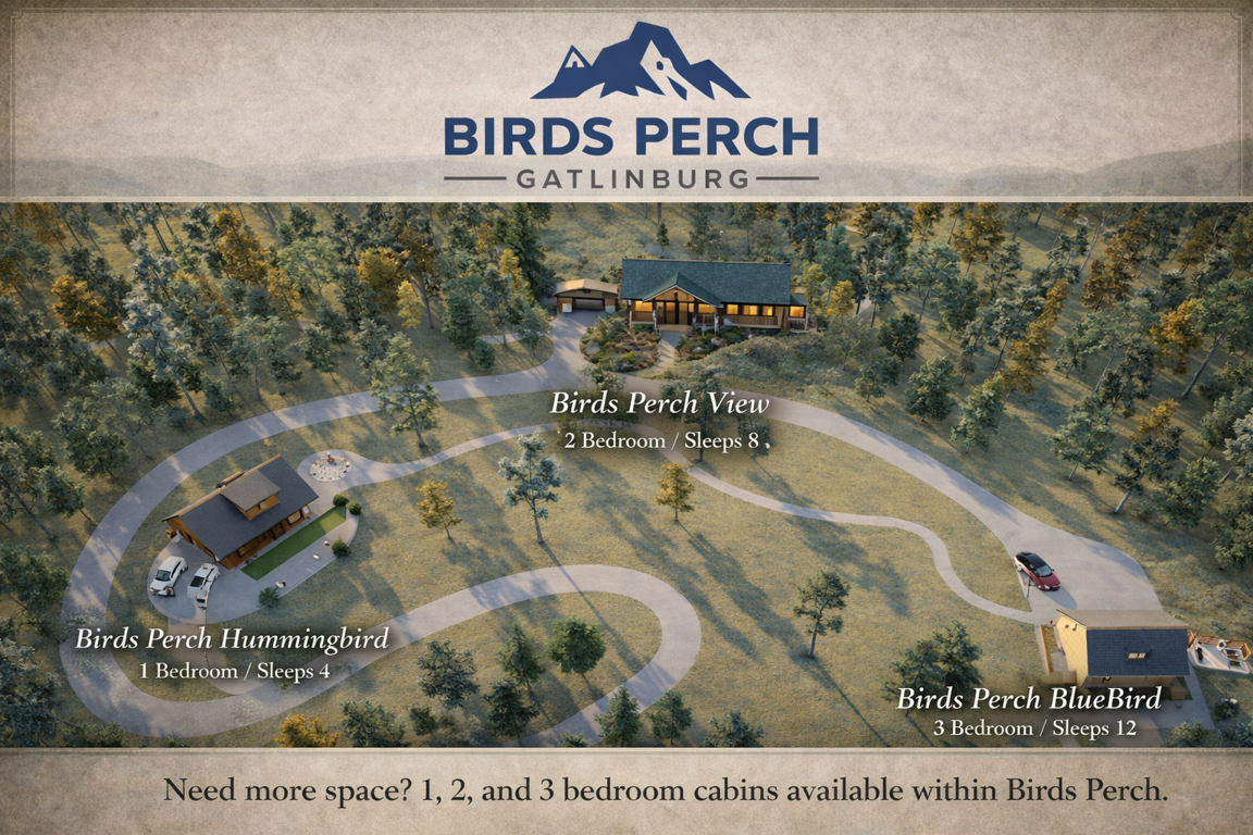 An ideal place to stay in Sevierville, TN, Birds Perch Hummingbird's 2-bedroom cabin designed with modern amenities including a fireplace, grill and Internet access. Pets are also welcome.