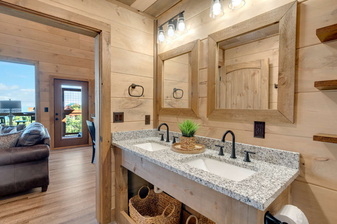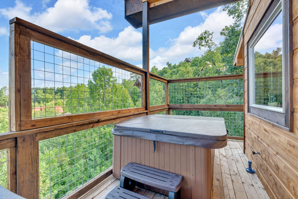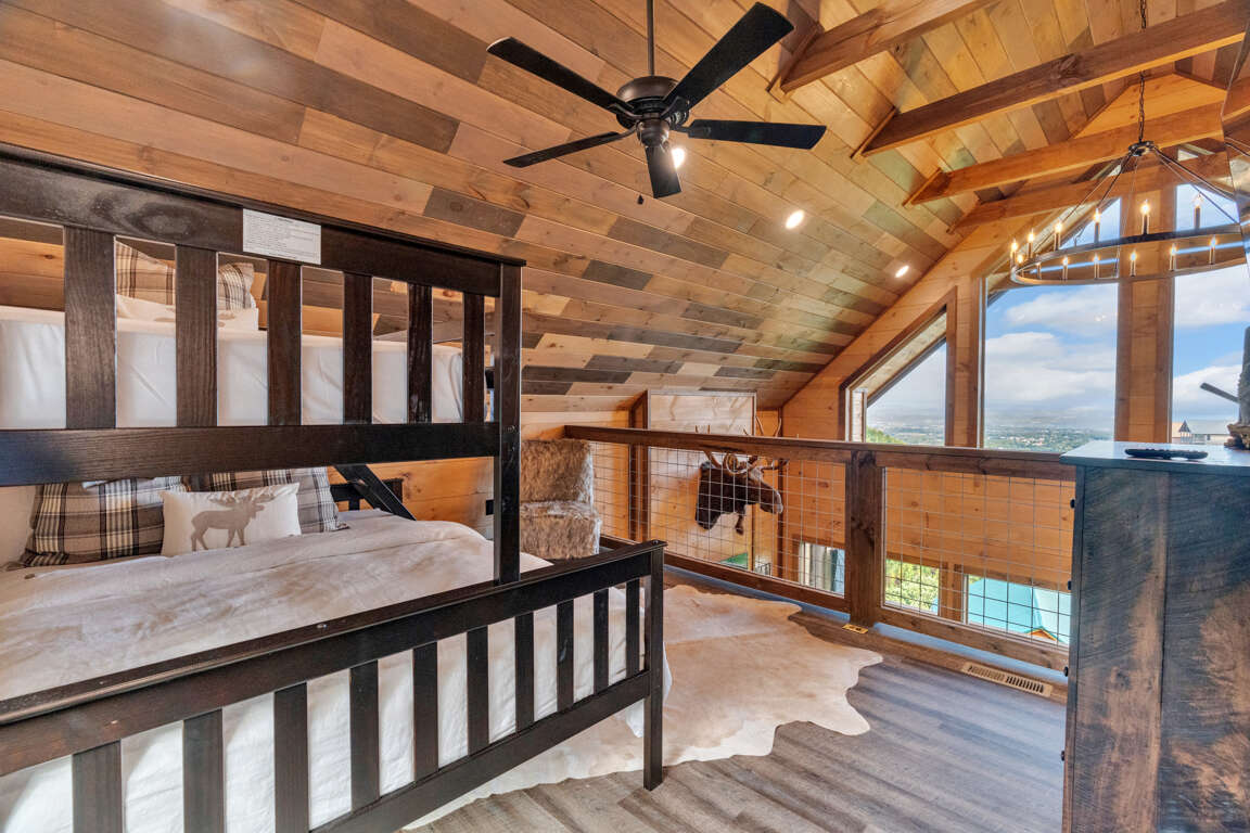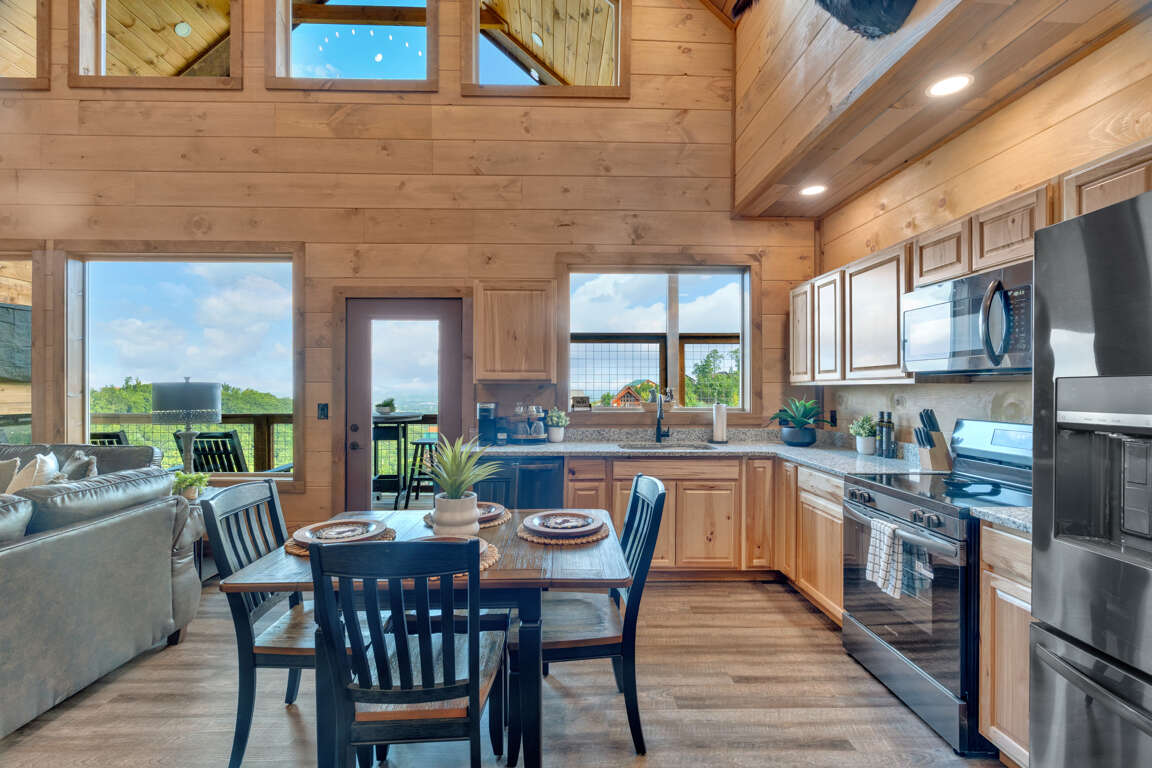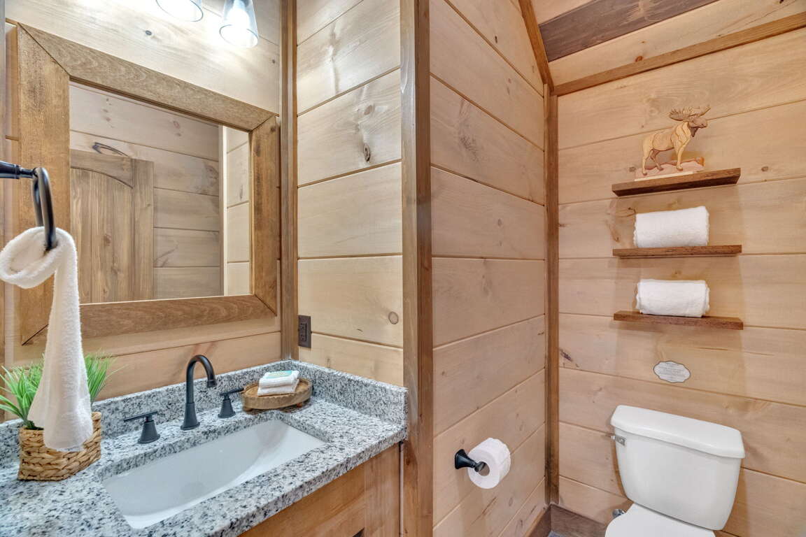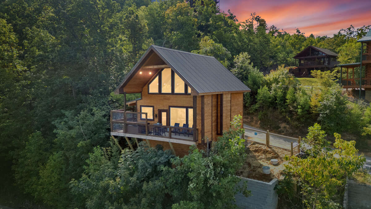 Spectacular Views, Hot Tub, Wifi, Outdoor Fireplace, Resort Pool Moose Top is a newly built, 2-story, luxurious 2 bedroom, 1.5 bathroom cabin with panoramic views of the Smokies. This cozy yet elegant retreat spans approximately 1,000 sq ft and is perfectly suited for couples or solo travelers seeking a peaceful mountain escape. The cabin is located near Dollywood and offers spectacular views, hot tub, Wifi, an outdoor fireplace, parking for 2 vehicles and access to the seasonal Resort Pool. Main Level: The main level of this cabin features the Kitchen, Living Room, 1 Bedroom, 1 Full Bathroom, the laundry closet and access to the deck. The Kitchen is fully equipped and offers granite counters and stainless steel appliances as well as a table to seat 4. The Living Room features 2 couches, an electric fireplace, HDTV and deck access. The Bedroom on this level offers a King bed, HDTV and access to the full bathroom. The Bathroom features a double vanity and step-in tiled shower. A charcoal grill is located just off the front porch for your convenience. Step out onto the deck where you will find a cozy fireplace, an outdoor HDTV, hot tub, seating and views for days! Upper Level: The upper level of this cabin features a loft bedroom with a Twin-over-Queen bunk bed, a half bathroom, HDTV and breathtaking views through the large windows. The seasonal Resort Pool is available between mid-May and mid-September. Guests are provided with a complimentary Luxury Pass, offering a free ticket daily to several of the area’s most popular attractions. See under AREA INFO for more details, rules, & restrictions. Be sure to explore other nearby attractions including Ober Gatlinburg, The Arts & Crafts Community in Gatlinburg, Anakeesta Gatlinburg, Dollywood, Splash Country, and The Island!