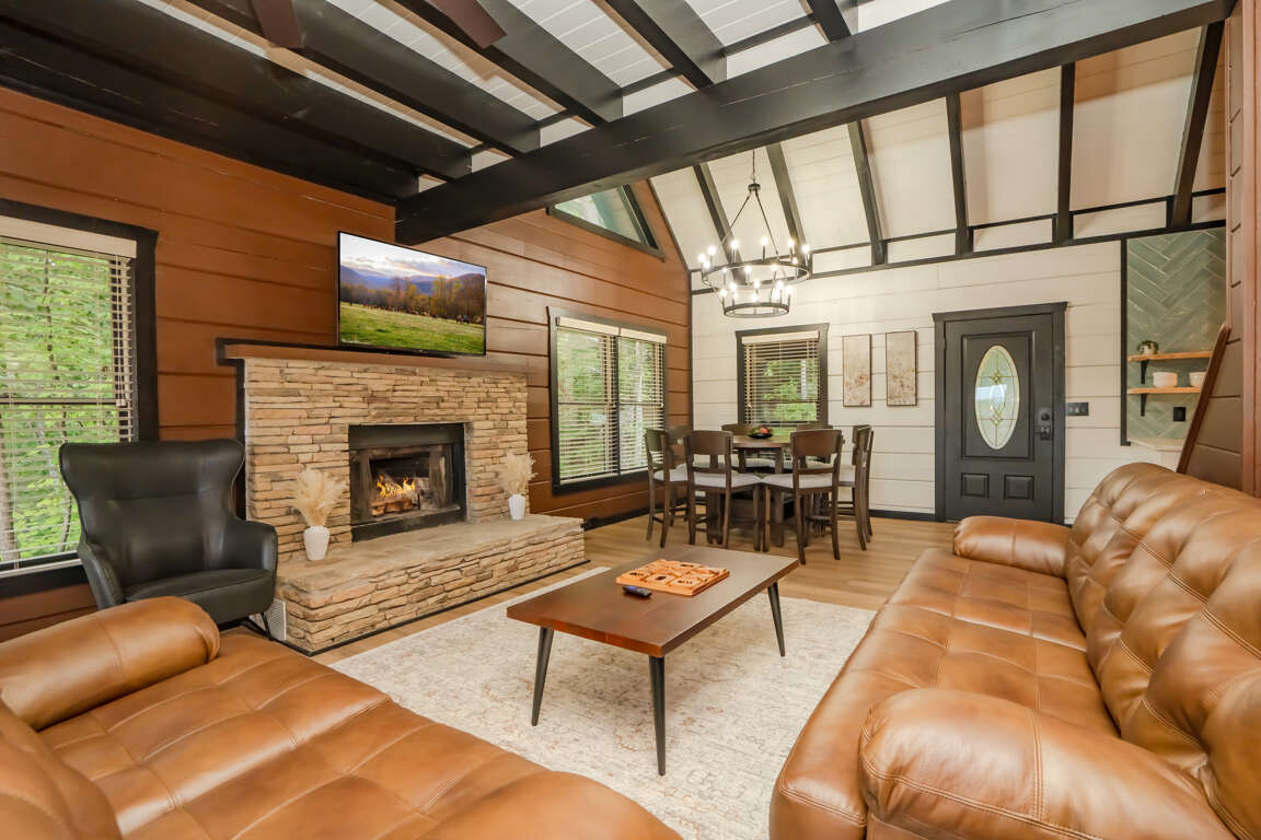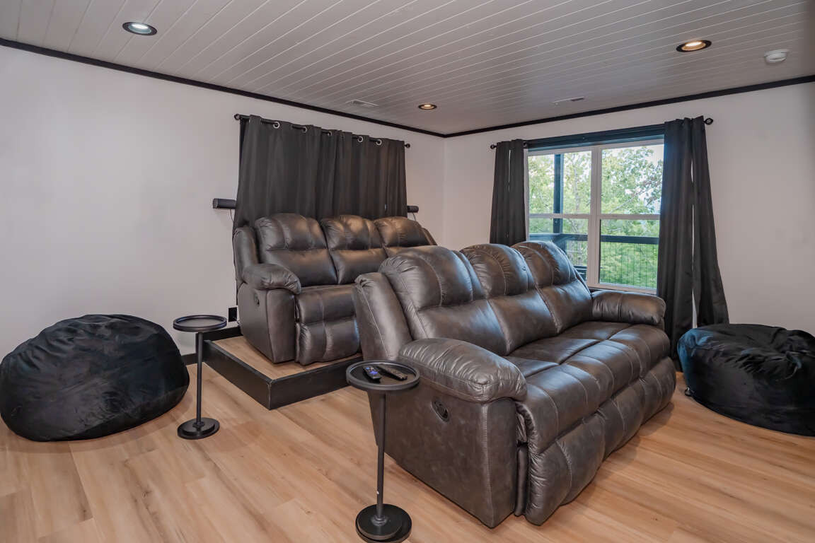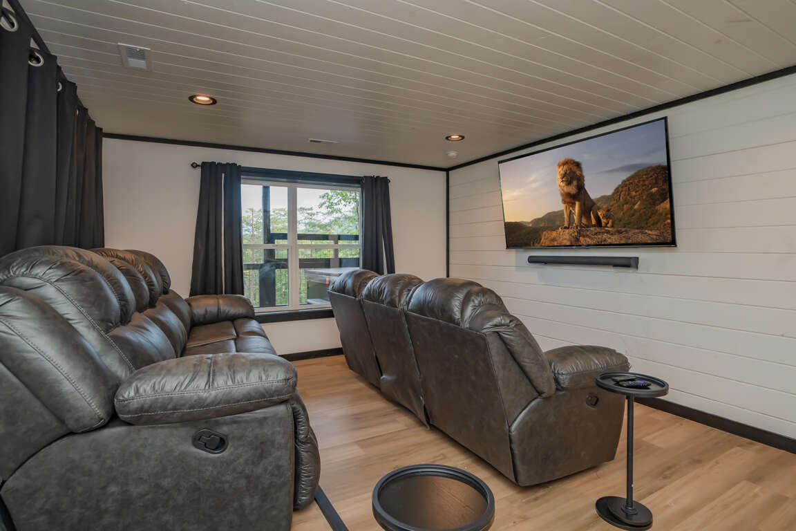 Spectacular Views, Outdoor Pool, Wifi, Hot Tub, Theater, Game Room, Fire Pit, Semi-Secluded Welcome to Mountaintop Island Views! This 3-story, 2400 sqft, 2-bedroom, 3 bath cabin is just minutes from Pigeon Forge and Dollywood. It features easy access into the cabin, parking for 4 vehicles, and upscale amenities including an outdoor heated, seasonal pool, theater room, game room, laundry, hot tub, fire pit, Wifi, spacious decks and incredible views of the mountains and The Island in Pigeon Forge. The private, seasonal outdoor pool will be open between mid-May and mid-September Main Level: The main level includes a living room, kitchen, dining area, 1 bedroom, 1 bathrooms and access to the covered deck. The living room has leather seating, an electric fireplace, Smart HDTV, and access to the deck. The kitchen is fully equipped and features granite countertops and stainless steel appliances. The dining table seats 7 and there is a bar table with 3 stools for extra seating. The deck features a picnic table for outdoor dining and stunning views. Upper Level: The upper level features a sitting area, 1 bedroom, 1 bathroom and access to the deck. The sitting area features comfortable leather seating, including a sleeper sofa and a HDTV. The bedroom features a king bed, HDTV, access to the deck and a private full bathroom with soaker tub and tiled walk-in shower. The deck on the upper level offers a gas fire pit with seating and amazing views. Lower Level: The lower level features a theater room, game room, laundry, 1 full bathroom and access to the deck with hot tub and outdoor pool. The theater room includes a Smart HDTV and comfortable seating. The game room features a pool table, air hockey, skeeball game and access to the deck. There is also a full bath with walk-in shower and a washer/dryer for your convenience. Step out onto the deck and relax in the soothing hot tub while enjoying the views, or take a few more steps to the large heated seasonal outdoor pool, with seating and more beautiful views! The outdoor pool is available between mid-May and mid-September. Guests are provided with a complimentary Luxury Pass, offering a free ticket daily to several of the area’s most popular attractions. See under AREA INFO for more details, rules, & restrictions. Be sure to explore other nearby attractions including Ober Gatlinburg, The Arts & Crafts Community in Gatlinburg, Anakeesta Gatlinburg, Dollywood, Splash Country, and The Island!