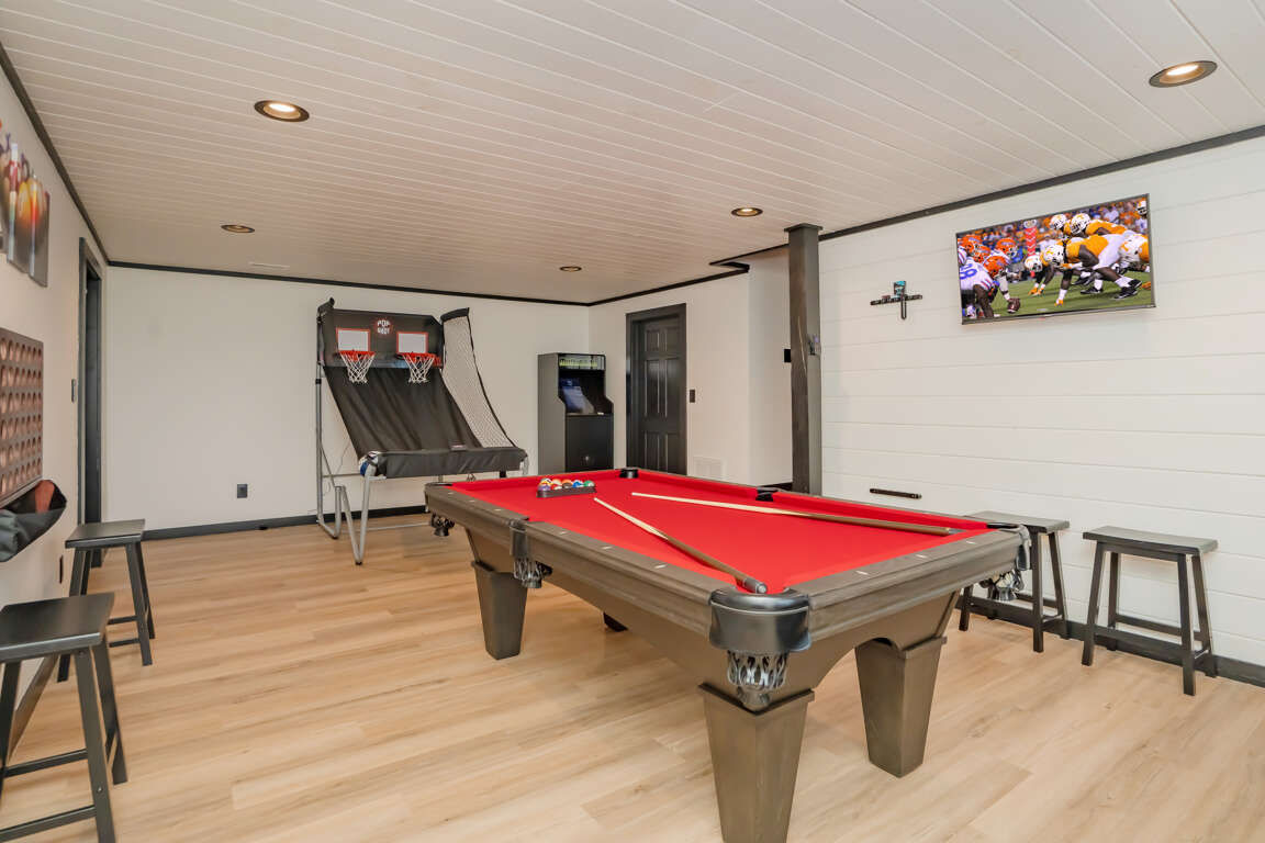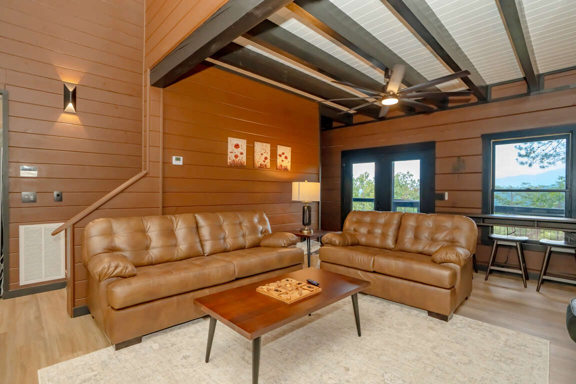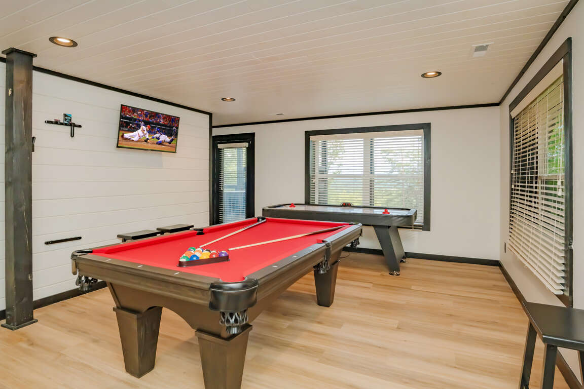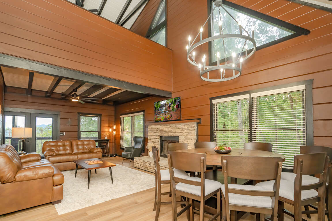 Spectacular Views, Outdoor Pool, Wifi, Hot Tub, Theater, Game Room, Fire Pit, Semi-Secluded Welcome to Mountaintop Island Views! This 3-story, 2400 sqft, 2-bedroom, 3 bath cabin is just minutes from Pigeon Forge and Dollywood. It features easy access into the cabin, parking for 4 vehicles, and upscale amenities including an outdoor heated, seasonal pool, theater room, game room, laundry, hot tub, fire pit, Wifi, spacious decks and incredible views of the mountains and The Island in Pigeon Forge. The private, seasonal outdoor pool will be open between mid-May and mid-September Main Level: The main level includes a living room, kitchen, dining area, 1 bedroom, 1 bathrooms and access to the covered deck. The living room has leather seating, an electric fireplace, Smart HDTV, and access to the deck. The kitchen is fully equipped and features granite countertops and stainless steel appliances. The dining table seats 7 and there is a bar table with 3 stools for extra seating. The deck features a picnic table for outdoor dining and stunning views. Upper Level: The upper level features a sitting area, 1 bedroom, 1 bathroom and access to the deck. The sitting area features comfortable leather seating, including a sleeper sofa and a HDTV. The bedroom features a king bed, HDTV, access to the deck and a private full bathroom with soaker tub and tiled walk-in shower. The deck on the upper level offers a gas fire pit with seating and amazing views. Lower Level: The lower level features a theater room, game room, laundry, 1 full bathroom and access to the deck with hot tub and outdoor pool. The theater room includes a Smart HDTV and comfortable seating. The game room features a pool table, air hockey, skeeball game and access to the deck. There is also a full bath with walk-in shower and a washer/dryer for your convenience. Step out onto the deck and relax in the soothing hot tub while enjoying the views, or take a few more steps to the large heated seasonal outdoor pool, with seating and more beautiful views! The outdoor pool is available between mid-May and mid-September. Guests are provided with a complimentary Luxury Pass, offering a free ticket daily to several of the area’s most popular attractions. See under AREA INFO for more details, rules, & restrictions. Be sure to explore other nearby attractions including Ober Gatlinburg, The Arts & Crafts Community in Gatlinburg, Anakeesta Gatlinburg, Dollywood, Splash Country, and The Island!