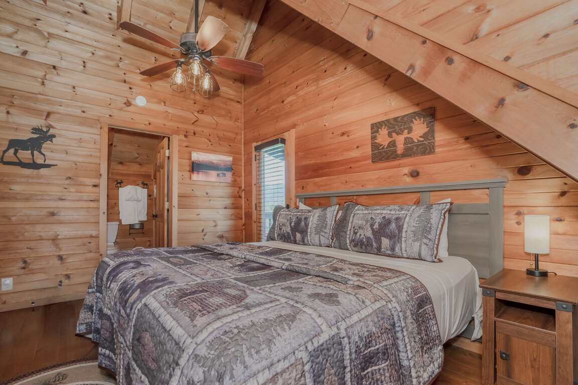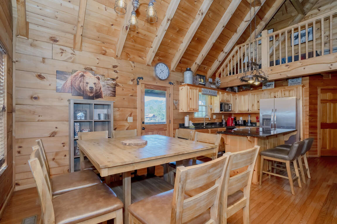 Mountain View, Pet-Friendly, Hot Tub, Wifi, Game Room, Movie Room, Yard with Fire Pit. Welcome to Mulbeary Mountain Cabin! This beautiful 2,500 sqft, 3-bedroom, 3-bath cabin is sure to become your new favorite home away from home! Boasting Mountain Views and located in a pristine neighborhood in Wears Valley, Mulbeary Mountain Cabin is just a few miles from Pigeon Forge and Gatlinburg! This 3-story log cabin features 3 king size bedrooms, each with en-suite bathrooms, a spacious open plan living area, a game room, movie area, bunk room, covered decks with hot tub, mountain views, Wi-Fi throughout the cabin, and more. It’s an easy drive to the cabin with paved roads and the parking area allows for 3 vehicles. Main Level: On the main level, the Living area offers plush furniture where you can relax in front of the gas fireplace or catch your favorite movie on the large screen HDTV! Step into the kitchen and create a culinary masterpiece in this well-equipped, beautiful kitchen, furnished with stainless steel appliances and all the cookware and tableware you need to make your meal preparation a breeze! The dining table seats 6 and the kitchen bar provides seating for 3 more. The bedroom on the main level features a king bed, large flat-screen HDTV and en-suite bathroom. Step out onto the deck to prepare a meal on the gas grill or relax in the rockers while enjoying the mountain views. Upper Level: The upper level features a private sitting area with sleeper sofa, a bedroom with a king bed, large flat-screen HDTV, private balcony and en-suite bathroom, a table top arcade game and a beautiful catwalk-bridge from where you can look down onto the main level. Lower Level: The lower level offers a large game area with pool table, a movie room and bunk room with 2 twin-over-full bunks. The bedroom on the lower level features a king bed, large flat-screen HDTV and an en-suite bathroom. The covered deck on the lower level offers rockers and a soothing hot tub where you relax and enjoy the views. Guests are provided with a complimentary Luxury Pass, offering a free ticket daily to several of the area’s most popular attractions. See under AREA INFO for more details, rules, & restrictions. Be sure to explore other nearby attractions including Ober Gatlinburg, The Arts & Crafts Community in Gatlinburg, Anakeesta Gatlinburg, Dollywood, Splash Country, and The Island!