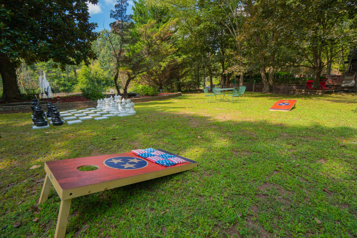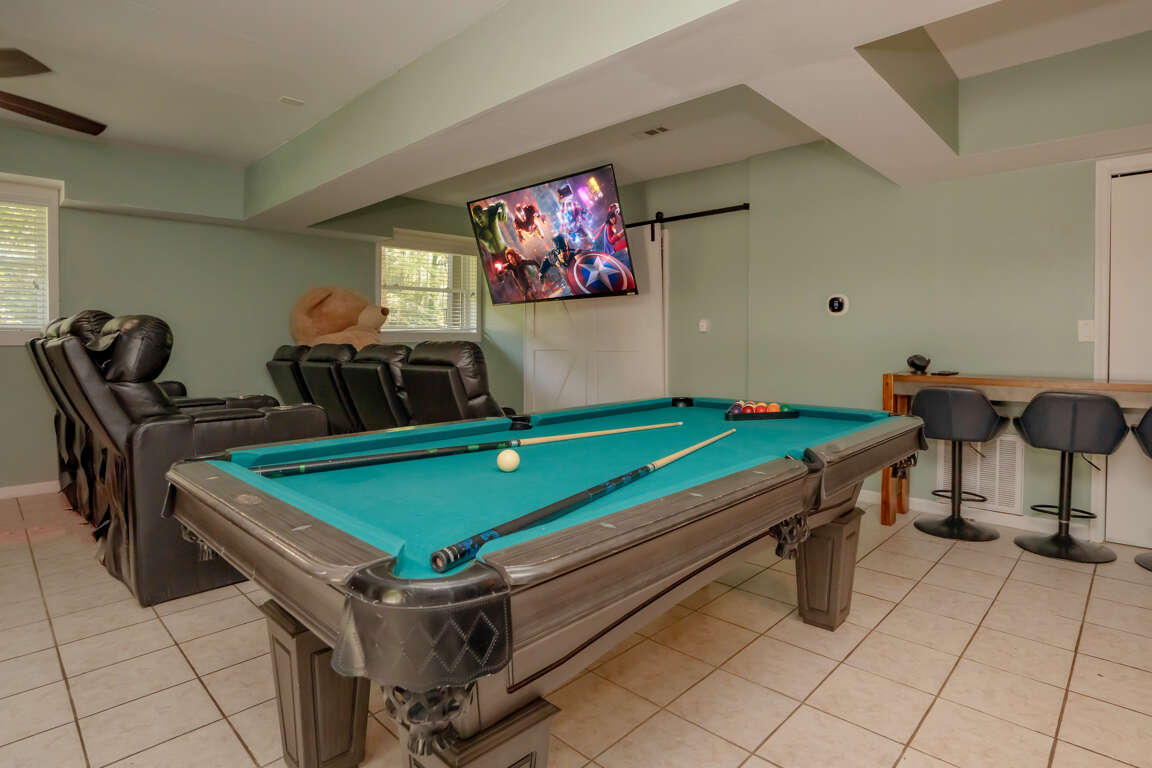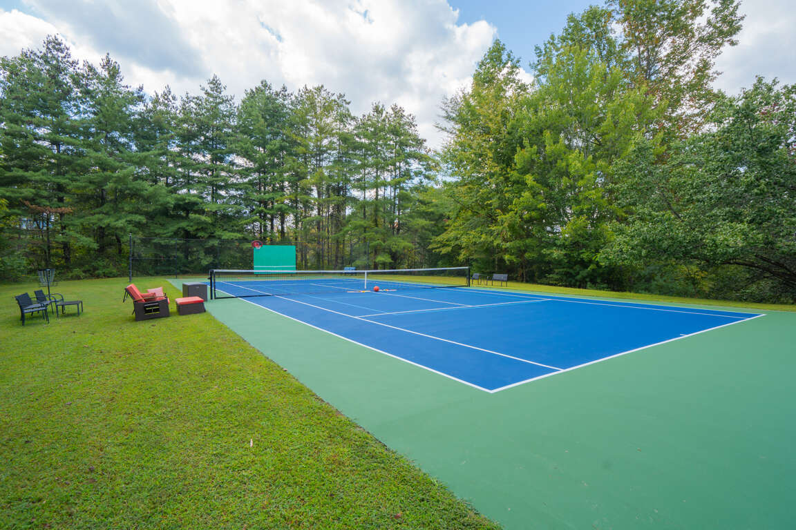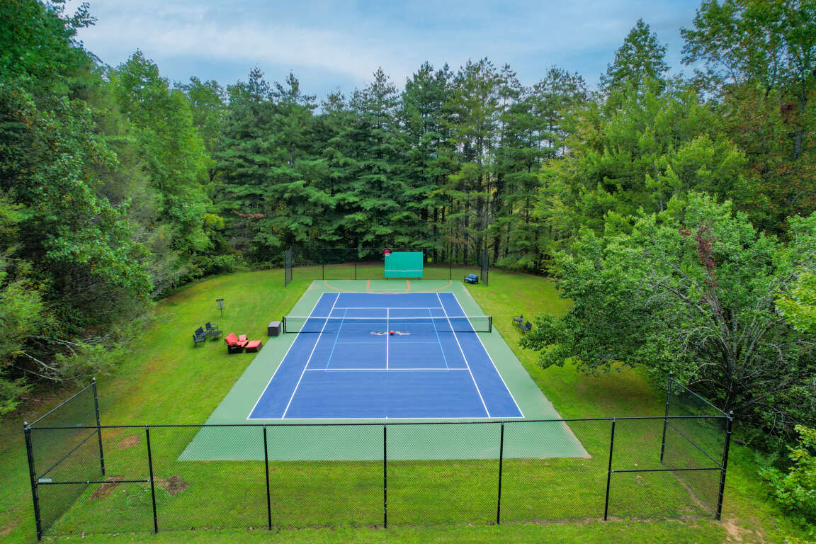 Private Lake/Water View, Secluded, Hot Tub, Wifi, Theater, Games, EV Charger, Fire Pit, Community Pool, Large Estate with Lake on 27 acres, Paddle Boat, Frisbee Golf, Tennis, Pickle Ball, Basketball and more… Welcome to The Manor @ Smoky Mountains Estate! This amazing estate offers a manor house with 5 bedrooms, 4 bathrooms, wifi, theater room, game room, large outdoor areas with seating, hot tub, an EV Charger and expansive estate grounds sitting on 27 acres of private property and featuring a multitude of amenities! The estate grounds feature a large lake where you have the use of a paddle boat. You can even feed the fish while taking a stroll on the trail around the lake or enjoy a bit of catch-and-release - (bring your own fishing gear) There are many activities available around the estate, including a tennis court that can also be used for pickle ball and basket ball, frisbee golf, garden chess, corn hole game, outdoor ten pin bowling, a sandbox for the kids and vast areas to take a walk or go for a run in your very own secluded, private space. The estate is located in the beautiful gated Shagbark Resort, just a few miles from all the attractions and the National Park. Shagbark Resort offers a Seasonal Community Pool, Tennis Court, Basketball Court, a Dog Park and more... The Manor House: Main Level: The main level features the living room, kitchen, dining, 1 bedroom (sunroom) and access to the outdoor patios and estate grounds. The living room offers comfortable seating, HDTV, a 2-sided gas fireplace and large windows overlooking the estate grounds. The kitchen is fully equipped with stainless steel appliances and offers seating for 5 at the counter. The dining room table seats 8 and there are 2 bar tables, each offering 3 seats. The "sunroom" bedroom on this level is located just off the kitchen and has access to the outdoor patio area. The outdoor area can be access through the front door, dining room and the bedroom. Stepping out back through the dining room, you will find tables with seating, a gas grill and a soothing hot tub under the trees. To the side of the house there are more tables and chairs, a gas fire pit and string lights, making this area ideal for evening dining. Upper Level: The upper level features 3 bedrooms, 3 full bathrooms and the laundry closet. The 1st bedroom (to the left) offers a king bed, sleeper sofa, HDTV and a private full bathroom with shower. The 2nd bedroom offers a king bed, HDTV and shares the hall bathroom with shower. The 3rd bedroom is a master suite with king bed, futon, HDTV, access to private balcony with seating and views of the estate and a private full bath with walk-in shower and a roman soaker tub. The laundry closet is located in the hallway as you come up the stairs. Lower Level: The lower level features a home theater, game room, 1 enclosed bedroom, a full bathroom, a bunk sleeping area, and access to a patio. The home theater features 8 powered reclining leather chairs, a large HDTV and streaming service. The game room offers 2 racing arcade games, pool table, fridge, bar tables with seating for 6. The bedroom features a queen bed, twin-over-full bunk and a private full bath with shower. The bunk sleeping area has 2 bedroom arrangements: - The 1st has 2 triple twin bunks with access to the patio area with seating. - The 2nd has a queen bunk and a triple twin bunk. The patio area offers seating and access to the rest of the estate grounds. Estate Activities: - 27 acres of private estate grounds and no neighbors in sight. - Tennis court / basketball court/ pickle ball court - Frisby Golf - Frisby supplied - Large 20ft x 10ft sandbox for kids - Outdoor Connect 4 game - Corn Hole Lake/pond: - Paddle boat for 2 people - Catch and release only. Bring your own gear. - Walk-way around the lake/pond Other side of house: - Seating from kitchen area around to side of house with string lights - Hot tub at the back. - Access to area over garages. Guests are provided with a complimentary Luxury Pass, offering a free ticket daily to several of the area’s most popular attractions. See under AREA INFO for more details, rules, & restrictions. Be sure to explore other nearby attractions including Ober Gatlinburg, The Arts & Crafts Community in Gatlinburg, Anakeesta Gatlinburg, Dollywood, Splash Country, and The Island!