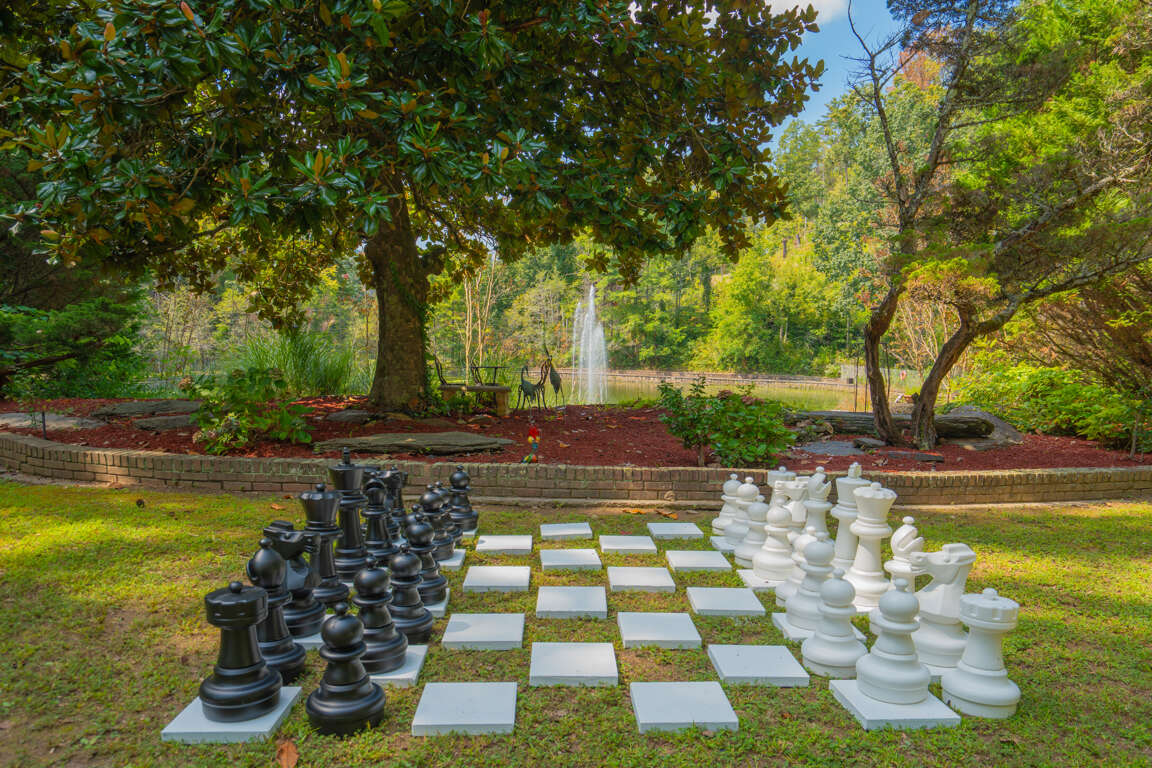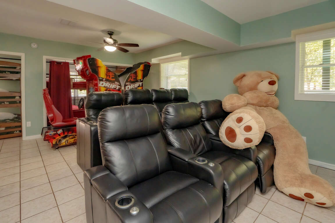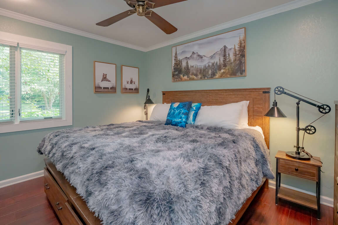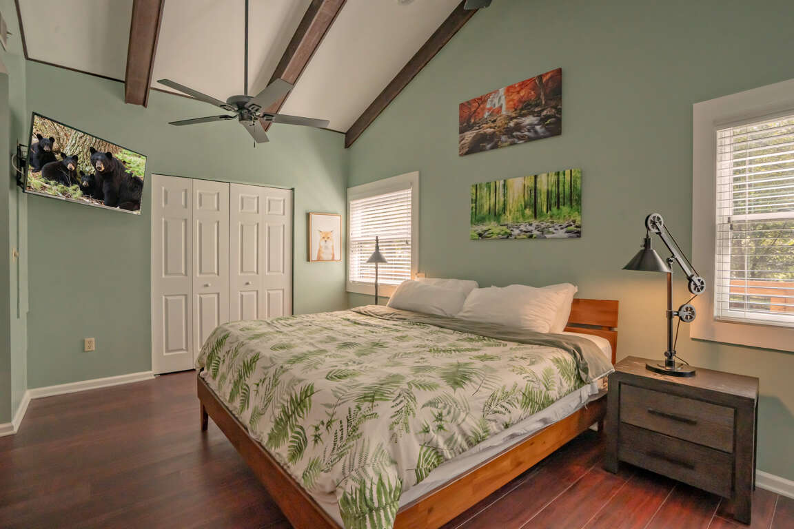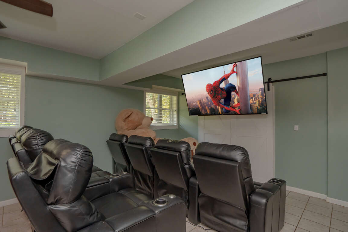 Private Lake/Water View, Secluded, Hot Tub, Wifi, Theater, Games, EV Charger, Fire Pit, Community Pool, Large Estate with Lake on 27 acres, Paddle Boat, Frisbee Golf, Tennis, Pickle Ball, Basketball and more… Welcome to The Manor @ Smoky Mountains Estate! This amazing estate offers a manor house with 5 bedrooms, 4 bathrooms, wifi, theater room, game room, large outdoor areas with seating, hot tub, an EV Charger and expansive estate grounds sitting on 27 acres of private property and featuring a multitude of amenities! The estate grounds feature a large lake where you have the use of a paddle boat. You can even feed the fish while taking a stroll on the trail around the lake or enjoy a bit of catch-and-release - (bring your own fishing gear) There are many activities available around the estate, including a tennis court that can also be used for pickle ball and basket ball, frisbee golf, garden chess, corn hole game, outdoor ten pin bowling, a sandbox for the kids and vast areas to take a walk or go for a run in your very own secluded, private space. The estate is located in the beautiful gated Shagbark Resort, just a few miles from all the attractions and the National Park. Shagbark Resort offers a Seasonal Community Pool, Tennis Court, Basketball Court, a Dog Park and more... The Manor House: Main Level: The main level features the living room, kitchen, dining, 1 bedroom (sunroom) and access to the outdoor patios and estate grounds. The living room offers comfortable seating, HDTV, a 2-sided gas fireplace and large windows overlooking the estate grounds. The kitchen is fully equipped with stainless steel appliances and offers seating for 5 at the counter. The dining room table seats 8 and there are 2 bar tables, each offering 3 seats. The "sunroom" bedroom on this level is located just off the kitchen and has access to the outdoor patio area. The outdoor area can be access through the front door, dining room and the bedroom. Stepping out back through the dining room, you will find tables with seating, a gas grill and a soothing hot tub under the trees. To the side of the house there are more tables and chairs, a gas fire pit and string lights, making this area ideal for evening dining. Upper Level: The upper level features 3 bedrooms, 3 full bathrooms and the laundry closet. The 1st bedroom (to the left) offers a king bed, sleeper sofa, HDTV and a private full bathroom with shower. The 2nd bedroom offers a king bed, HDTV and shares the hall bathroom with shower. The 3rd bedroom is a master suite with king bed, futon, HDTV, access to private balcony with seating and views of the estate and a private full bath with walk-in shower and a roman soaker tub. The laundry closet is located in the hallway as you come up the stairs. Lower Level: The lower level features a home theater, game room, 1 enclosed bedroom, a full bathroom, a bunk sleeping area, and access to a patio. The home theater features 8 powered reclining leather chairs, a large HDTV and streaming service. The game room offers 2 racing arcade games, pool table, fridge, bar tables with seating for 6. The bedroom features a queen bed, twin-over-full bunk and a private full bath with shower. The bunk sleeping area has 2 bedroom arrangements: - The 1st has 2 triple twin bunks with access to the patio area with seating. - The 2nd has a queen bunk and a triple twin bunk. The patio area offers seating and access to the rest of the estate grounds. Estate Activities: - 27 acres of private estate grounds and no neighbors in sight. - Tennis court / basketball court/ pickle ball court - Frisby Golf - Frisby supplied - Large 20ft x 10ft sandbox for kids - Outdoor Connect 4 game - Corn Hole Lake/pond: - Paddle boat for 2 people - Catch and release only. Bring your own gear. - Walk-way around the lake/pond Other side of house: - Seating from kitchen area around to side of house with string lights - Hot tub at the back. - Access to area over garages. Guests are provided with a complimentary Luxury Pass, offering a free ticket daily to several of the area’s most popular attractions. See under AREA INFO for more details, rules, & restrictions. Be sure to explore other nearby attractions including Ober Gatlinburg, The Arts & Crafts Community in Gatlinburg, Anakeesta Gatlinburg, Dollywood, Splash Country, and The Island!