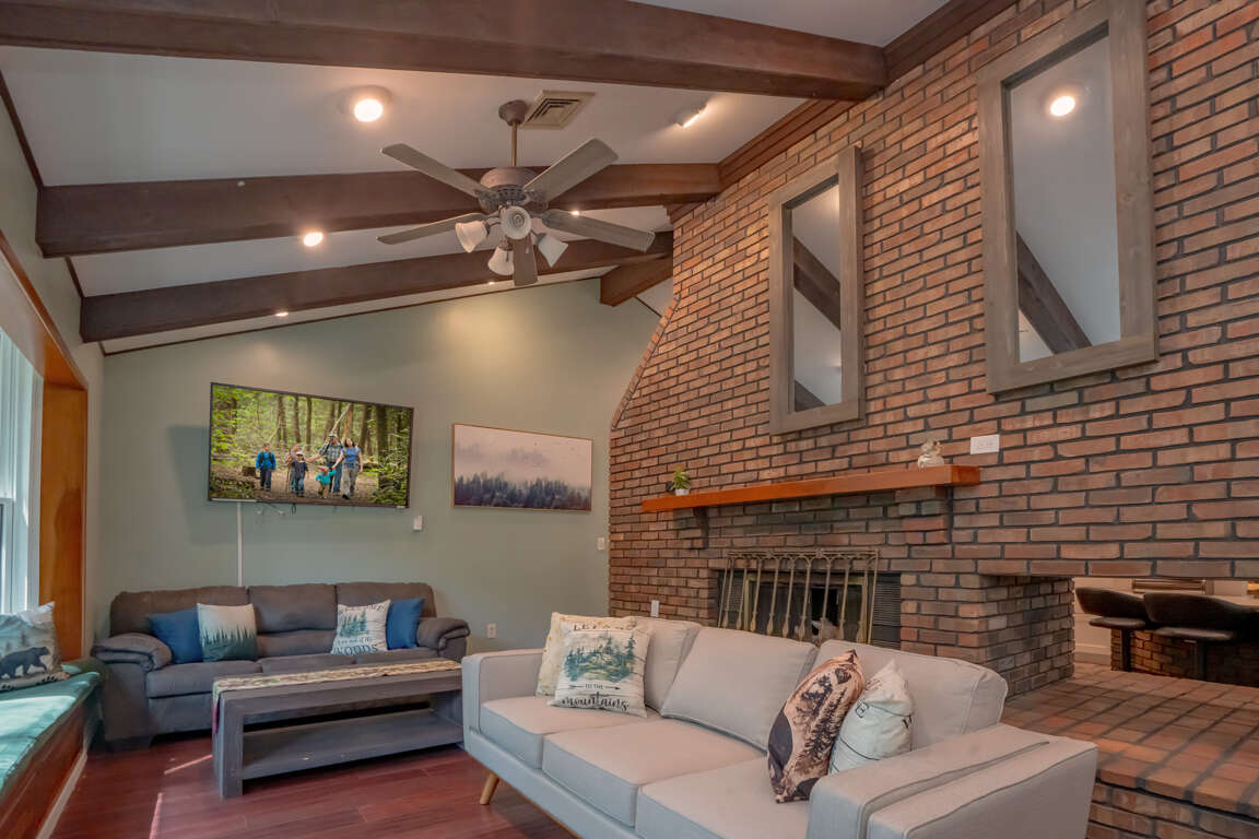 Replete with all comforts, The Manor @ Smoky Mountains Estate hosts 5 spacious bedrooms. Amenities include a fireplace and grill, ensuring a memorable stay.