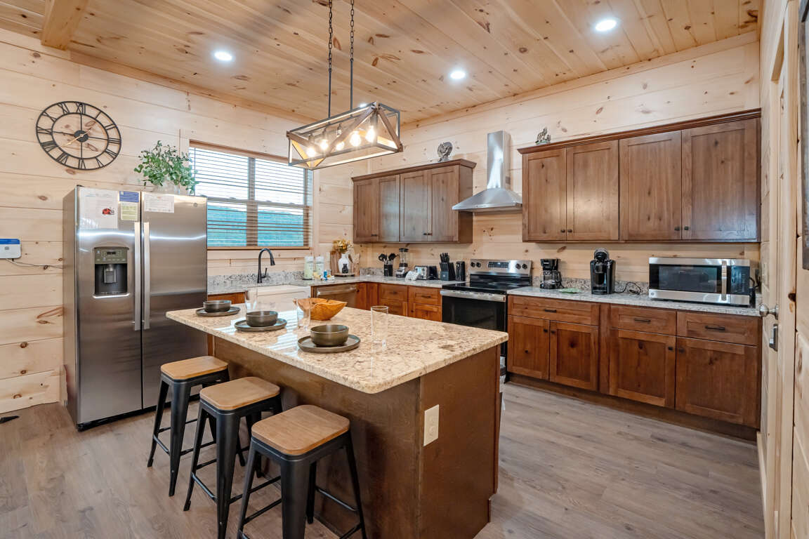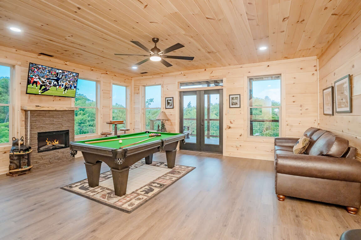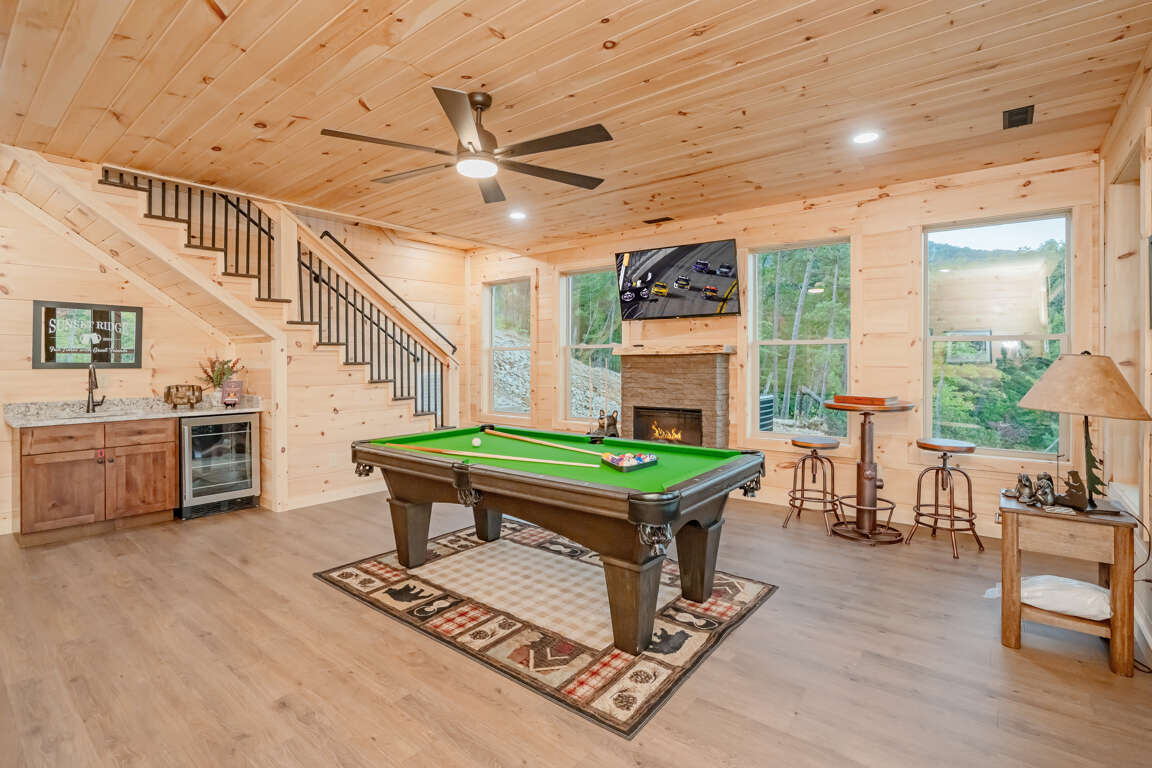 Mountain Views, Secluded, Game Room, Hot Tub, Wifi, Yard with Fire Pit and more... Welcome to Sunset Ridge, a charming mountain retreat where comfort meets adventure. This beautiful 2-story, 3-bedroom, 3-bathroom cabin offers the perfect blend of relaxation and entertainment. Unwind in the inviting hot tub, gather around the outdoor fire pit under the stars, or challenge your friends and family to some friendly competition in the game room. With parking for up to 4 vehicles and all the modern amenities you need, Sunset Ridge is your ideal getaway for creating lasting memories in the Smoky Mountains. Main Level: The main level of this cabin features a Front Porch, Living Room, Kitchen, 1 Bedroom, 1 Full Bathroom, the Laundry and a Deck. The Living Room features comfortable seating, including a sleeper sofa, HDTV, an electric fireplace and deck access. The Kitchen offers stainless steel appliances with granite counters, island seating for 3 and a table for 6. You will also find the Laundry Closet on this level. The Bedroom offers a king sized bed, HDTV and easy access to the full bathroom. The Full Bathroom is shared and offers a step in tiled shower as well as a soaking tub. A charcoal grill is located just off the front porch. The covered deck offers comfortable seating, outdoor dining table and chairs, and stunning mountain views. Lower Level: The lower level of this cabin features an entertainment/game room, 2 bedrooms, 2 bathrooms and access to the deck. There is also a yard with a fire pit. The entertainment room features an electric fireplace, HDTV, Pool Table, sleeper sofa, arcade games, a wet bar and access to the deck. The 1st Bedroom offers a king sized bed, HDTV and a full bathroom with a stall shower. The 2nd Bedroom offers a king bed, HDTV and shares a full bathroom with a double vanity a tiled shower. The deck offers seating and a soothing hot tub. Step out into the yard and gather around the inviting wood-burning fire pit while enjoying the beautiful sunset views... Guests are provided with a complimentary Luxury Pass, offering a free ticket daily to several of the area’s most popular attractions. See under AREA INFO for more details, rules, & restrictions. Be sure to explore other nearby attractions including Ober Gatlinburg, The Arts & Crafts Community in Gatlinburg, Anakeesta Gatlinburg, Dollywood, Splash Country, and The Island!