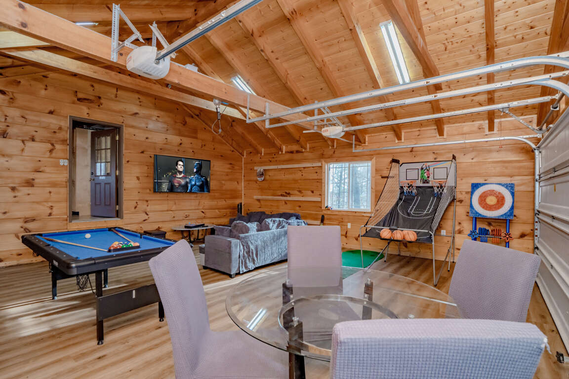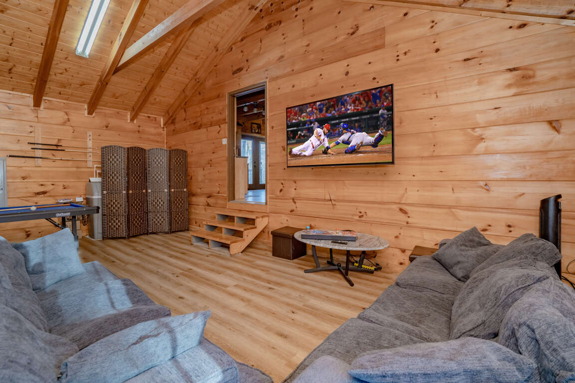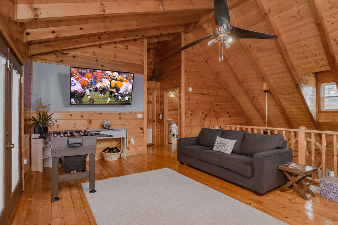 PartMtnView, S/Secluded, Hot Tub, Wifi, Games, Yard, Fire Pit, near Attractions! Welcome to Stargazing Central! This beautiful 2-story, 1,600 sqft, 3 bedroom, 2.5 bath cabin sleeps 12 and is the perfect place to base your getaway. There is parking for 2 vehicles, easy entry into the cabin, Wifi, covered deck and a spacious yard with hot tub and a fire pit area where guest can gather! The cabin is located just minutes from action-packed Pigeon Forge, Dollywood and the National Park! Main Level: The entry level features the living room, kitchen, dining, 1 bedroom, 1 full bath, 1 half bath, laundry, a game room, and access to the deck and yard. The living room offers comfortable furniture, including a sleeper sofa, a stacked-stone wood-burning fireplace, large HDTV and access to the deck. The kitchen is fully equipped and the dining area offers plenty of seating where guests can enjoy a great meal. Just off the kitchen, there is a half bath and also a washer/dryer for your convenience. The bedroom on this level offers a queen bed, HDTV and a private, full bath with tub/shower. The game room offers a lounge area and a variety of games. The lounge area features comfortable couch seating and a large HDTV. Guests will be entertained for hours, enjoying the pool table, skeeball game, mini putt-putt, cards table and corn-hole game. Step out onto the front deck and relax in one of the chairs while enjoying the sounds of nature. Out in the backyard, gather around the fire pit or relax in the soothing hot tub. Upper Level: The upper level features a large, open loft area, 2 bedrooms and a full bathroom. The open loft offers a sitting area with 2 sleeper sofas, HDTV and a foosball game for added entertainment. The 1st bedroom on this level features 2 full beds. The 2nd bedroom flows from the 1st bedroom and offers a twin bunk bed. The full bathroom features a tub/shower. Guests are provided with a complimentary Luxury Pass, offering a free ticket daily to several of the area’s most popular attractions. See under AREA INFO for more details, rules, & restrictions. Be sure to explore other nearby attractions including Ober Gatlinburg, The Arts & Crafts Community in Gatlinburg, Anakeesta Gatlinburg, Dollywood, Splash Country, and The Island!