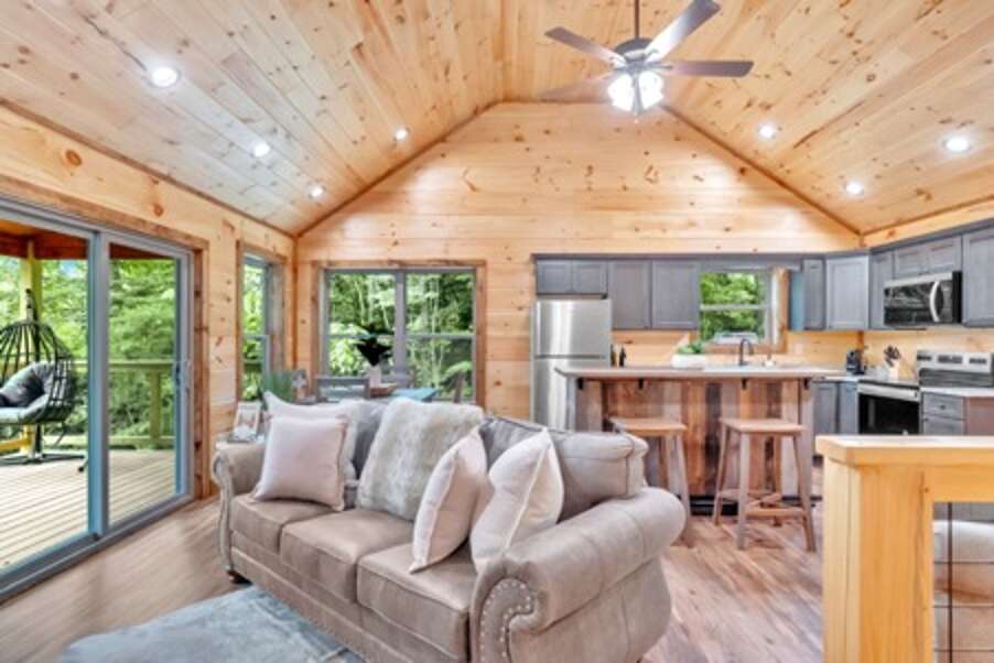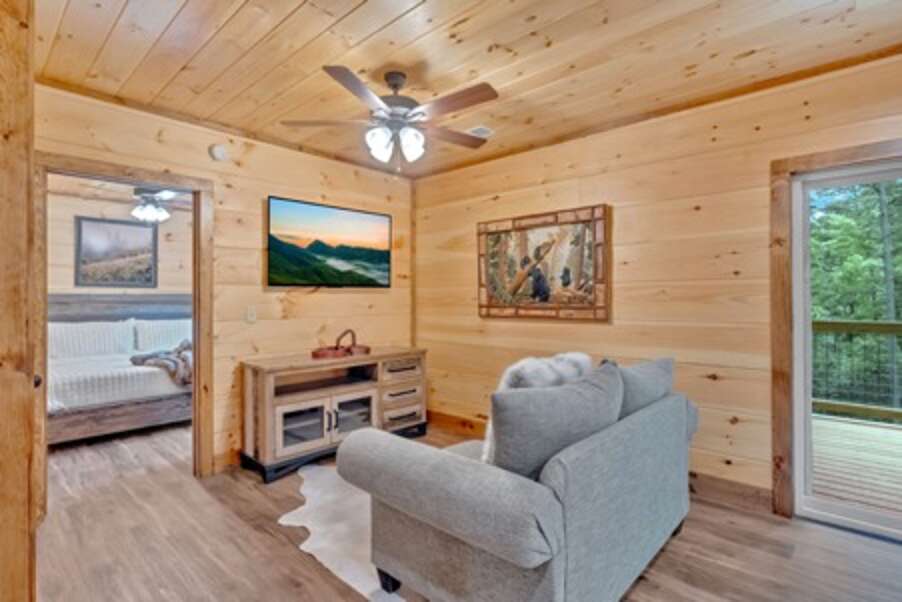 Mtn Views, Secluded, Hot Tub, Wifi, Games and more... Sneaky Bear is a newly built, 2-story, luxurious 2 bedroom, 2 bathroom cabin with beautiful views of the Smokies. This cozy yet elegant retreat spans approximately 1,500 sq ft and is perfectly suited for couples or solo travelers seeking a peaceful mountain escape. The cabin is located near Dollywood and offers spectacular views, hot tub, Wifi, parking for 2 vehicles and easy access into the cabin. Main Level: The main level of this cabin features the Kitchen, Living Room, 1 Bedroom, 1 Full Bathroom, the laundry closet and access to the deck. The Kitchen is fully equipped and offers granite counters and stainless steel appliances and seating for 2 at the counter. The ding table seats 4. The Living Room features a comfortable sleeper sofa couch, HDTV and access to the deck. The bedroom on this level offers a King bed, HDTV and access to the full bathroom. The bathroom features a double vanity and step-in tiled shower. A charcoal grill is located just off the front porch for your convenience. Step out onto the deck where you will find seating and views for days! Lower Level: The lower level of this cabin features a loft bedroom with a Twin-over-Queen bunk bed, a half bathroom, HDTV and breathtaking views through the large windows. Step out onto the deck and relax in the soothing hot tub, or enjoy the views from the hanging chair... Guests are provided with a complimentary Luxury Pass, offering a free ticket daily to several of the area’s most popular attractions. See under AREA INFO for more details, rules, & restrictions. Be sure to explore other nearby attractions including Ober Gatlinburg, The Arts & Crafts Community in Gatlinburg, Anakeesta Gatlinburg, Dollywood, Splash Country, and The Island!