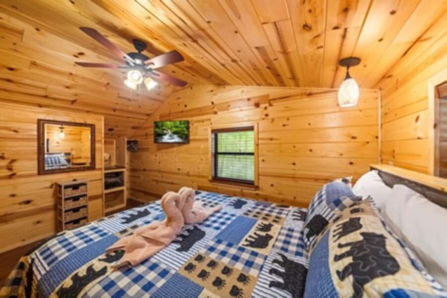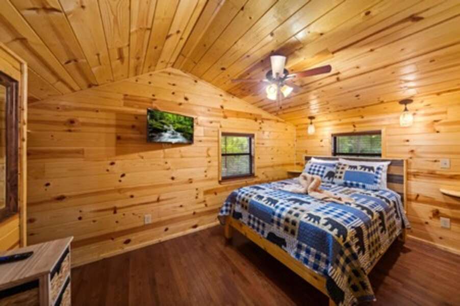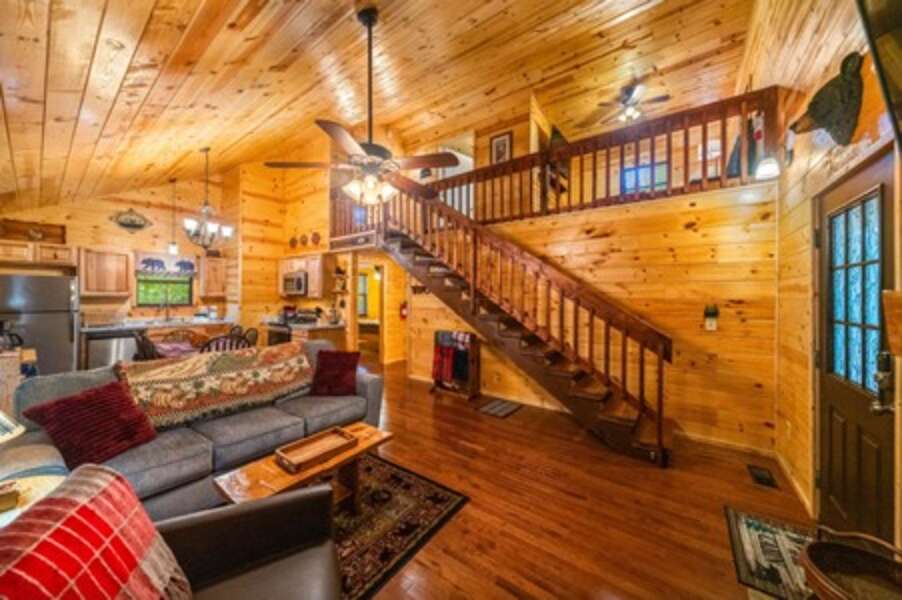 Part/Mtn View, Hot Tub, Wifi, Games, Fire Pit, Yard, S/Secluded, near Dollywood Welcome to Dogwood Hideaway! This beautiful 1,200 sqft, 3-bedroom, 2-bath cabin is sure to become your new favorite home away from home! Boasting Partial Mountain Views, semi-seclusion and located close to Dollywood and just a few miles from Gatlinburg and the National Park. This semi-secluded, 2-story cabin also features a spacious open plan living area, a game room, covered, screened-in decks with hot tub, Wi-Fi throughout the cabin, games, a gas fire pit, large yard and more. It’s an easy drive to the cabin with paved roads and the parking area allows for 3 vehicles. Main Level: The main level features the living room, Kitchen, dining, 2 bedrooms, 1 bathroom, laundry and access to the deck. The living area offers plush furniture where you can relax in front of the electric fireplace or catch your favorite movie on the large screen HDTV! Step into the kitchen and create a culinary masterpiece in this well-equipped, beautiful kitchen, furnished with stainless steel appliances and all the cookware and tableware you need to make your meal preparation a breeze! The dining table seats 6. The 1st bedroom features a queen bed, large flat-screen HDTV and shares the full bathroom. The 2nd bedroom offers a queen bed, large flat-screen HDTV and shares the full bathroom. The shared bathroom offers a large tiled shower. A washer & dryer is located on this level for your convenience. Step out onto the screened-in covered porch where you will find a soothing hot tub and rockers. Out onto the open deck, prepare a meal on the gas grill or relax in the comfortable patio furniture set around a cozy gas fire pit while enjoying the view. Upper Level: The upper level features an open loft area, 1 bedroom and 1 full bathroom. The open loft area features a sitting area with with a sofa and HDTV and an arcade game. The bedroom offers a queen bed, large flat-screen HDTV and en-suite bathroom with jetted tub and tiled shower. Guests are provided with a complimentary Luxury Pass, offering a free ticket daily to several of the area’s most popular attractions. See under AREA INFO for more details, rules, & restrictions. Be sure to explore other nearby attractions including Ober Gatlinburg, The Arts & Crafts Community in Gatlinburg, Anakeesta Gatlinburg, Dollywood, Splash Country, and The Island!