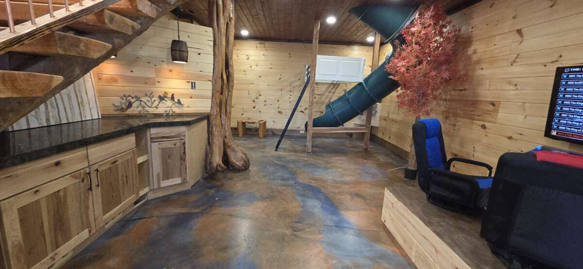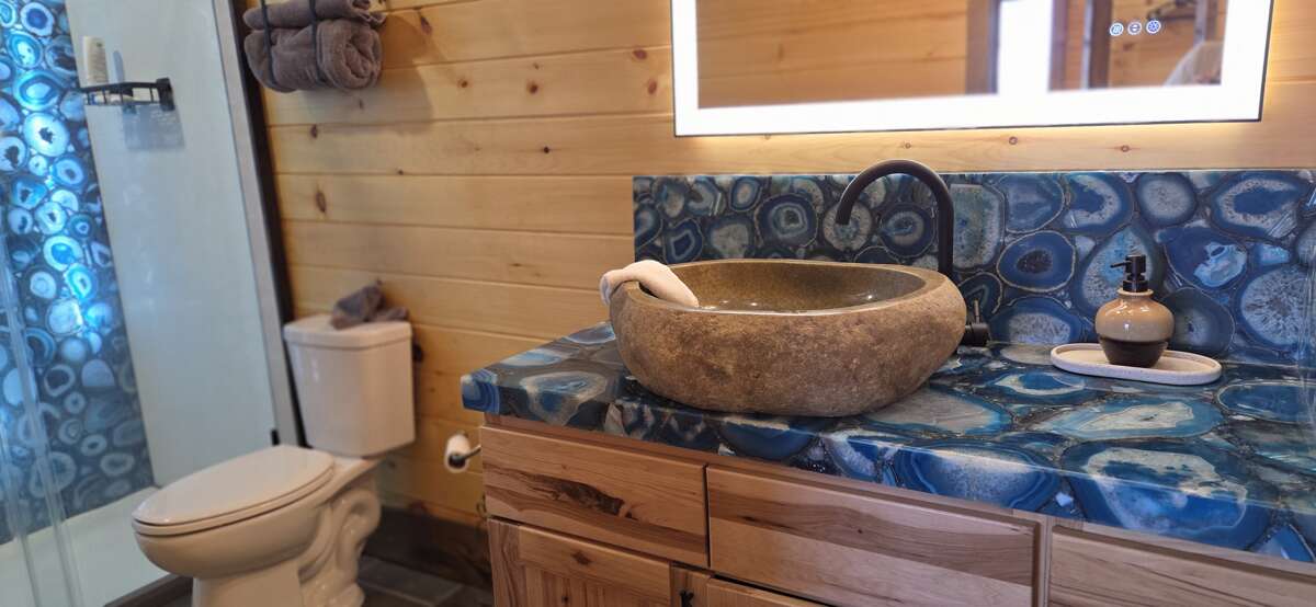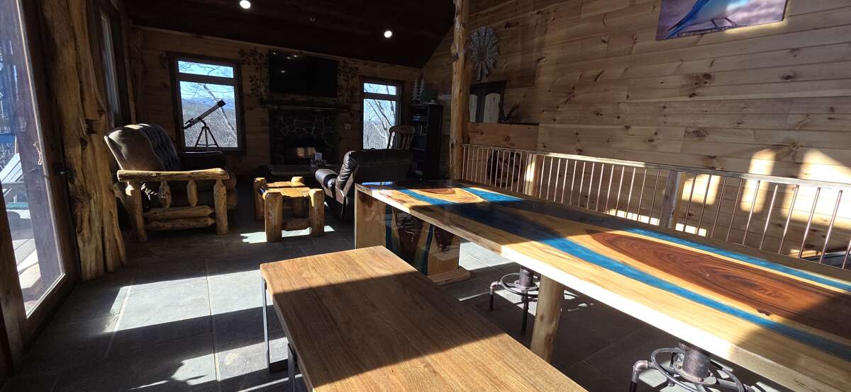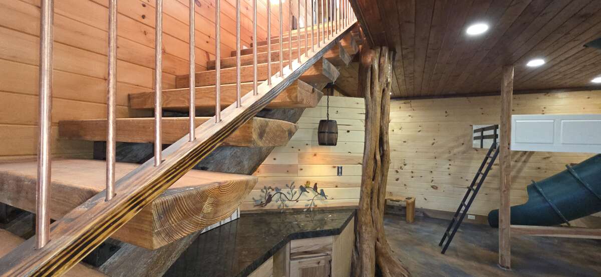 Mountain View, Hot Tub, Wifi, Secluded, Game Room, Theater, Fire pit, Spacious Yard Welcome to Birds Perch Bluebird! This 3 bedroom plus bunk-room area, 3 bath, log cabin sleeps 12 and is located between Pigeon Forge and Gatlinburg, close to the National Park and Dollywood. This secluded 2-story, Pet-Friendly cabin features great amenities, including Wifi, hot tub, game room, theater, EV Charger (dual connections: Tesla and J1772), amazing 270 degrees Mountain Views, a large yard with fire pit & outdoor games, parking for up to 10 vehicles, and easy access into the cabin. You will soon notice all the fine detail throughout this beautiful cabin. Main Level: The entry level of the cabin features the living room, kitchen, dining, 2 bedroom, 2 bathroom, laundry, and access to the yard. The living room features comfortable seating, including a futon, large HDTV an electric fireplace and access tot the deck. The kitchen is fully equipped with stainless steel appliances and granite counter tops. The over-sized, custom-built dining table seats everyone comfortably. Under the kitchen counter, a big surprise awaits the kids with the tube-slide going down to the lower level bunk/game area! The 1st bedroom features a king bed, HDTV and a full bathroom with custom walk-in shower. The 2nd bedroom also features a king bed, HDTV and a full bathroom with custom walk-in shower. From the living room, step out onto the spacious, covered deck with seating and a table where you can enjoy the incredible views. Just off the deck, in the parking area, is an EV Charger for electric vehicles with dual connections: Tesla and J1772..! Step out into the spacious yard and gather around the wood-burning fire pit with enough seating for the whole group. The charcoal grill is located nearby for your convenience. A walkway takes you down towards the lower level with hot tub and more... Lower Level: The lower level features a large game area, bunk beds, theater room, 1 bedroom, 1 full bathroom and access to the outdoor amenities. The large open area features the game room with a variety of games, including a 2-player arcade game, a Yatzy-dice game with life-sized dice, wall-mounted connect 4 game and a wall-mounted tick-tac-toe game. Just off the game area, and where the tube-slide exits into the room, there are 2 XL twin-over-twin bunkbeds, perfect for the kids. The theater room offers a large HDTV and custom seating. The bedroom on this level features a king bed, HDTV and shares the jack-n-jill full bathroom. The bathroom offers custom furnishings with a walk-in shower. Step outside and enjoy more outdoor amenities on offer. To the right, there is a walkway with a putt-putt green and a private deck with seating from where you can relax and enjoy the views. To the left, you will find the soothing hot tub where you can relax after a long fun-filled day in the Smokies. The walkway takes you up to the main level with fire pit area... Looking for additional accommodation for your group, check out the beautiful neighboring properties on this private peace of heaven: Birds Perch View (2 Bedrooms, Sleeps 8) and Birds Perch Hummingbird (2 Bedrooms, Sleeps 4) Guests are provided with a complimentary Luxury Pass, offering a free ticket daily to several of the area’s most popular attractions. See under AREA INFO for more details, rules, & restrictions. Be sure to explore other nearby attractions including Ober Gatlinburg, The Arts & Crafts Community in Gatlinburg, Anakeesta Gatlinburg, Dollywood, Splash Country, and The Island!