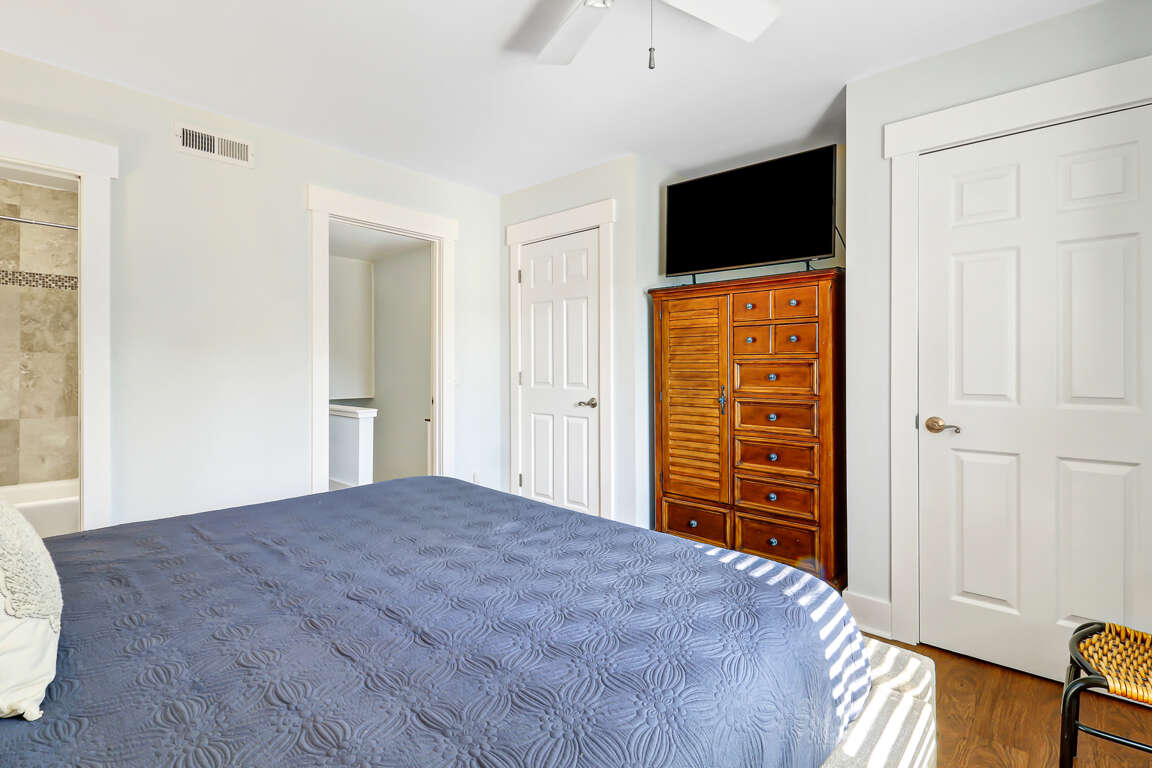With two bedrooms and two and a half bathrooms, the Hilton Head Cabana 48 provides ample space and comfort for up to six guests. The master bedroom features a king-size bed, a flat-screen TV, and a private bathroom. This luxurious retreat offers a relaxing haven for guests to unwind after a day of exploring the beautiful surroundings. The guest bedroom boasts two twin-size beds, a flat-screen TV, and its own private bathroom. Both bedrooms are located on the second floor, ensuring privacy and tranquility. The master bathroom features a shower/tub combination, perfect for a rejuvenating soak. The guest bathroom offers a walk-in shower stall, providing convenience and comfort. Every detail has been carefully considered to ensure a memorable and enjoyable stay.