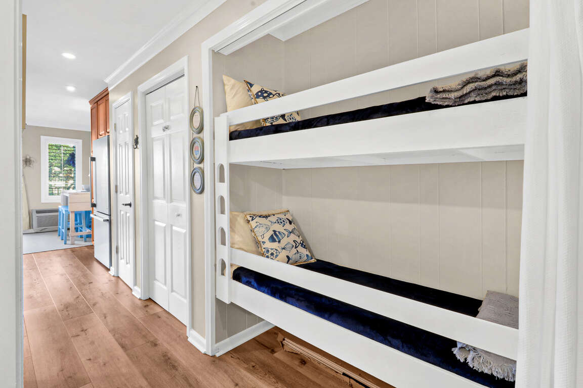 | Where Do We Sleep? | 1 Queen Bed, 2 Bunk Beds |