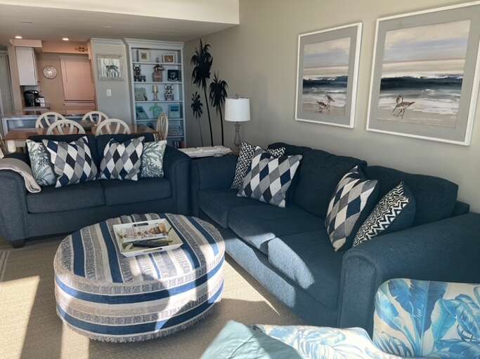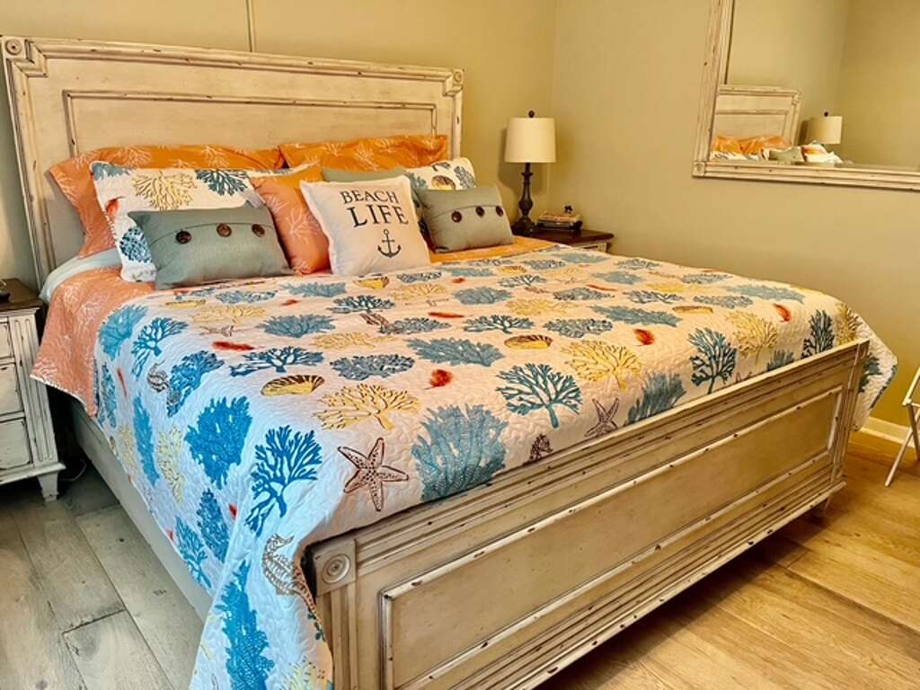 The condo was completely updated in February 2022 and features real hardwood floors throughout, freshly painted walls, fully remodeled bathrooms, and new stainless-steel kitchen appliances. Additional upgrades include brand-new living room furniture (2022), a 55" flat-screen TV, a new king-size bedroom set, ceiling fans, outdoor patio furniture, and many thoughtful touches that make this space feel like home.